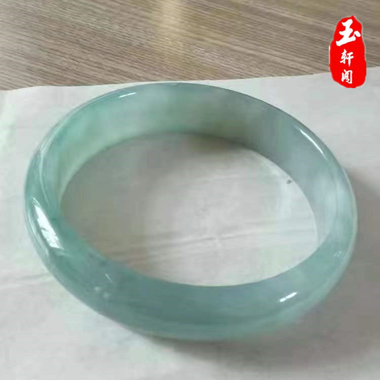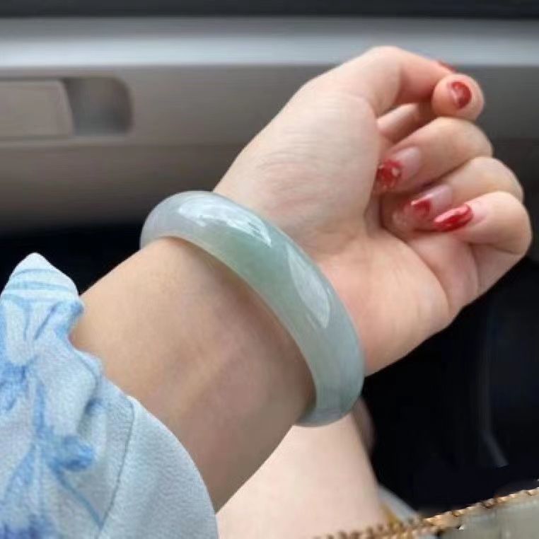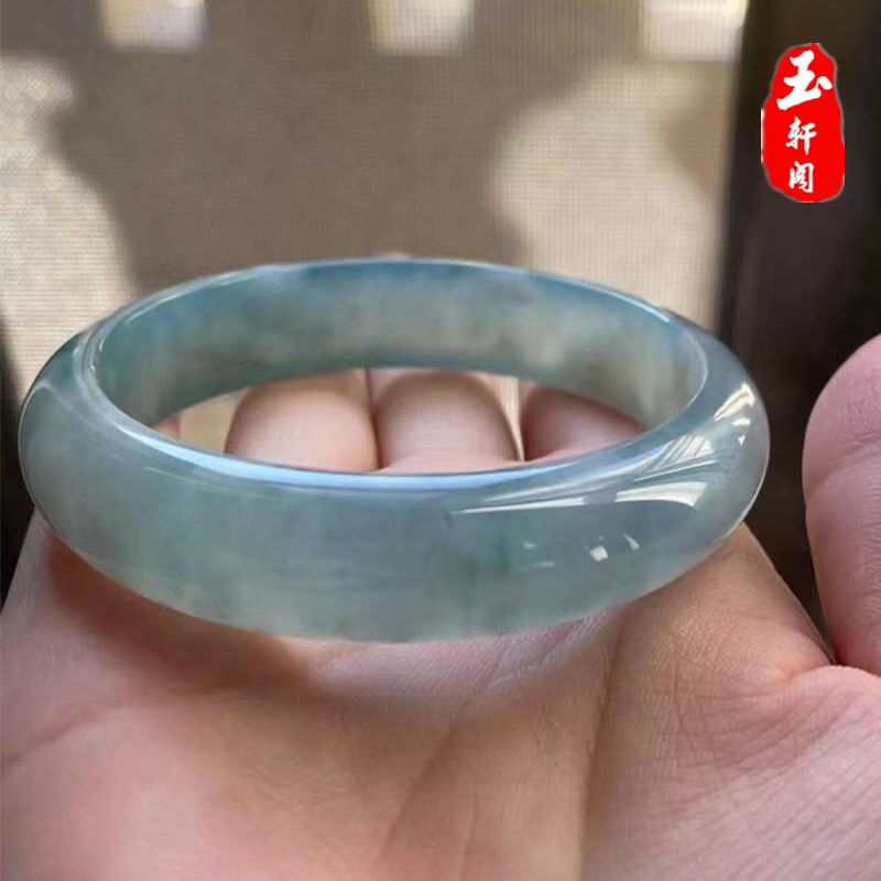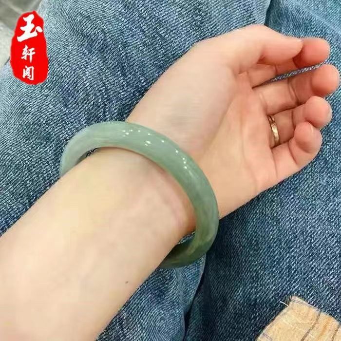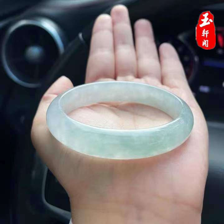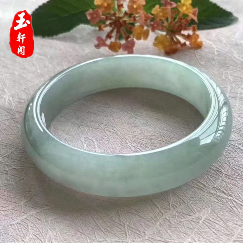 A玉手镯女真货浅绿飘花翡翠色玉镯女款天然玉石翠绿玉镯子女