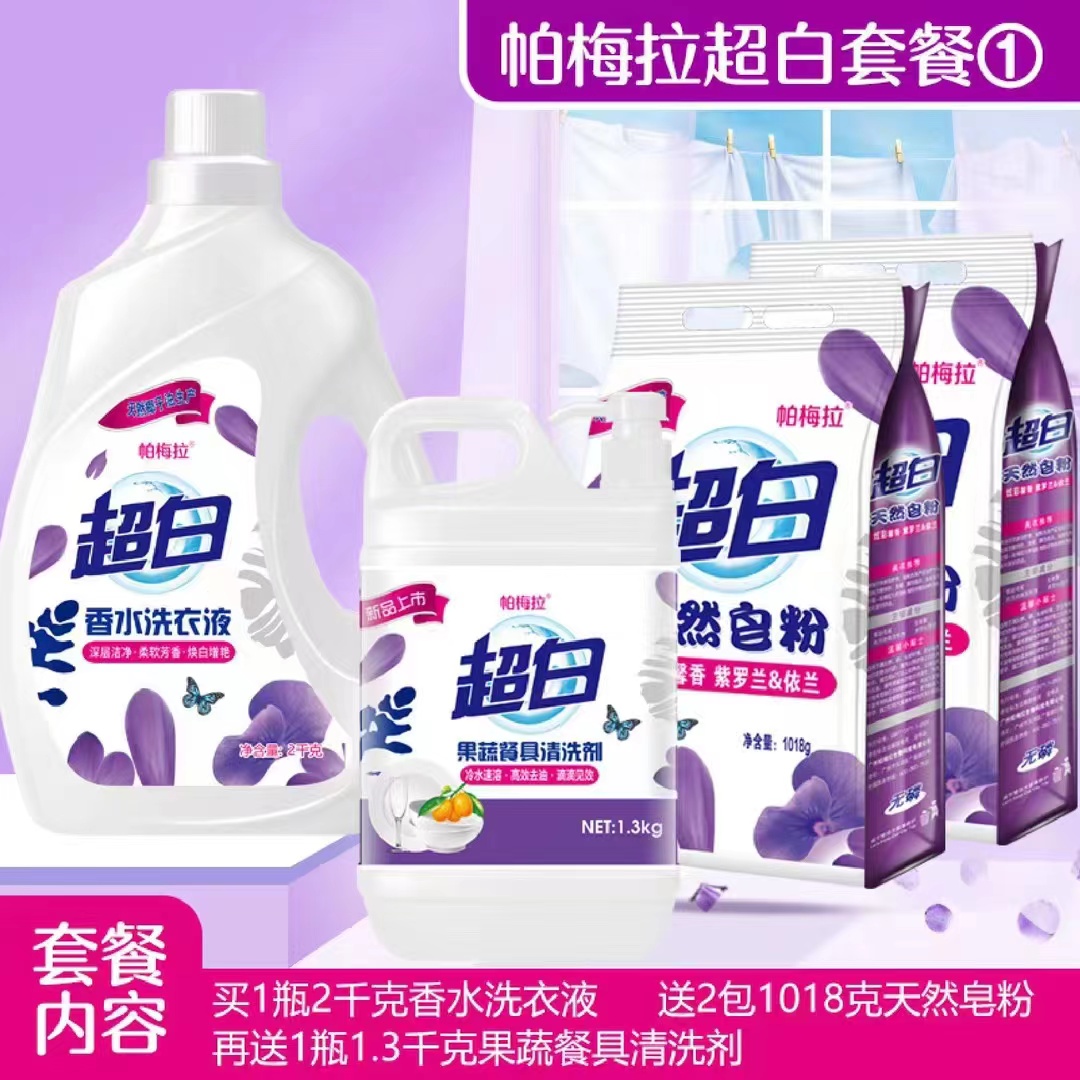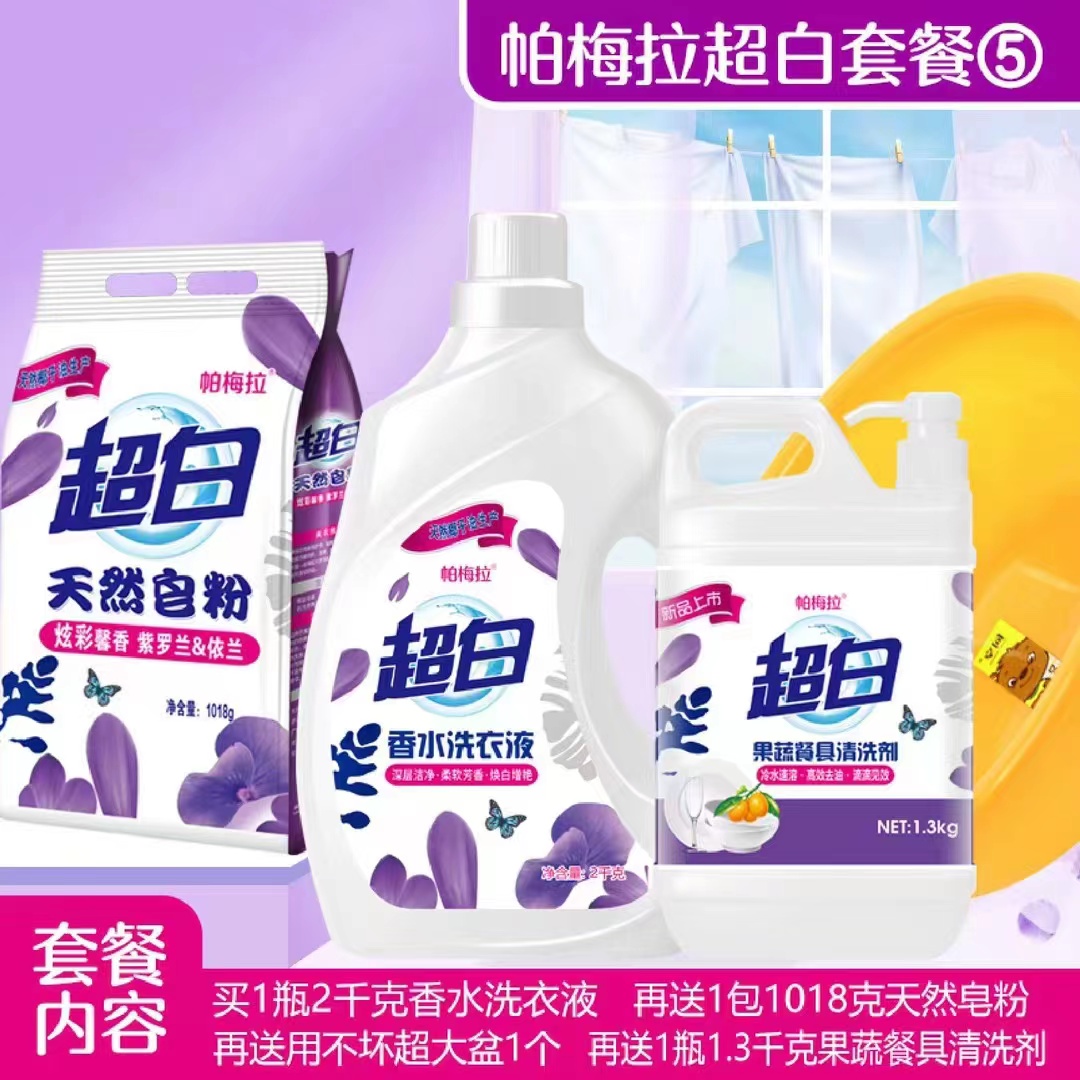 日化四件套帕梅拉超白好太太洗衣液洗衣粉洗洁精盆地摊货源4件套