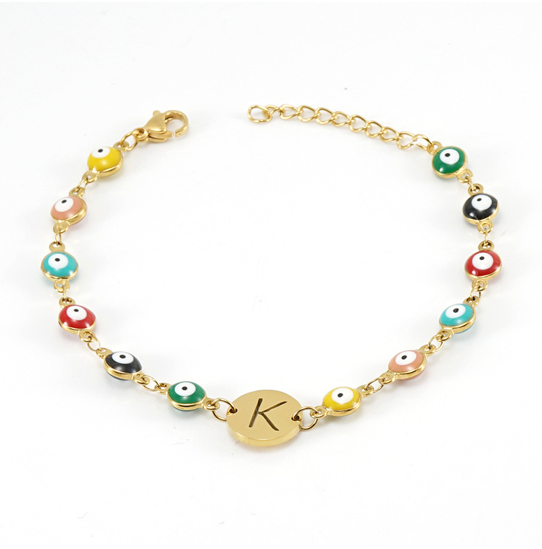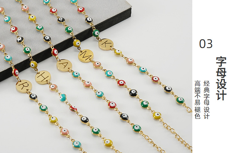 欧美土耳其拼色Evil Eye不锈钢字母手链女18K钛钢圆邪恶之眼手环