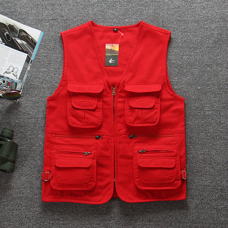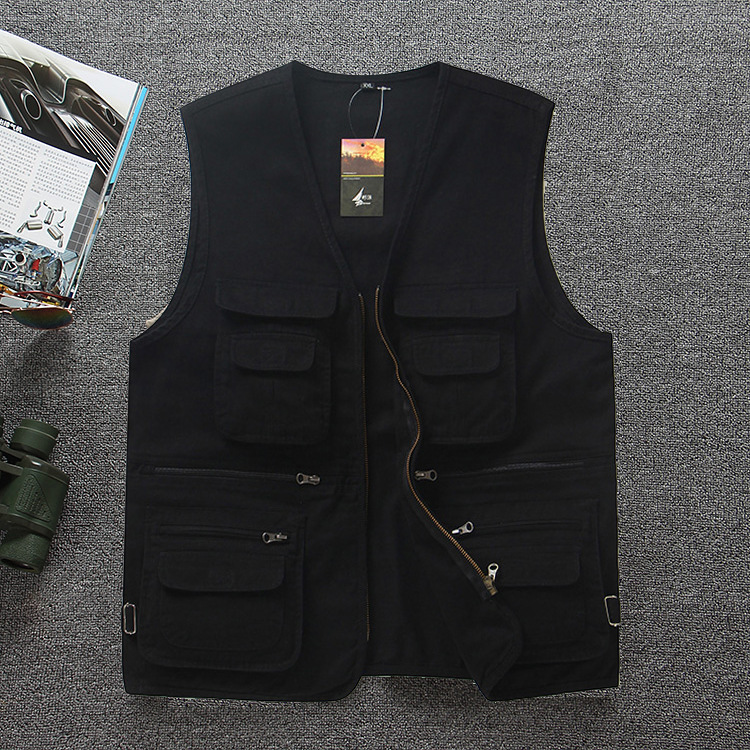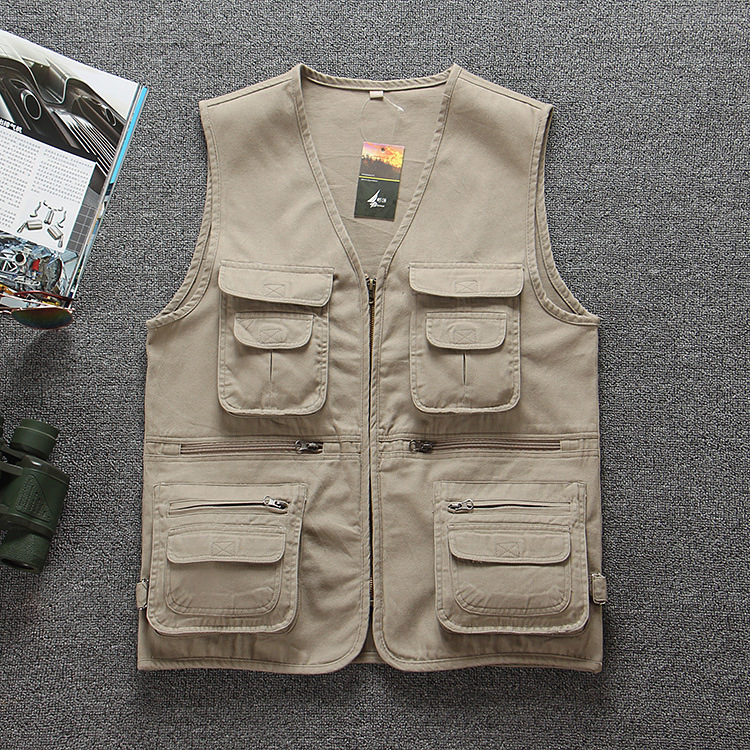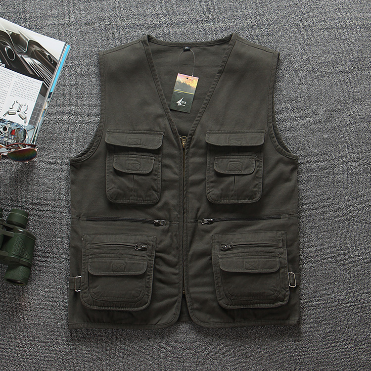 纯棉多口袋中老年爸爸装坎肩休闲钓鱼摄影马甲男士背心马夹加肥大