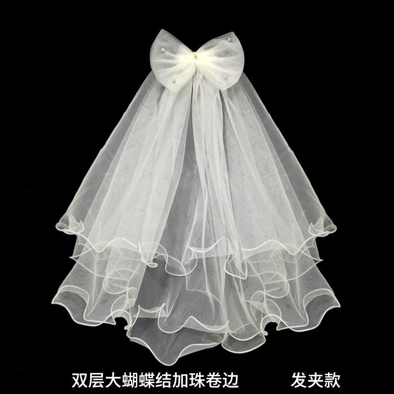 头纱发光摆地摊批发摆摊蝴蝶结带灯网红拍照领证结婚旅拍头饰女