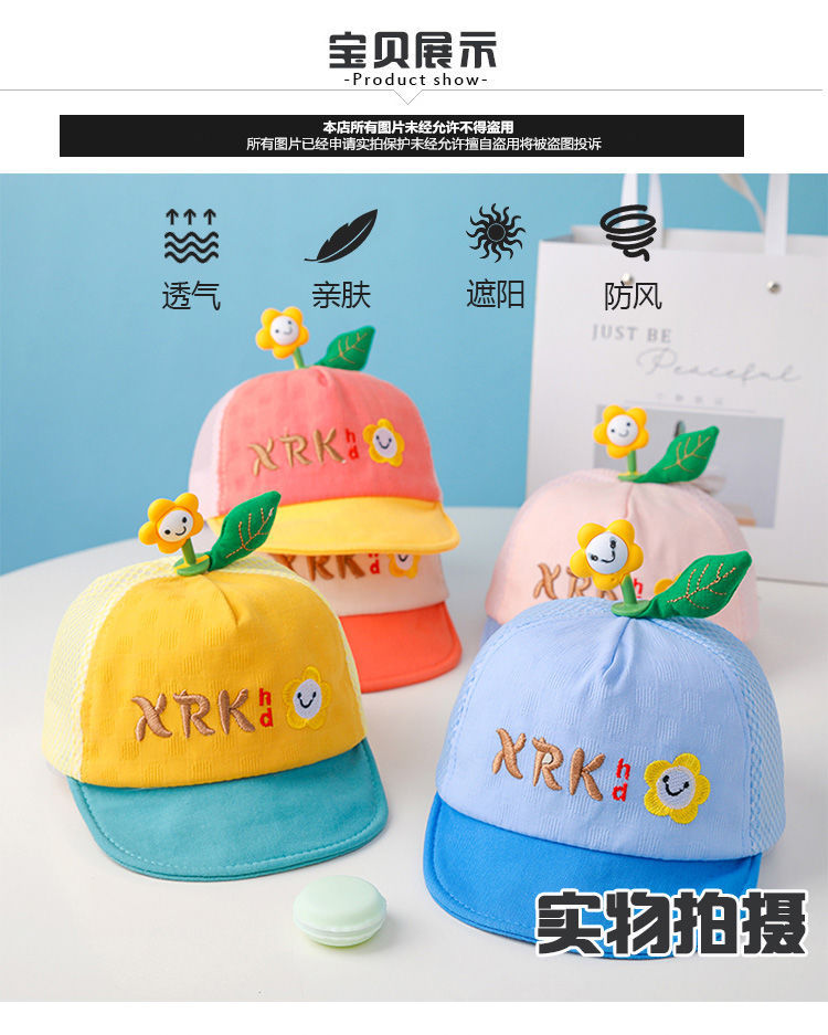宝宝帽子春夏遮阳防晒棒球帽婴儿可爱超萌男女儿童薄款透气网格帽