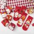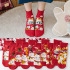 袜子女士秋冬新品红中筒袜卡通鸿运袜喜气洋洋大红袜棉质女袜