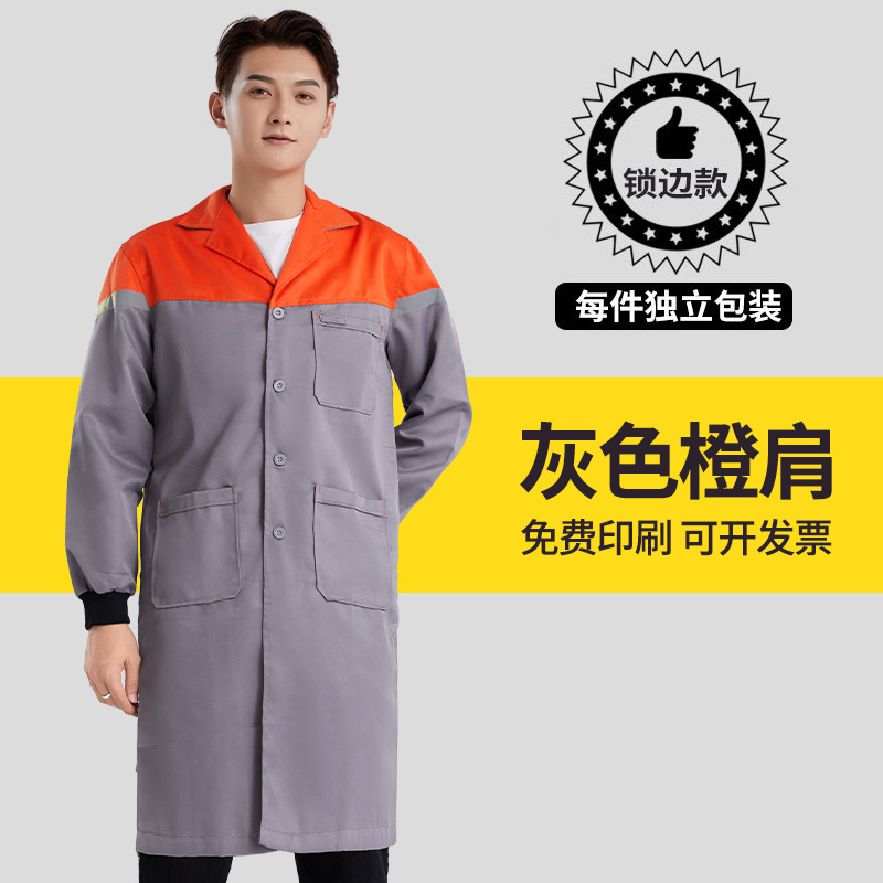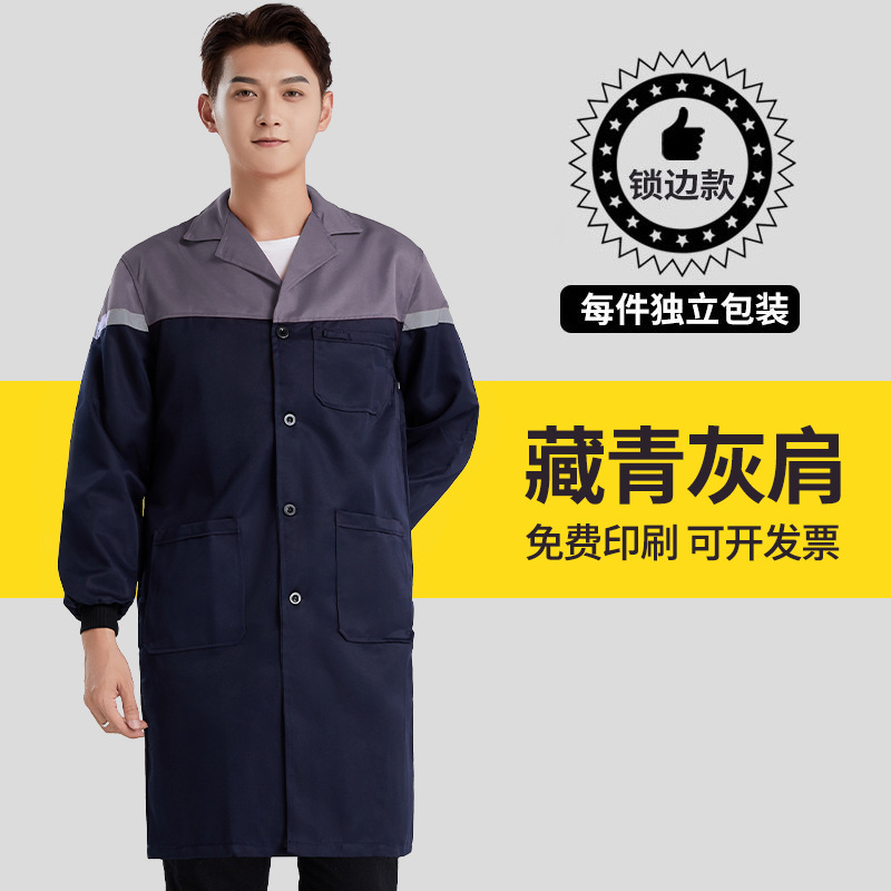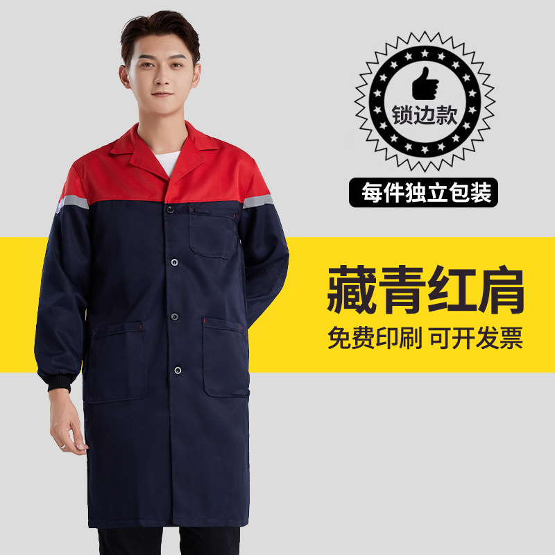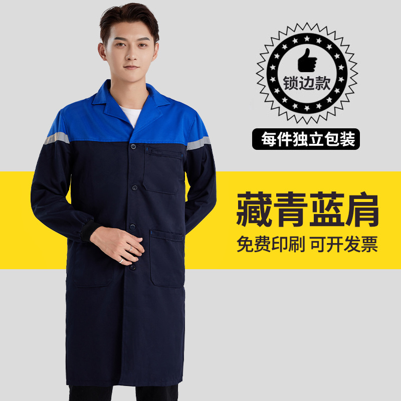 涤棉大褂刺绣工作服汽修仓库拼色厂服车间工装劳保耐磨蓝大褂印字