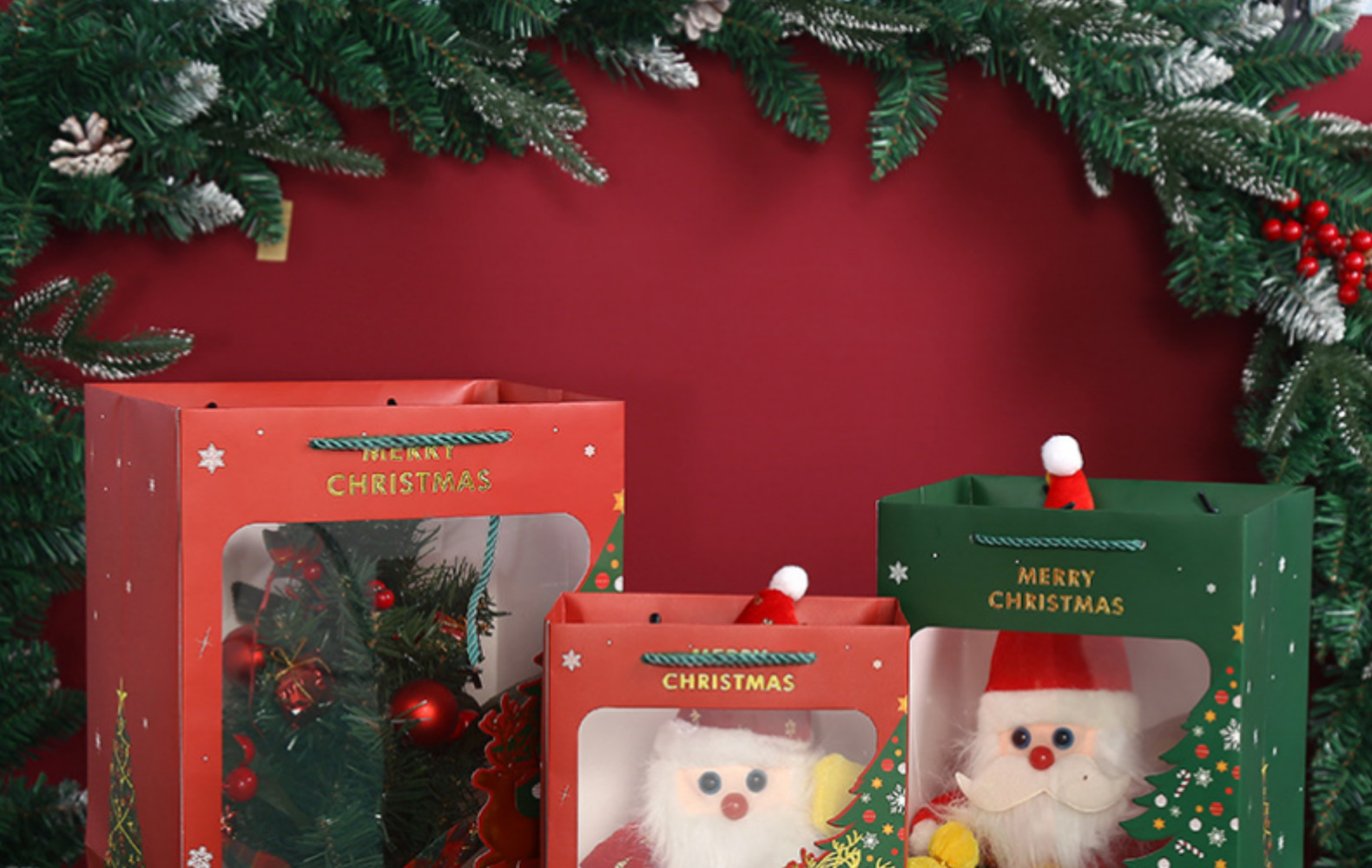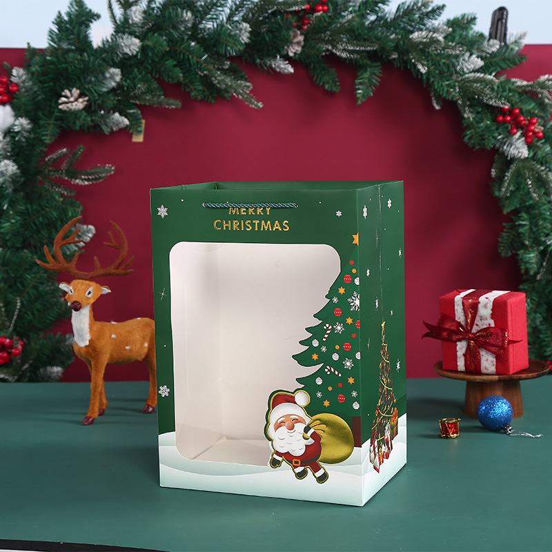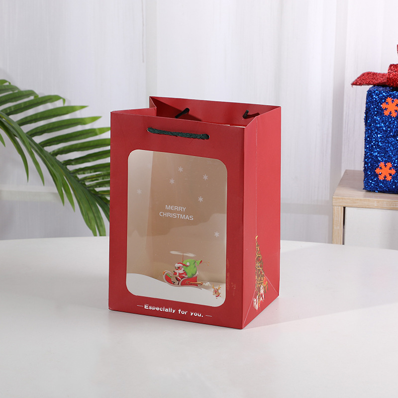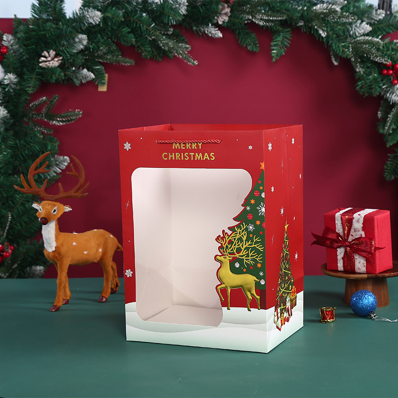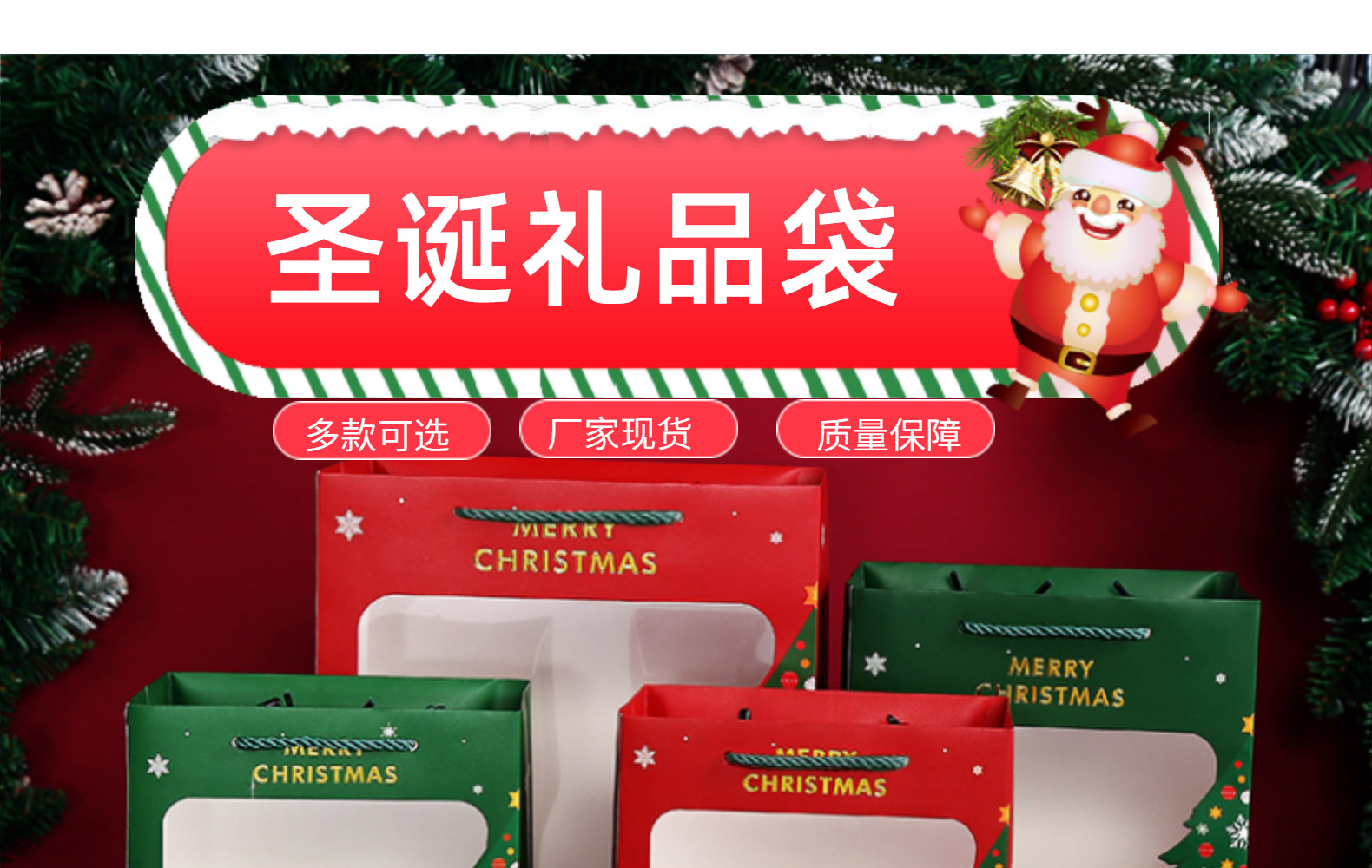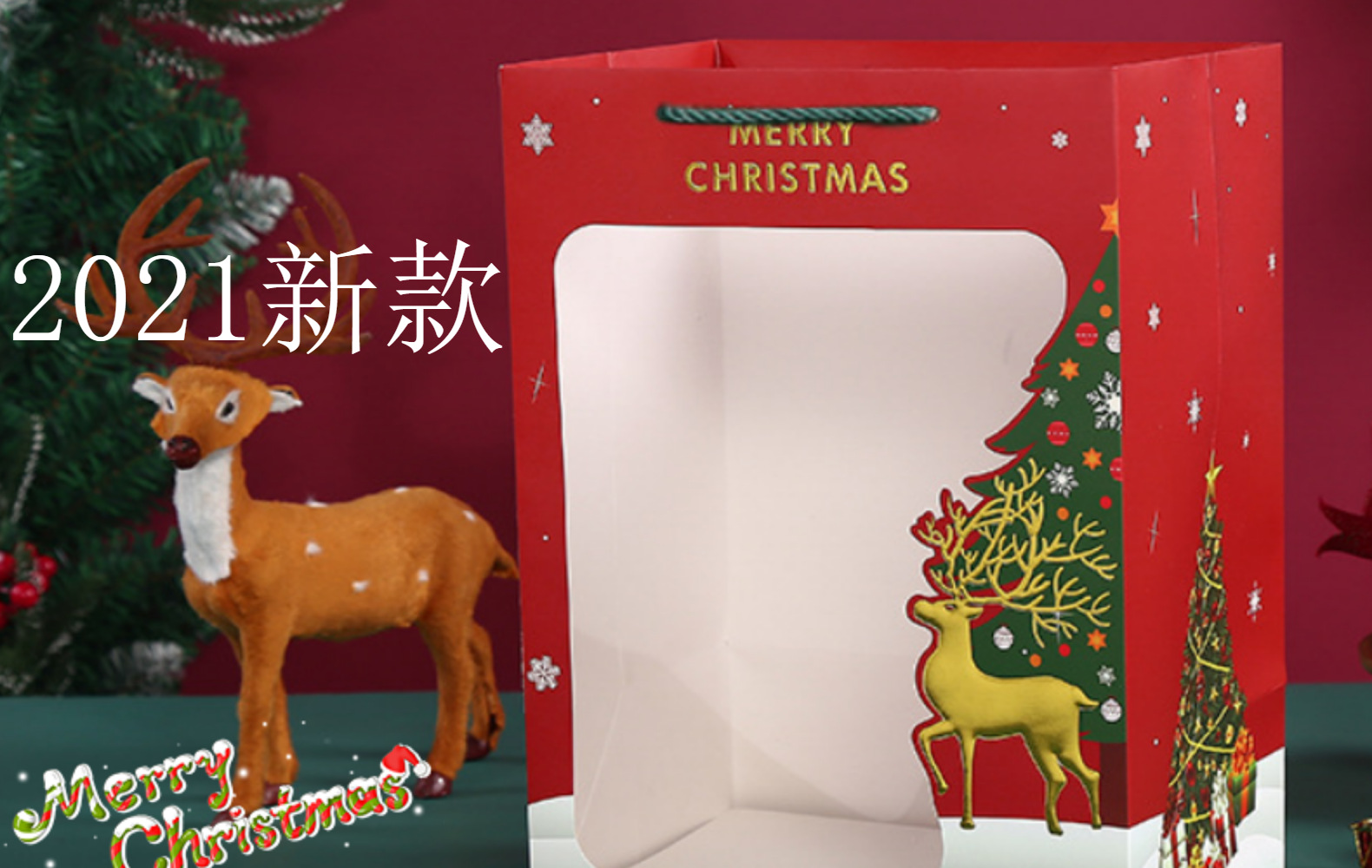 新款圣诞节礼物袋开窗透明纸袋平安夜手提袋苹果包装袋橱窗礼品袋