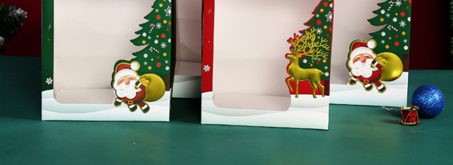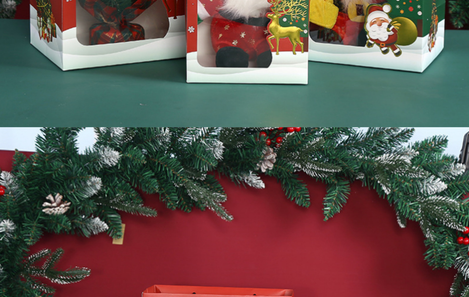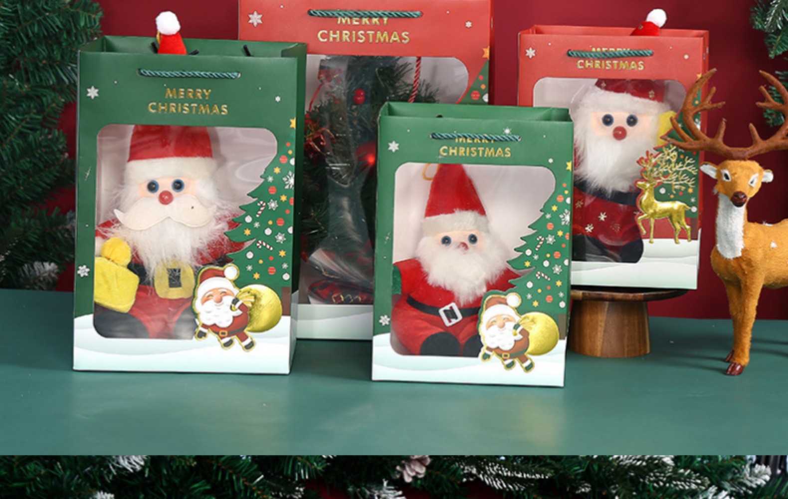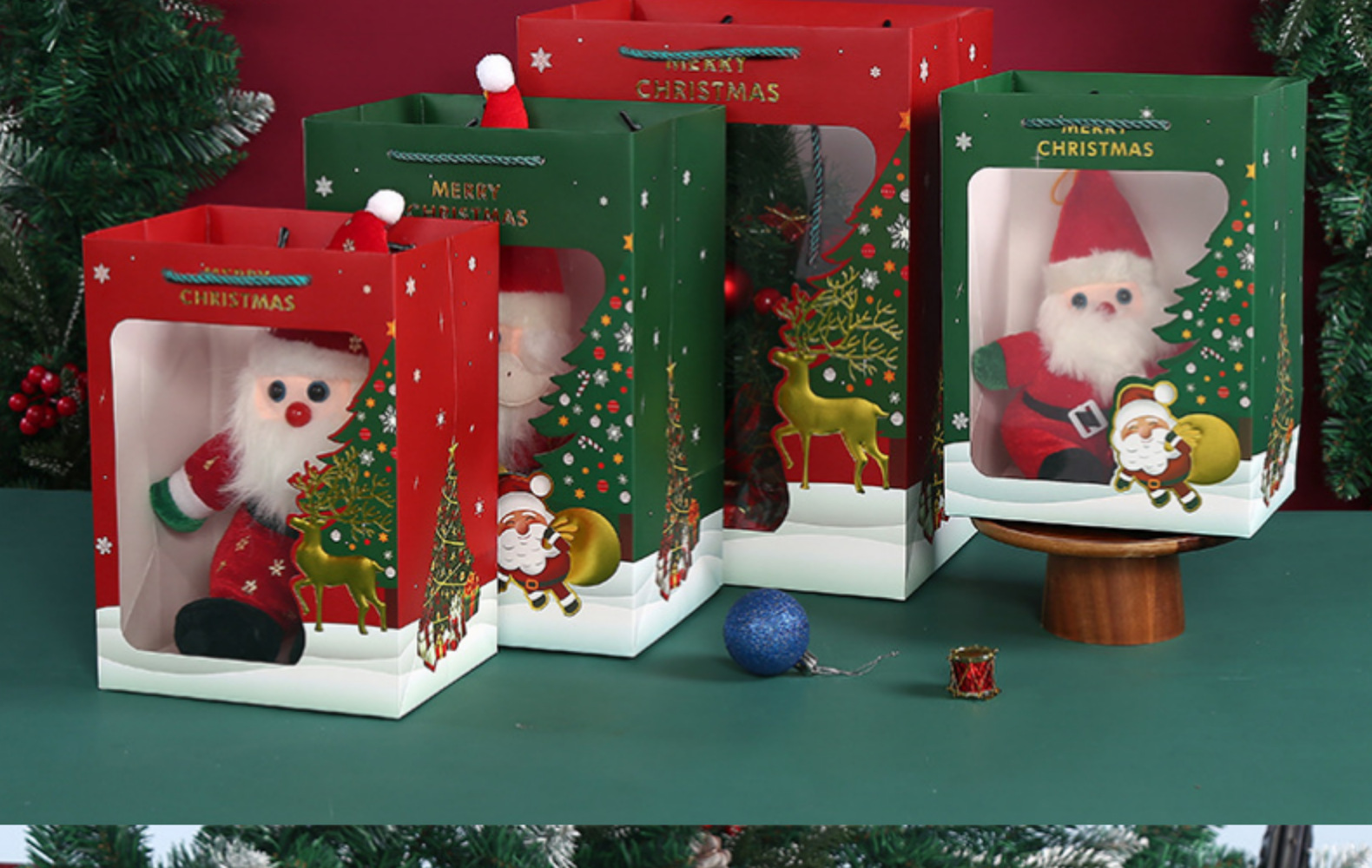 新款圣诞节礼物袋开窗透明纸袋平安夜手提袋苹果包装袋橱窗礼品袋