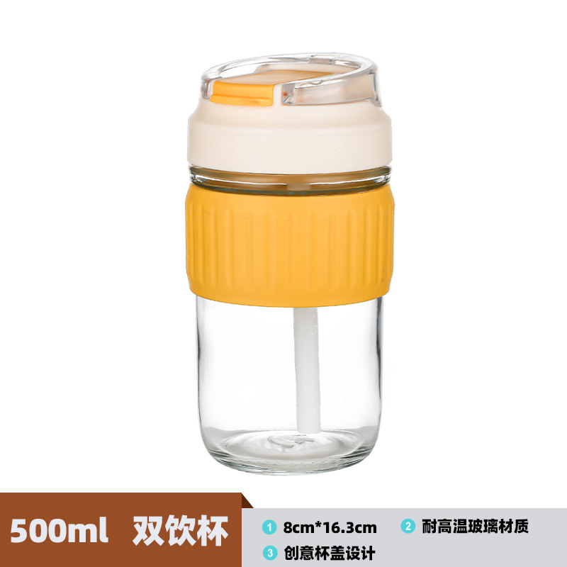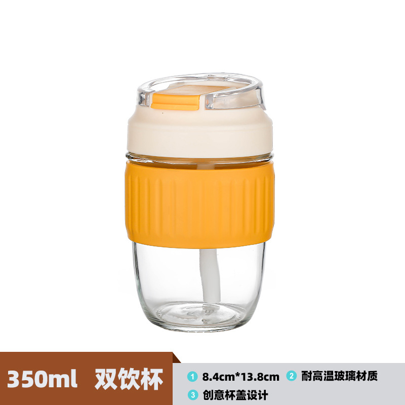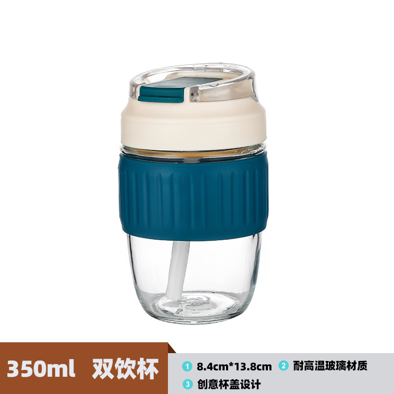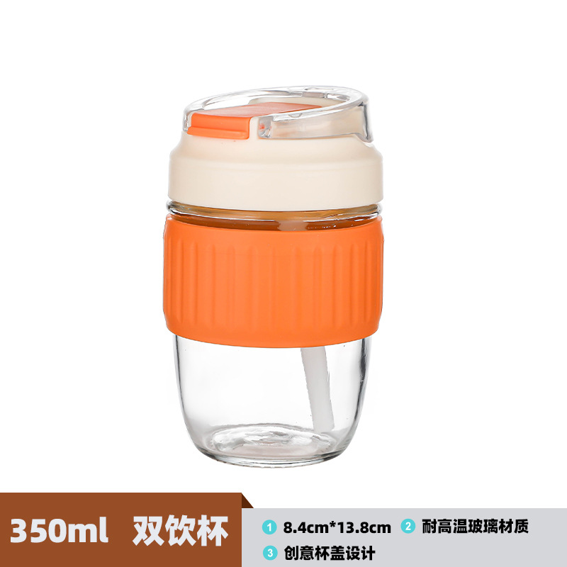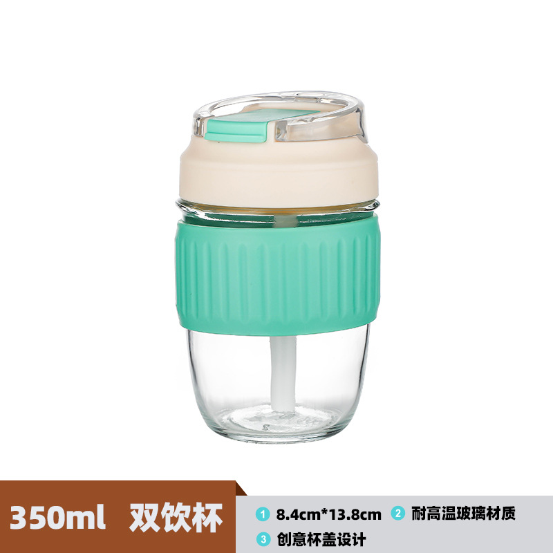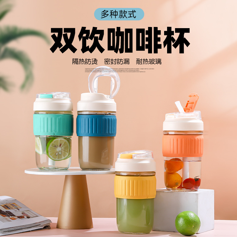 新款双饮玻璃杯大容量可爱水杯网红创意咖啡杯便携吸管杯颜值杯子