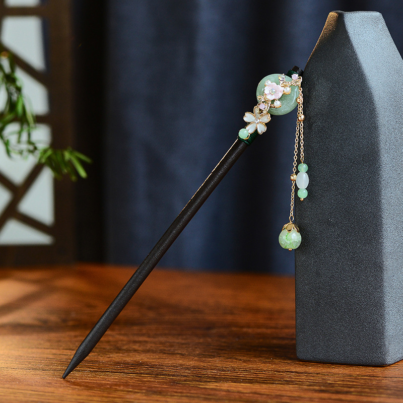 复古花朵步摇黑檀木发簪女简约古风发饰流苏汉服木簪子头饰女