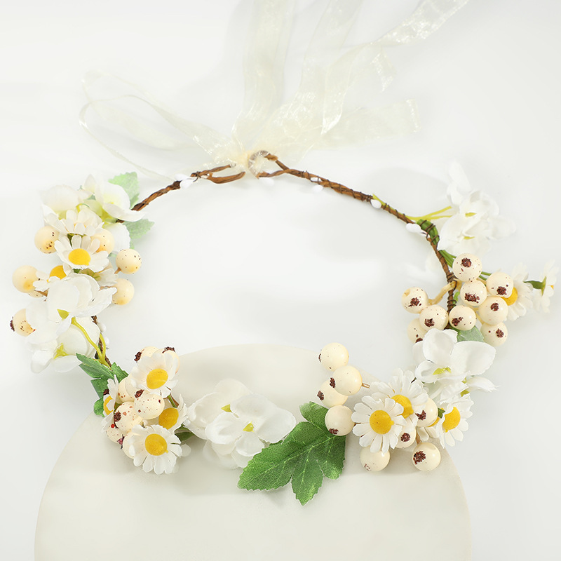 欧美花环头饰复古甜美新娘头饰手工布艺仿真花发箍旅游度假头饰品