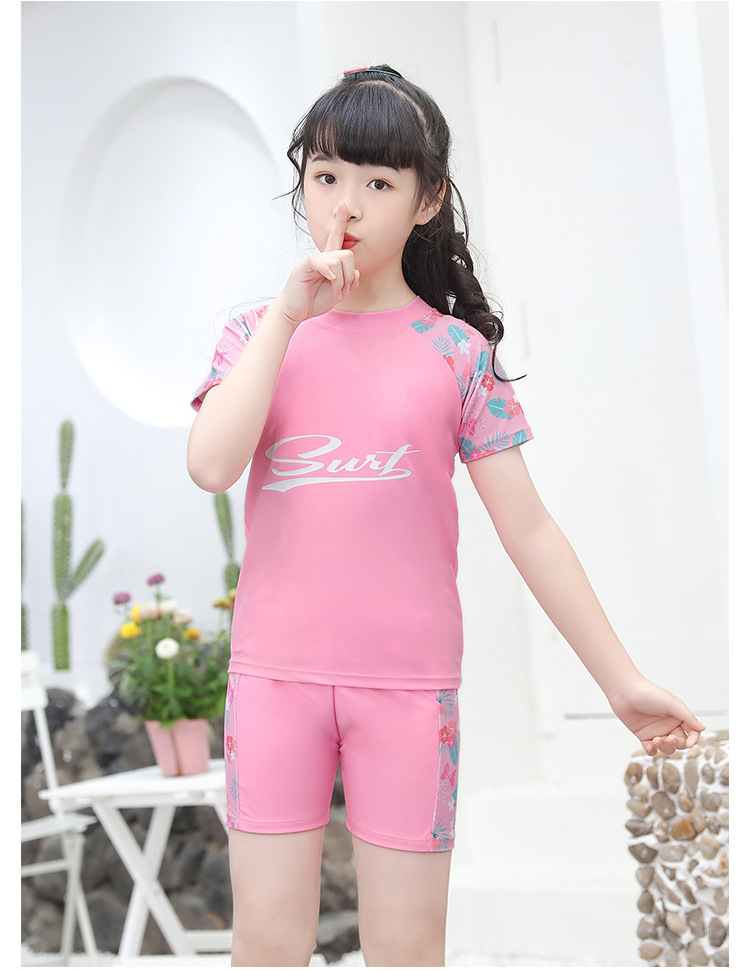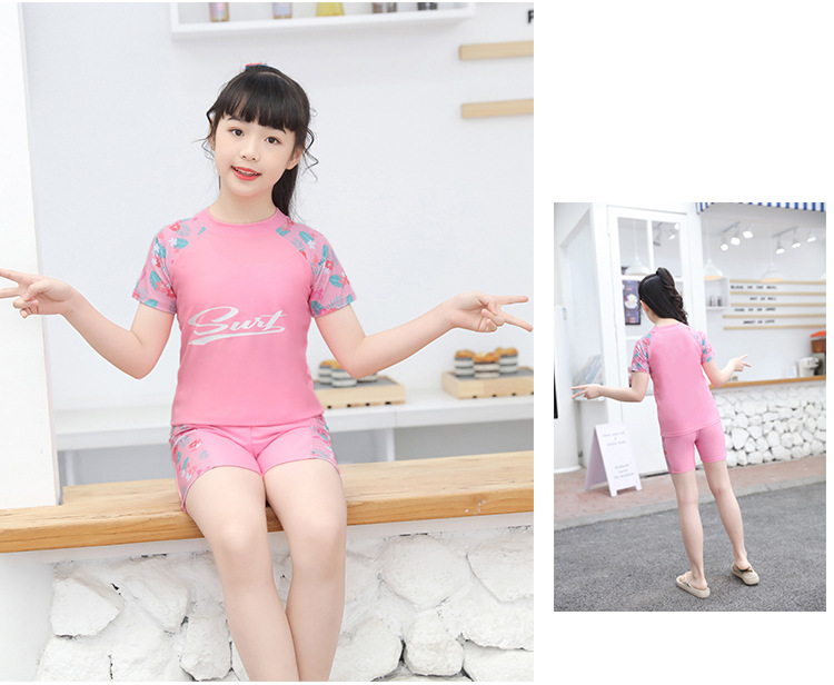 儿童泳衣男童孩游泳衣女孩中大童温泉泳裤套装短袖宝宝卡通恐龙