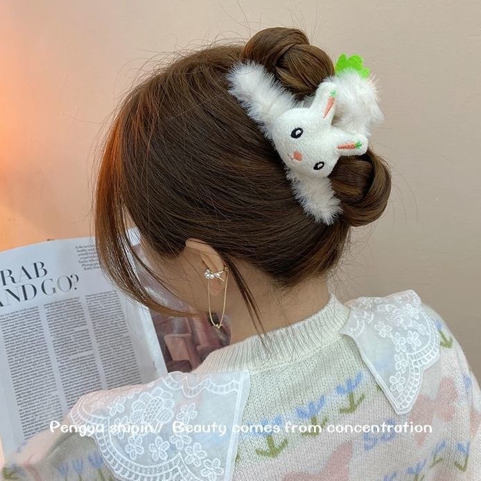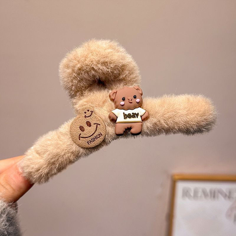 秋冬新款毛绒发夹女大号卡通鲨鱼夹子可爱后脑勺发卡毛毛小熊抓夹