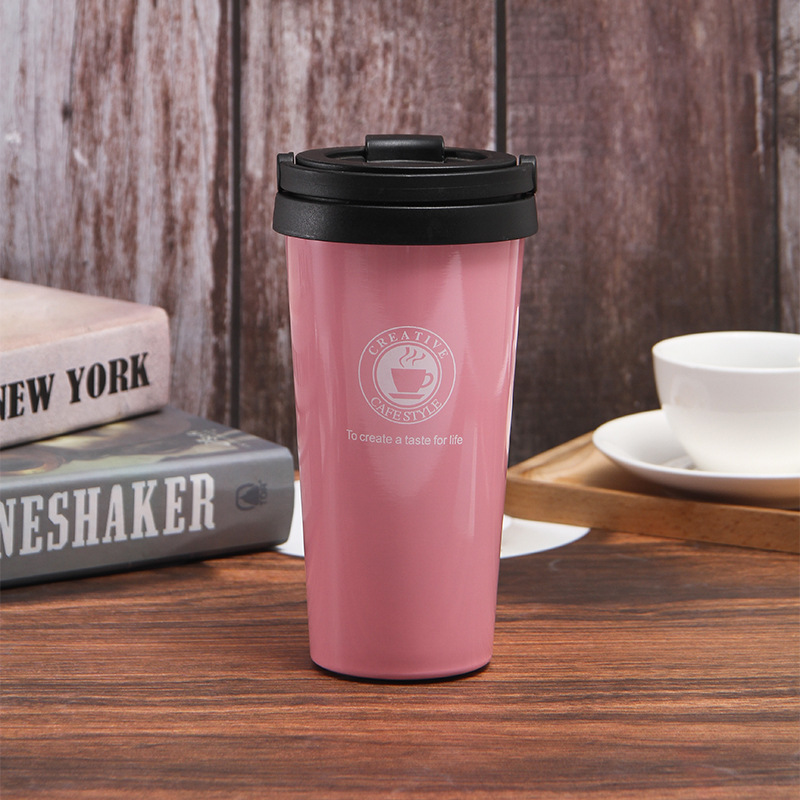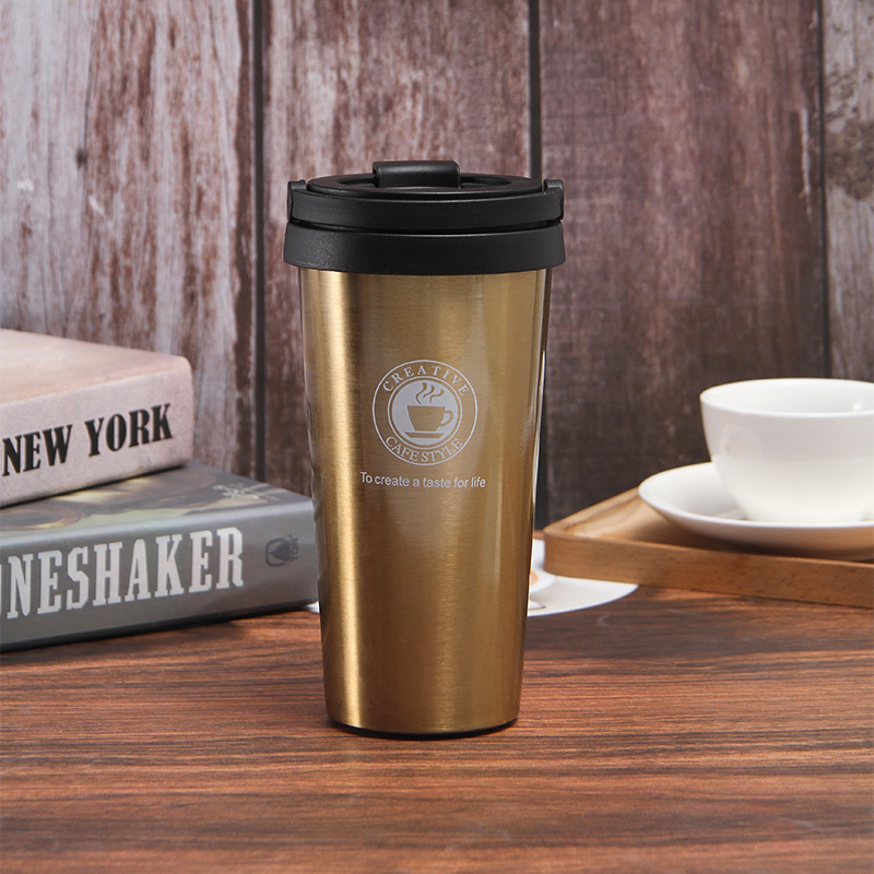 外贸新款不锈钢咖啡杯304创意提手保温杯便携车载真空随手杯