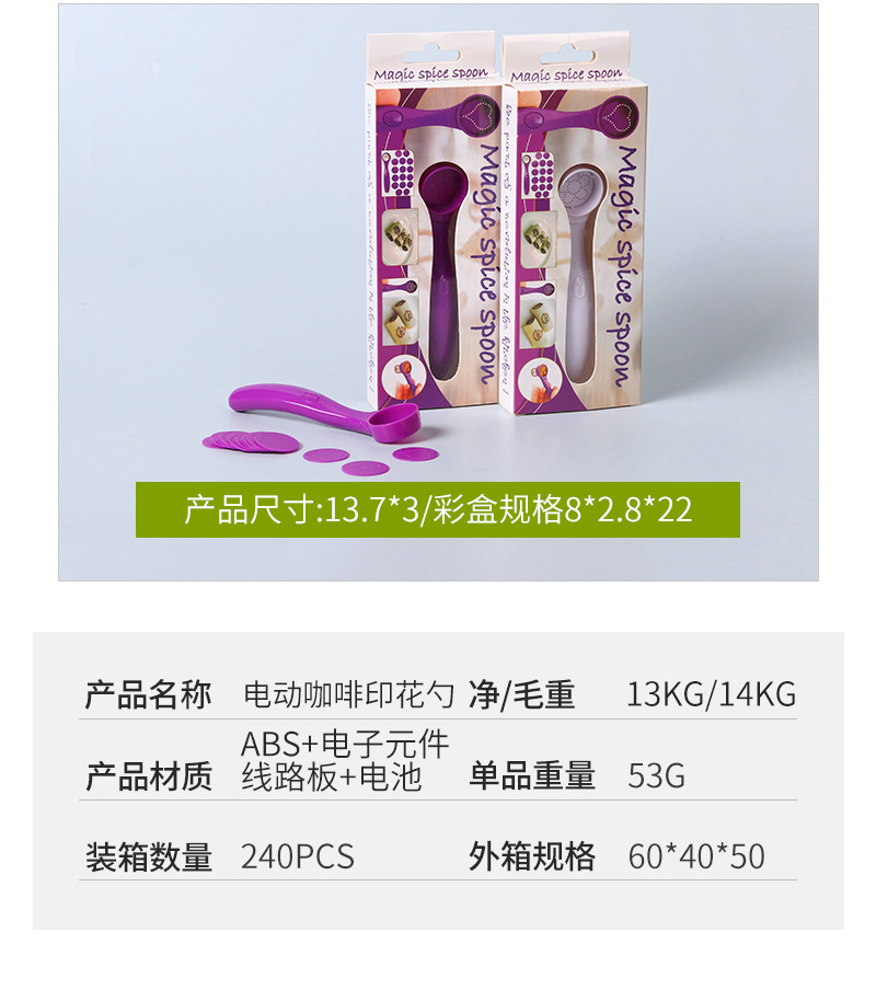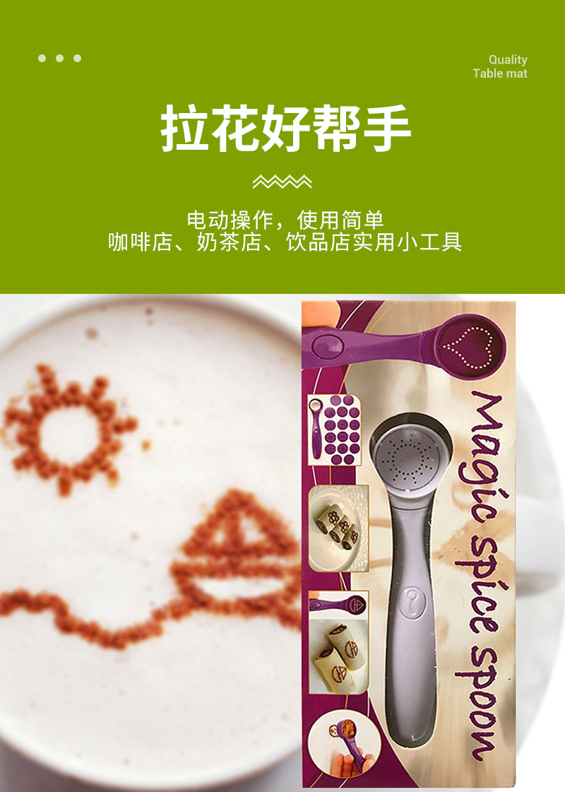 magic spice spoon 电动咖啡蛋糕印花勺便携电动咖啡印花勺拉花勺