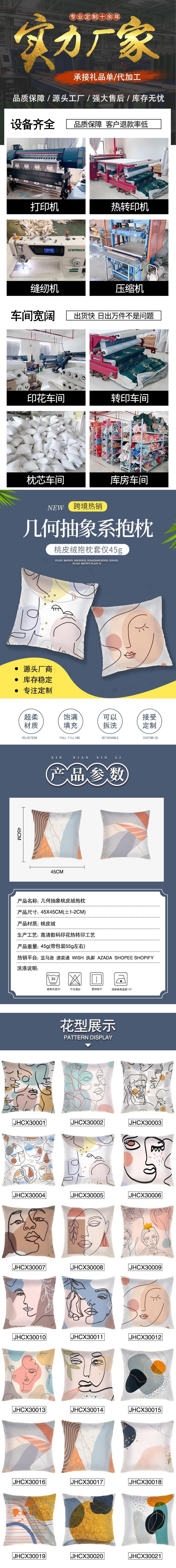 跨境简约沙发抱枕几何抽象靠枕复古艺术印花靠垫亚马逊桃皮绒抱枕