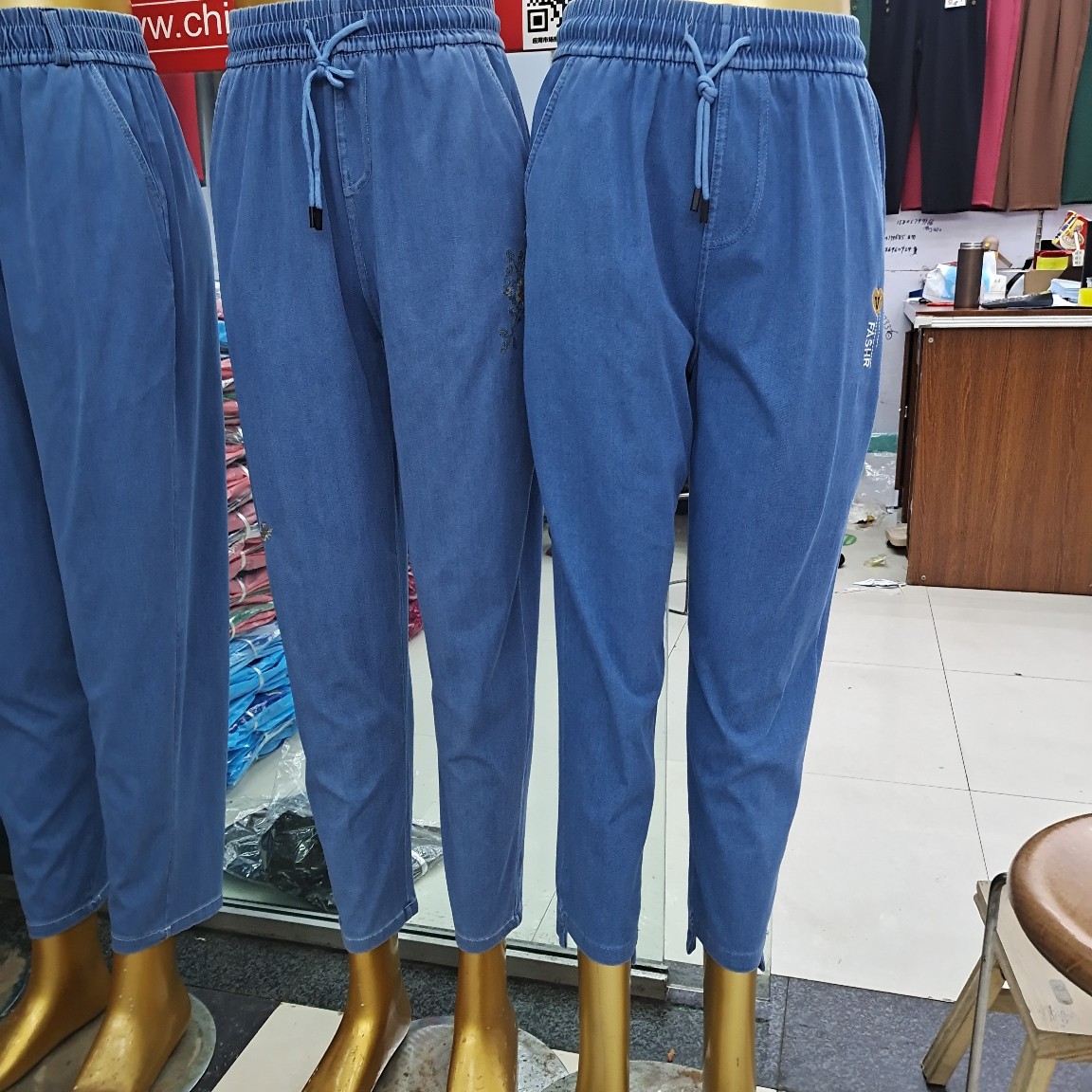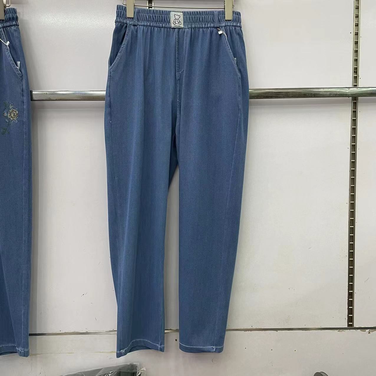 冰丝牛仔裤2022夏季薄款八分裤高腰高弹中老年女士妈妈休闲裤大码