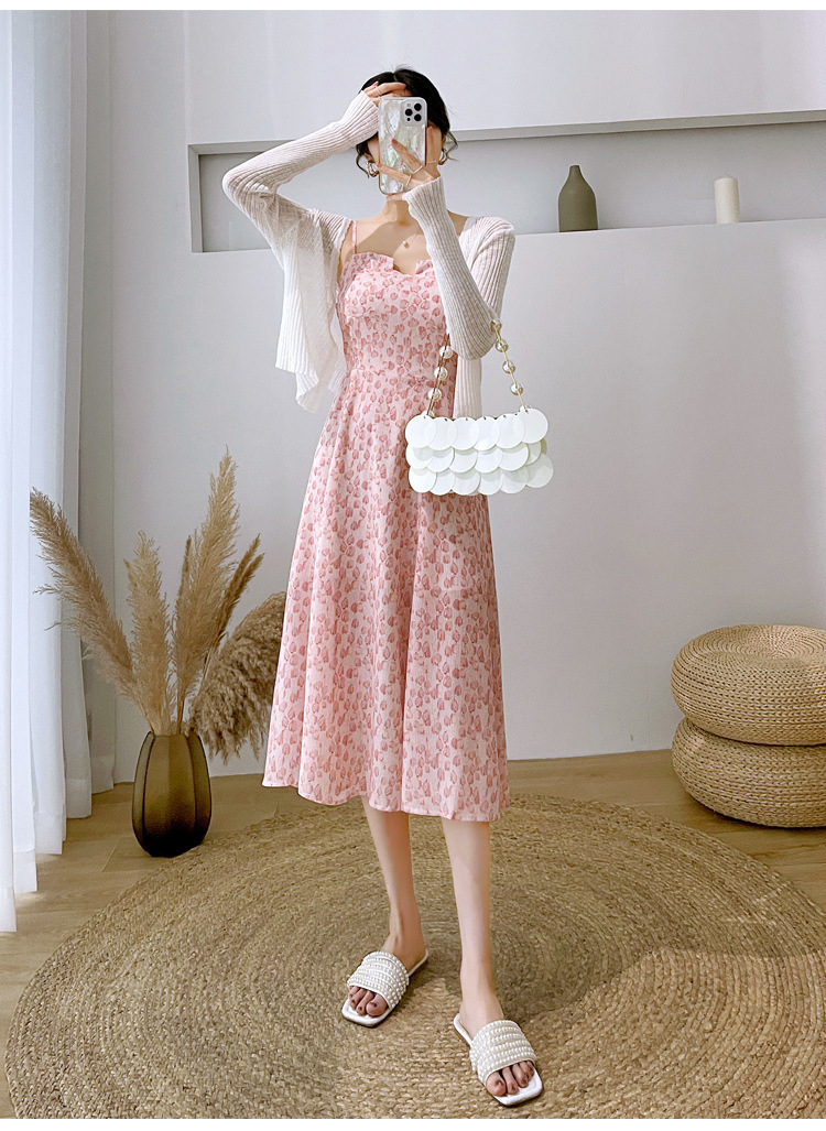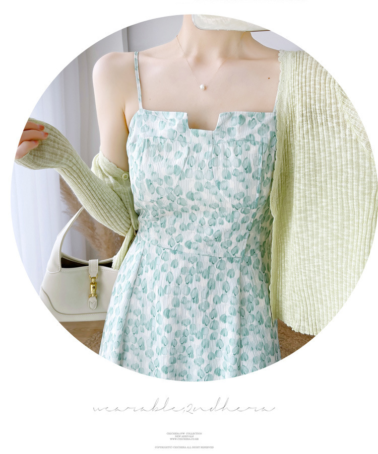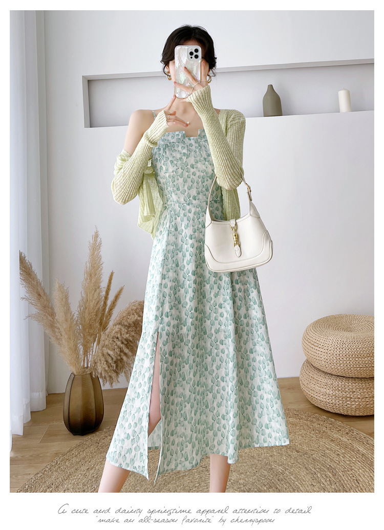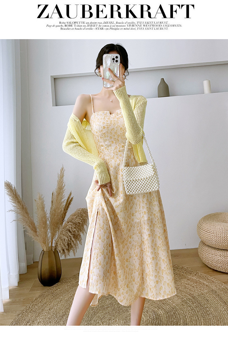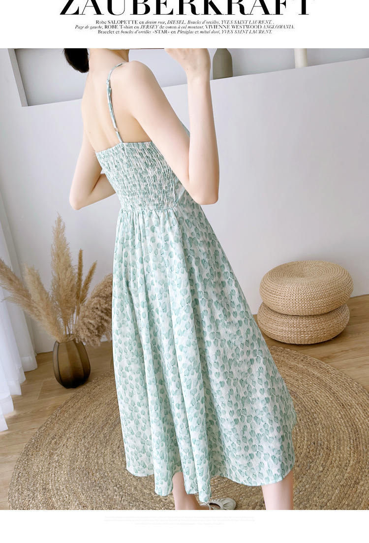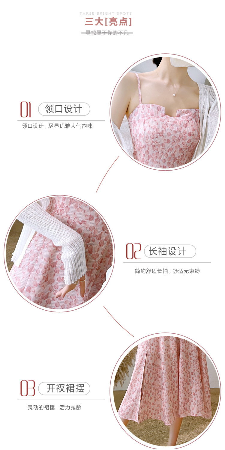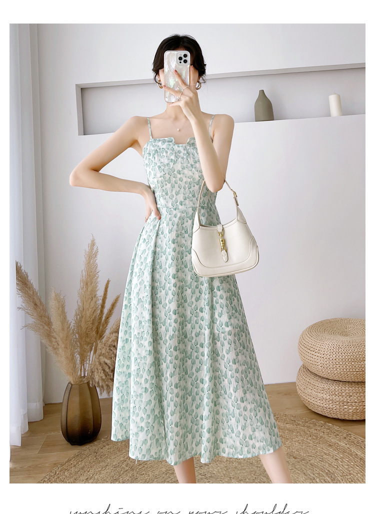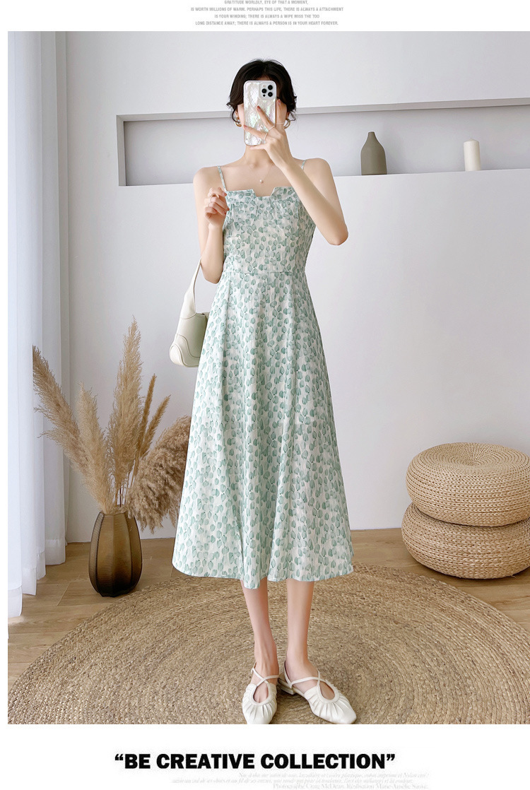 茶歇法式气质显瘦雪纺吊带连衣裙女夏季甜美气质修身显瘦开叉长裙