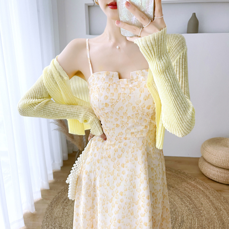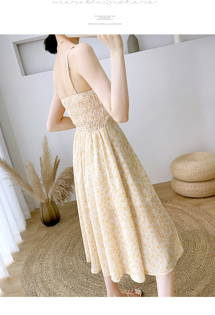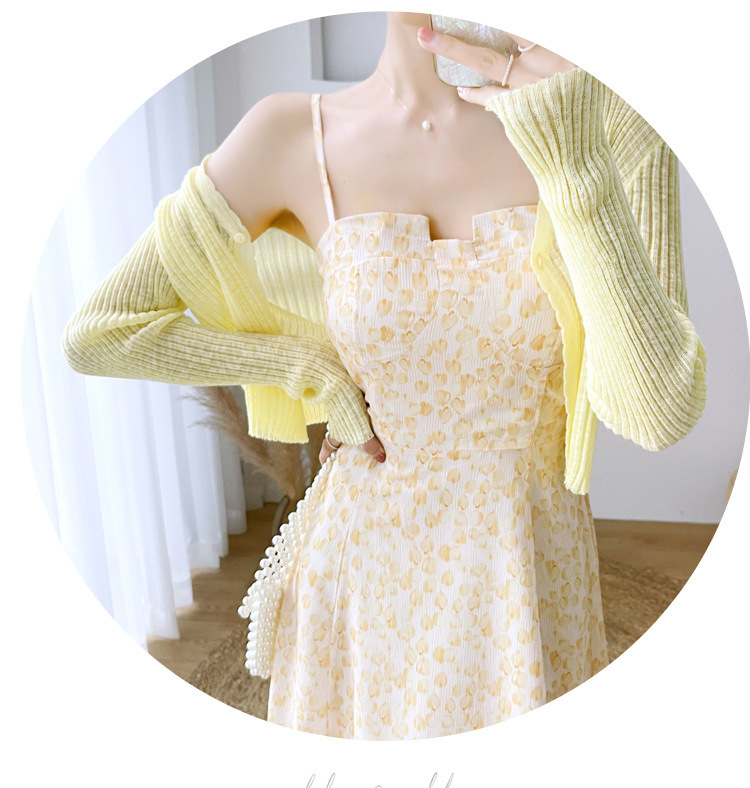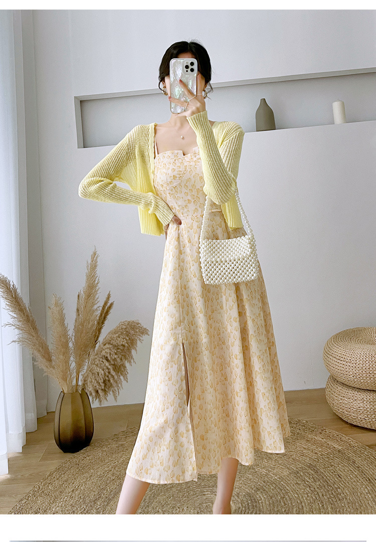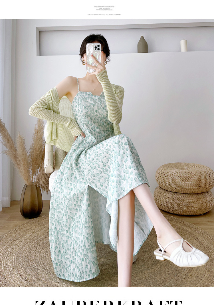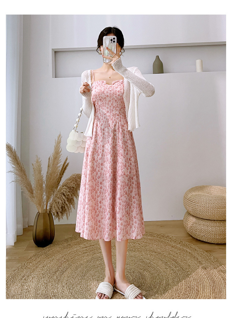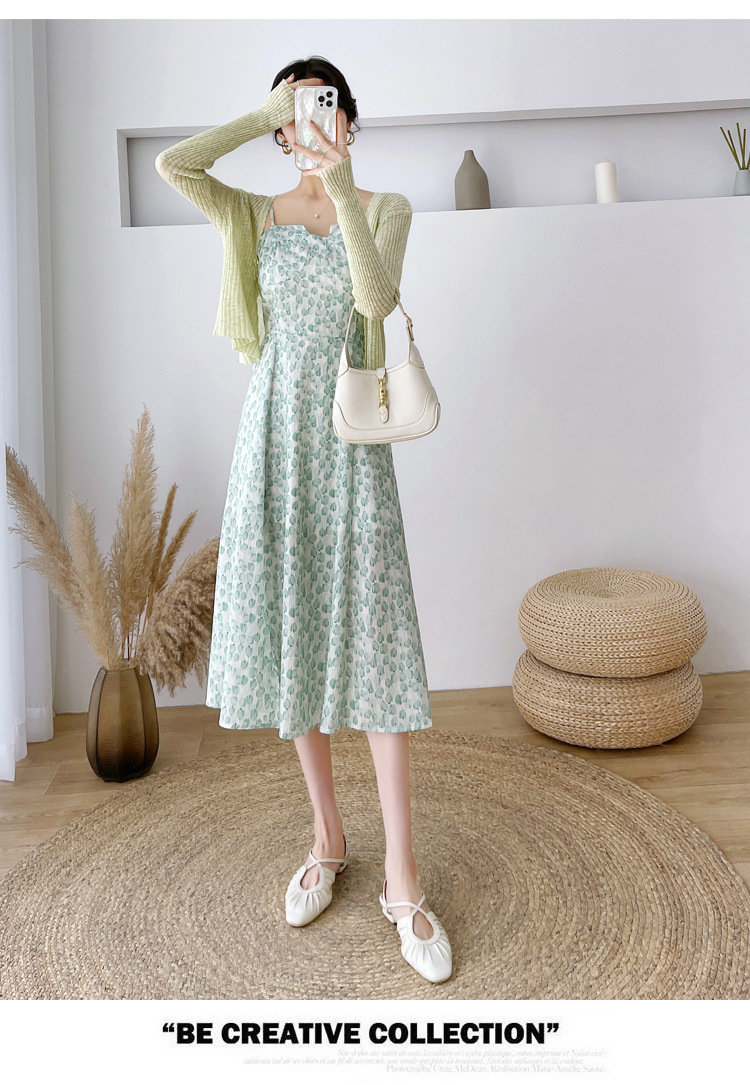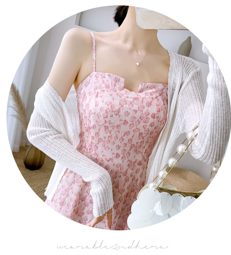 茶歇法式气质显瘦雪纺吊带连衣裙女夏季甜美气质修身显瘦开叉长裙