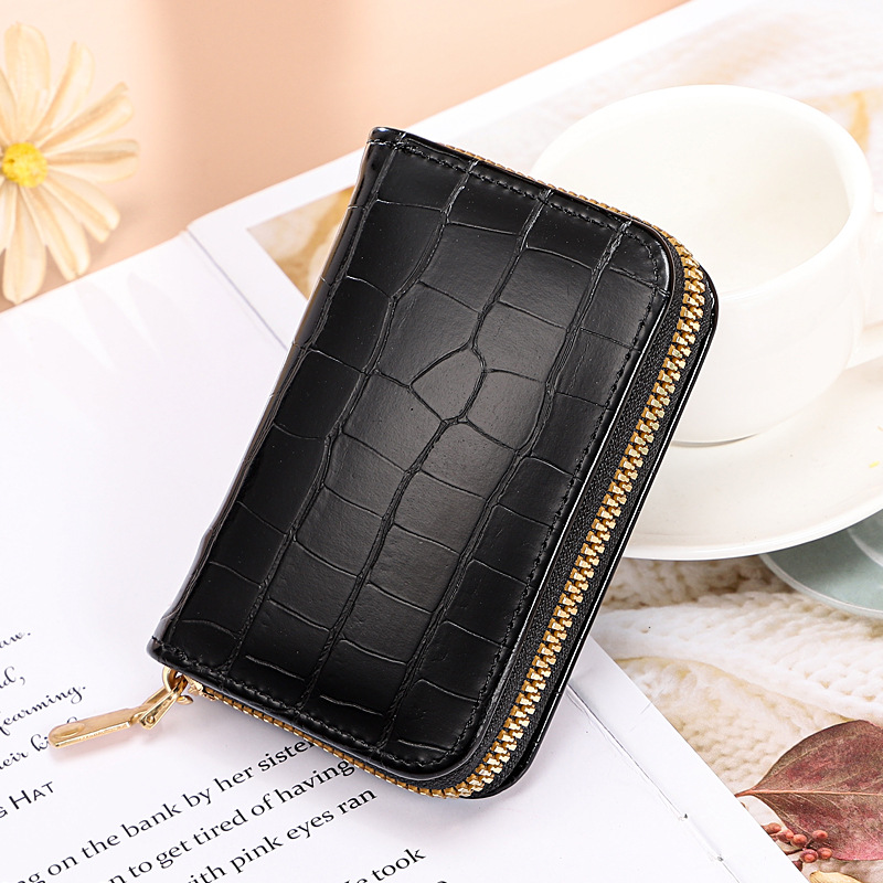 卡包现货女士零钱包鳄鱼纹亮皮简约复古韩版新款ins简约小卡包