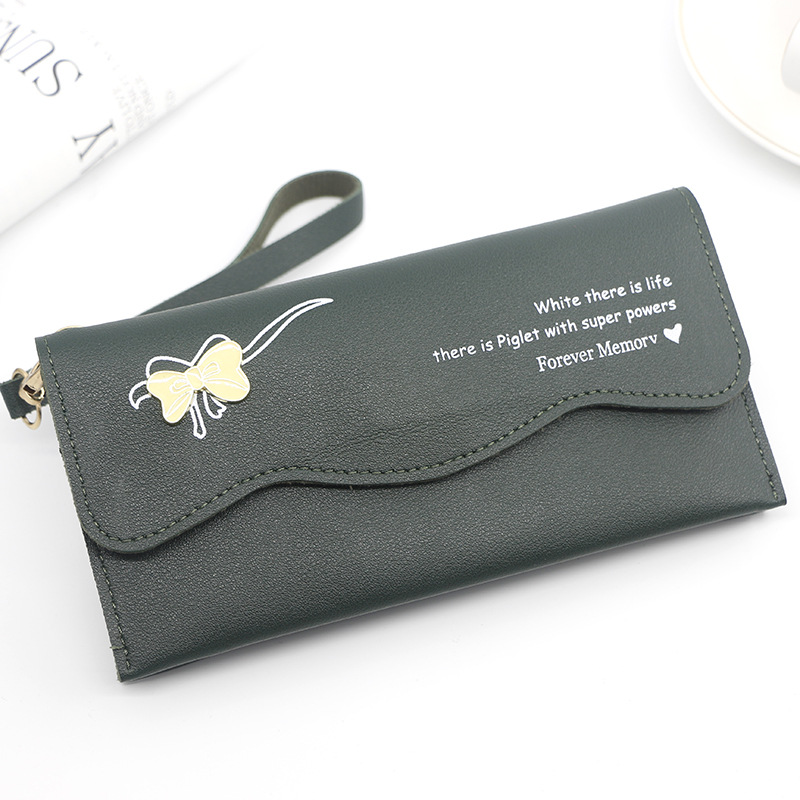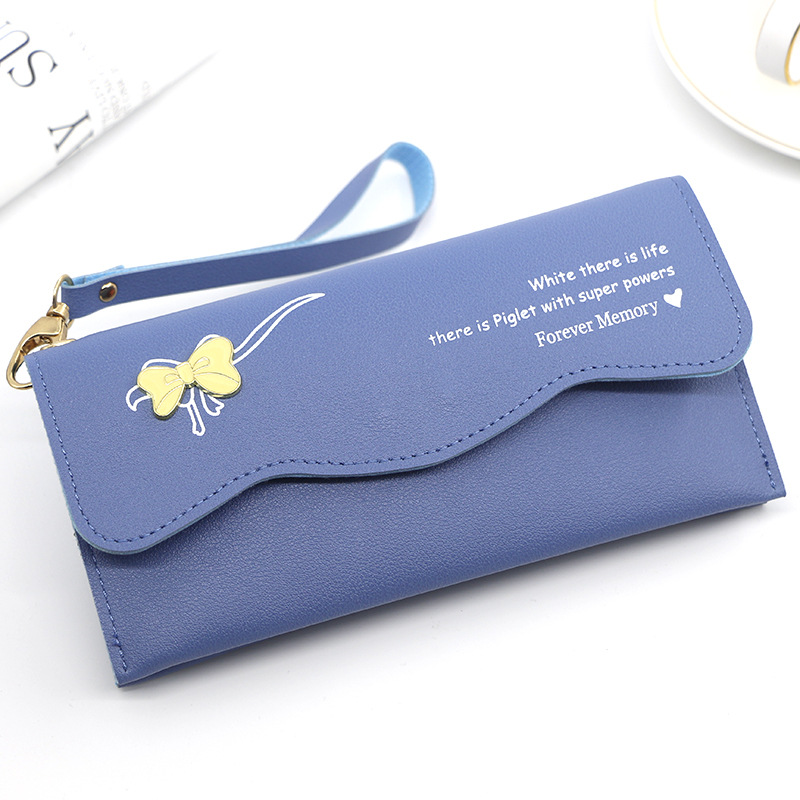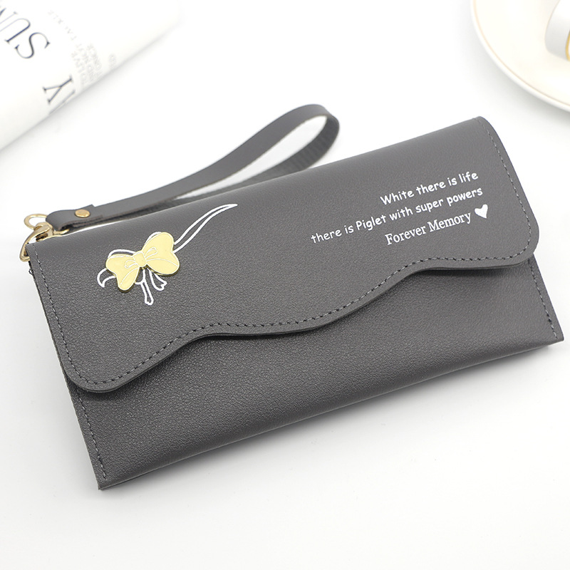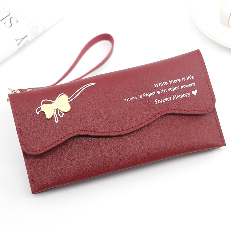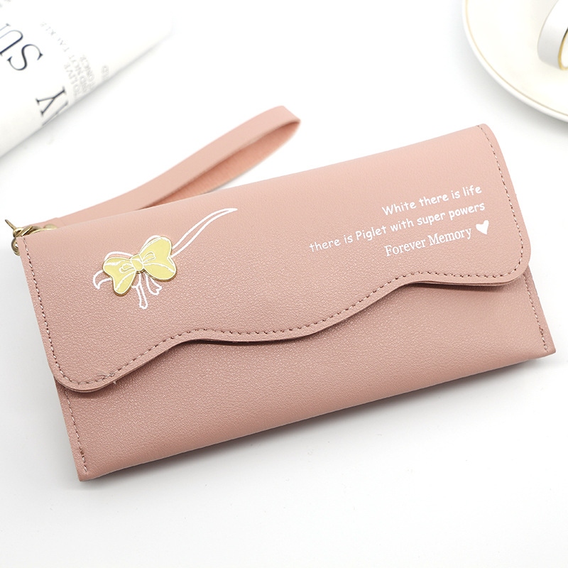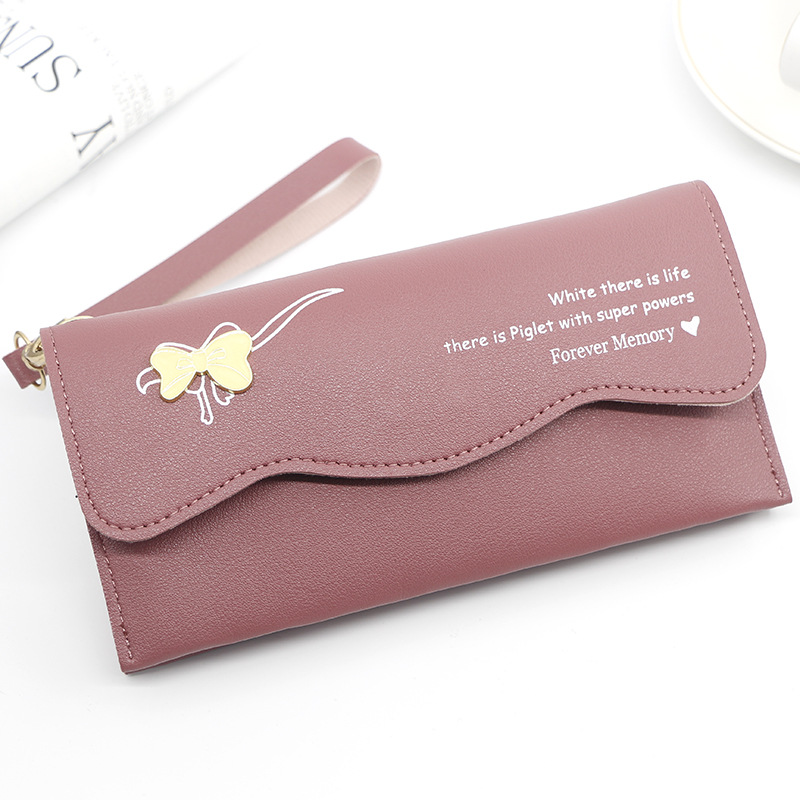 时尚休闲钱包女士长款蝴蝶结纯色零钱证件手拿包手提包零钱包卡包