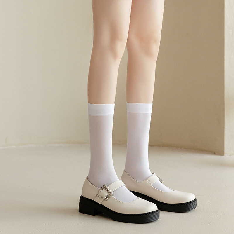 白色袜子女 春夏季薄款小腿袜 中筒袜子透明半筒过膝长筒袜jk丝袜