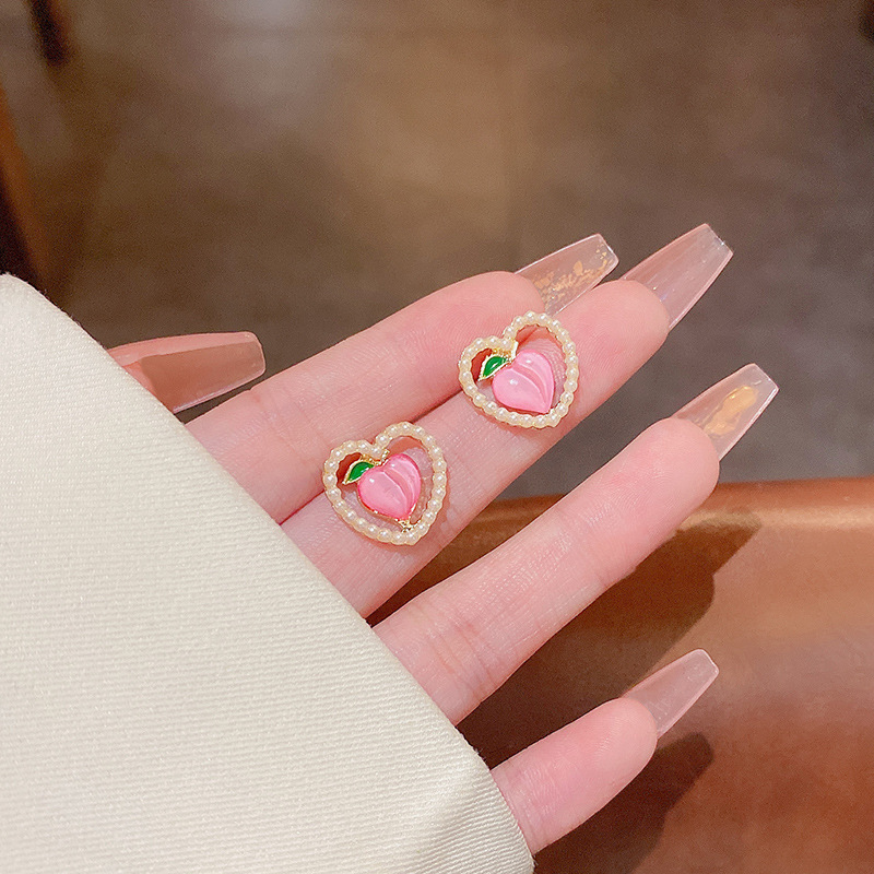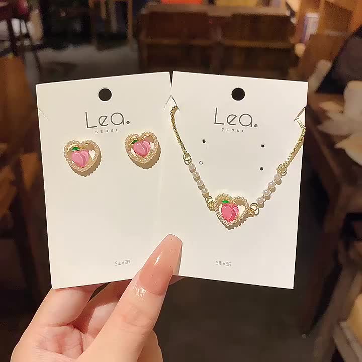 饰品925银针小清新水晶水蜜桃耳钉ins轻奢桃子手链女两件套批发