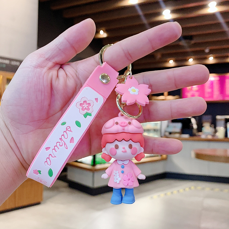 粉嫩樱花女孩钥匙链精致书包创意汽车钥匙挂件可爱公仔挂饰钥匙扣