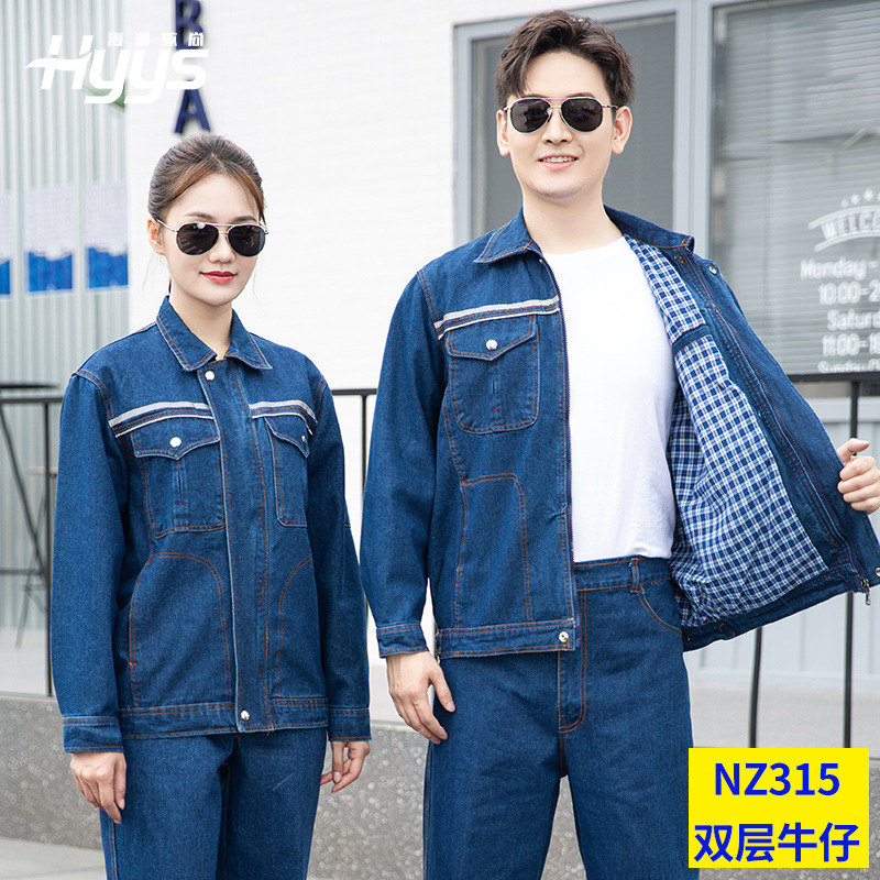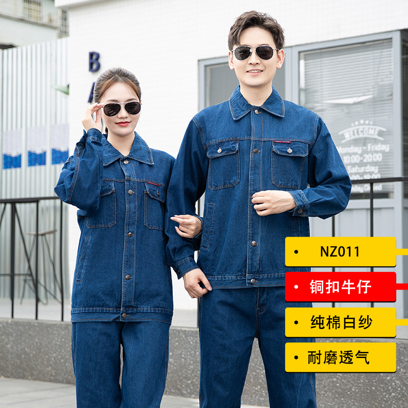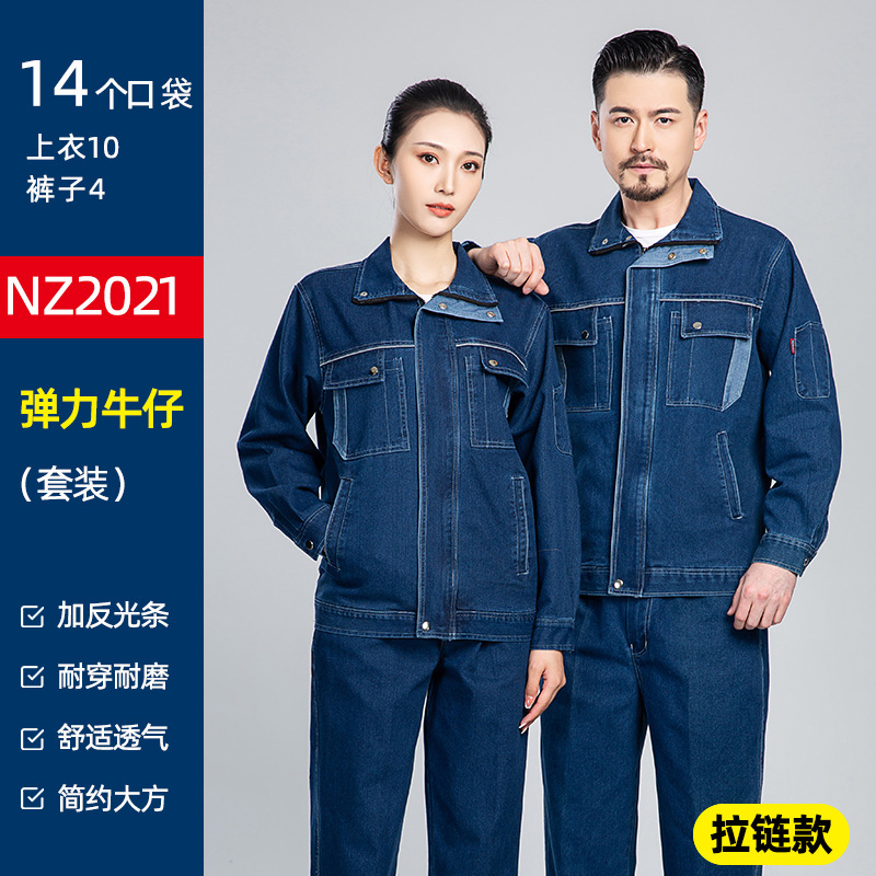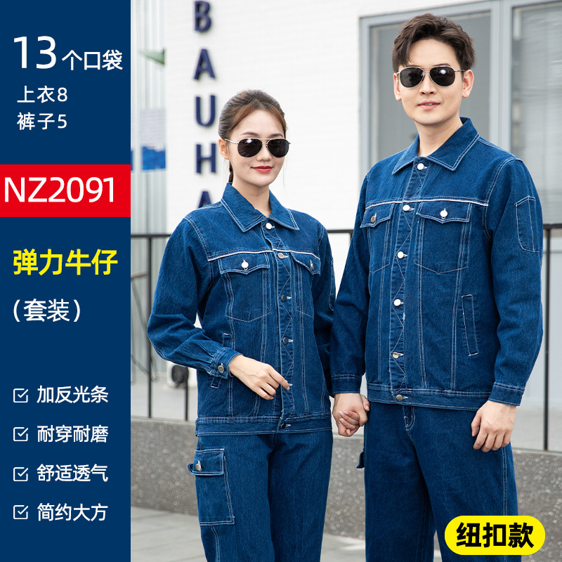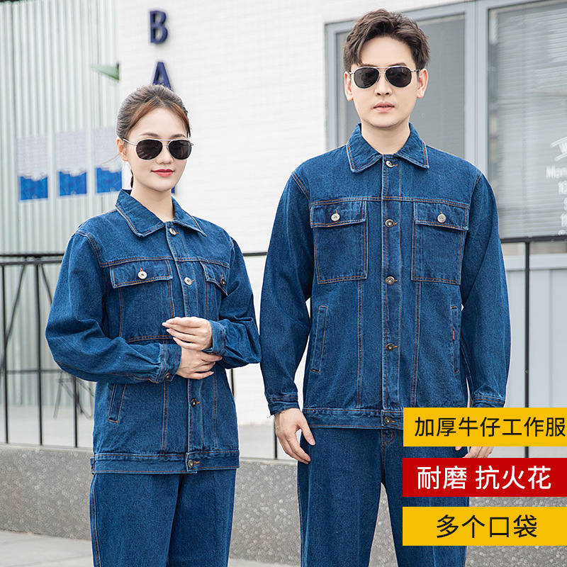 定制弹力牛仔工作服套装男春秋电焊阻燃防烫抗火性焊工汽修劳保服