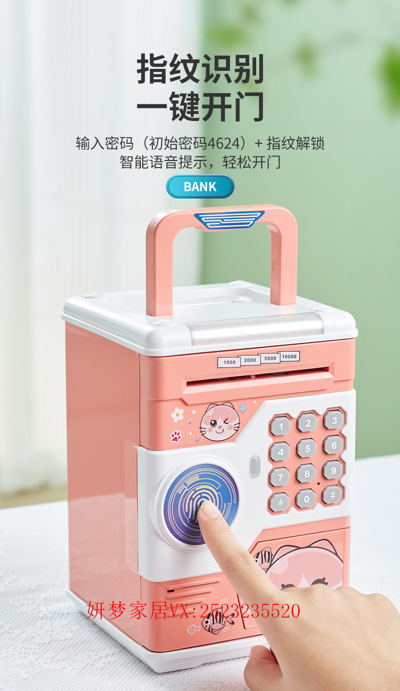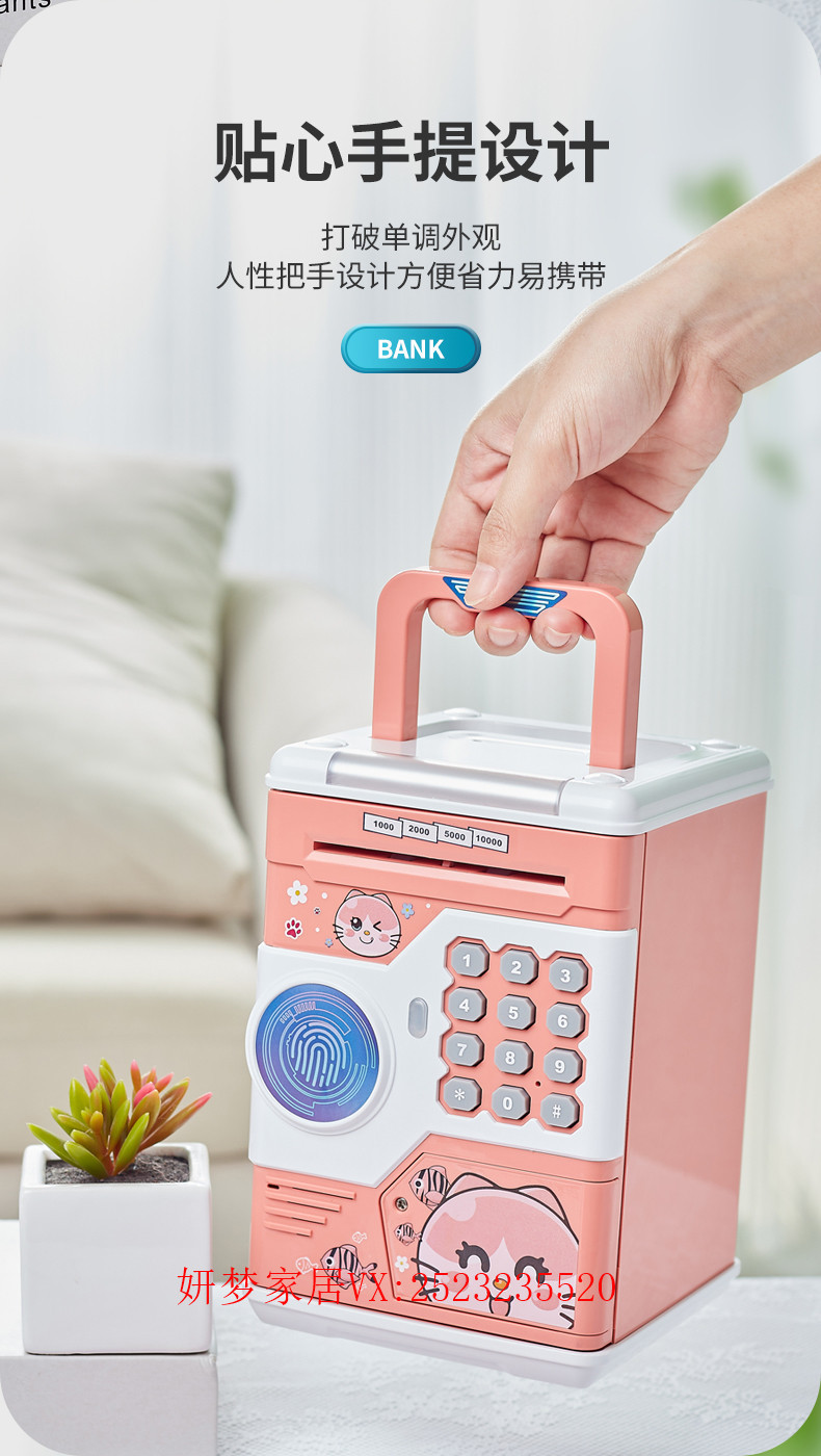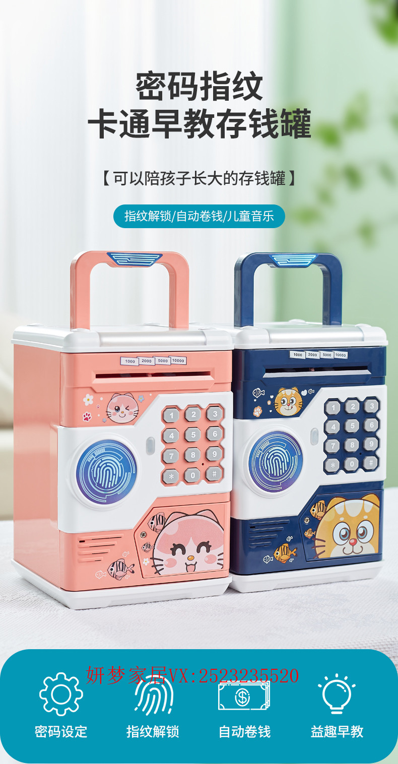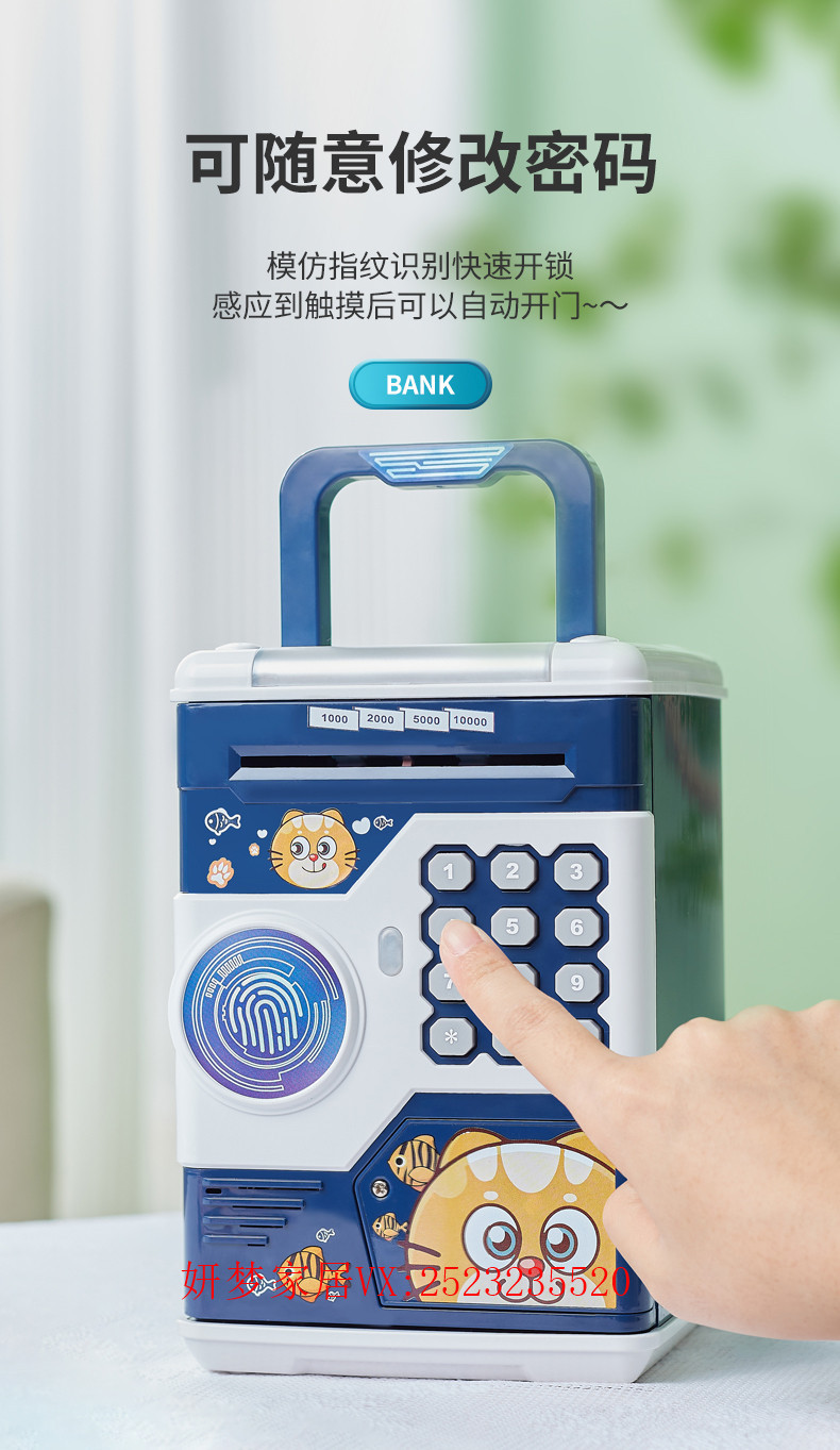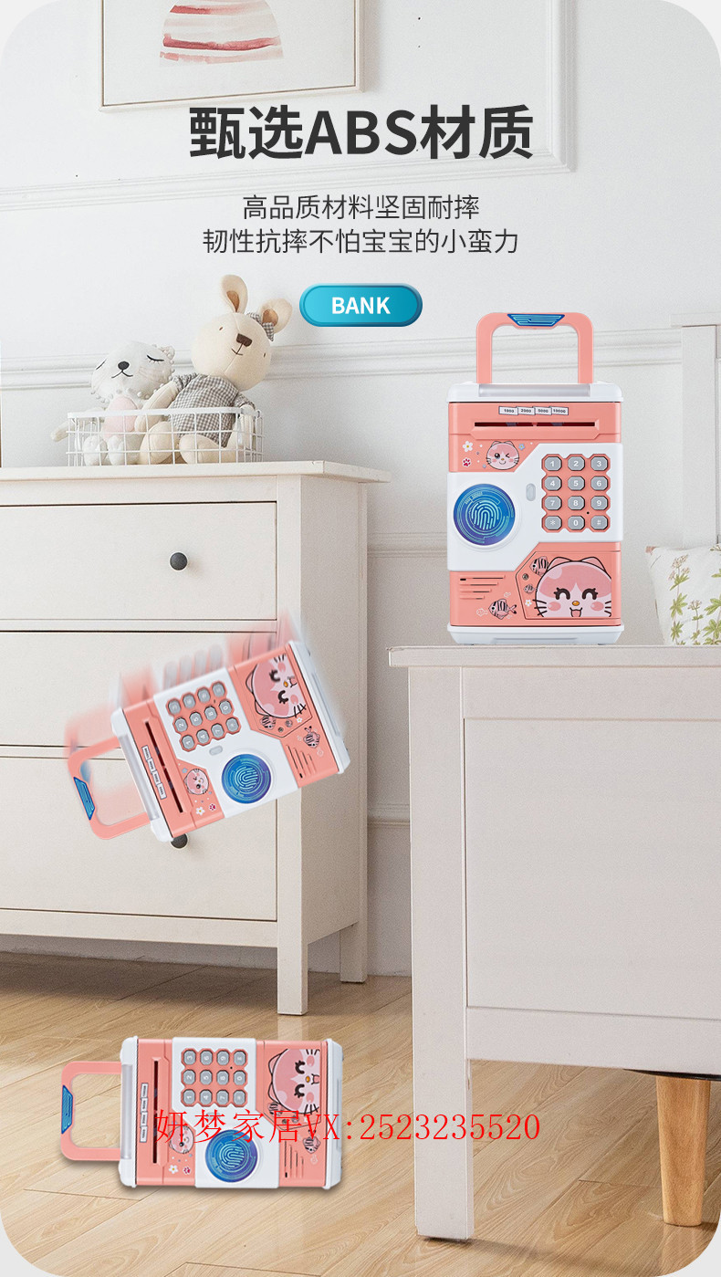 儿童拉杆行李箱密码网红电动储蓄罐仿真指纹大容量卷钱存钱罐防摔