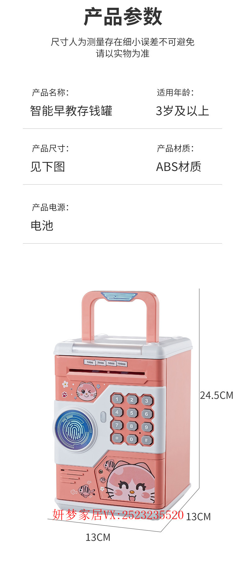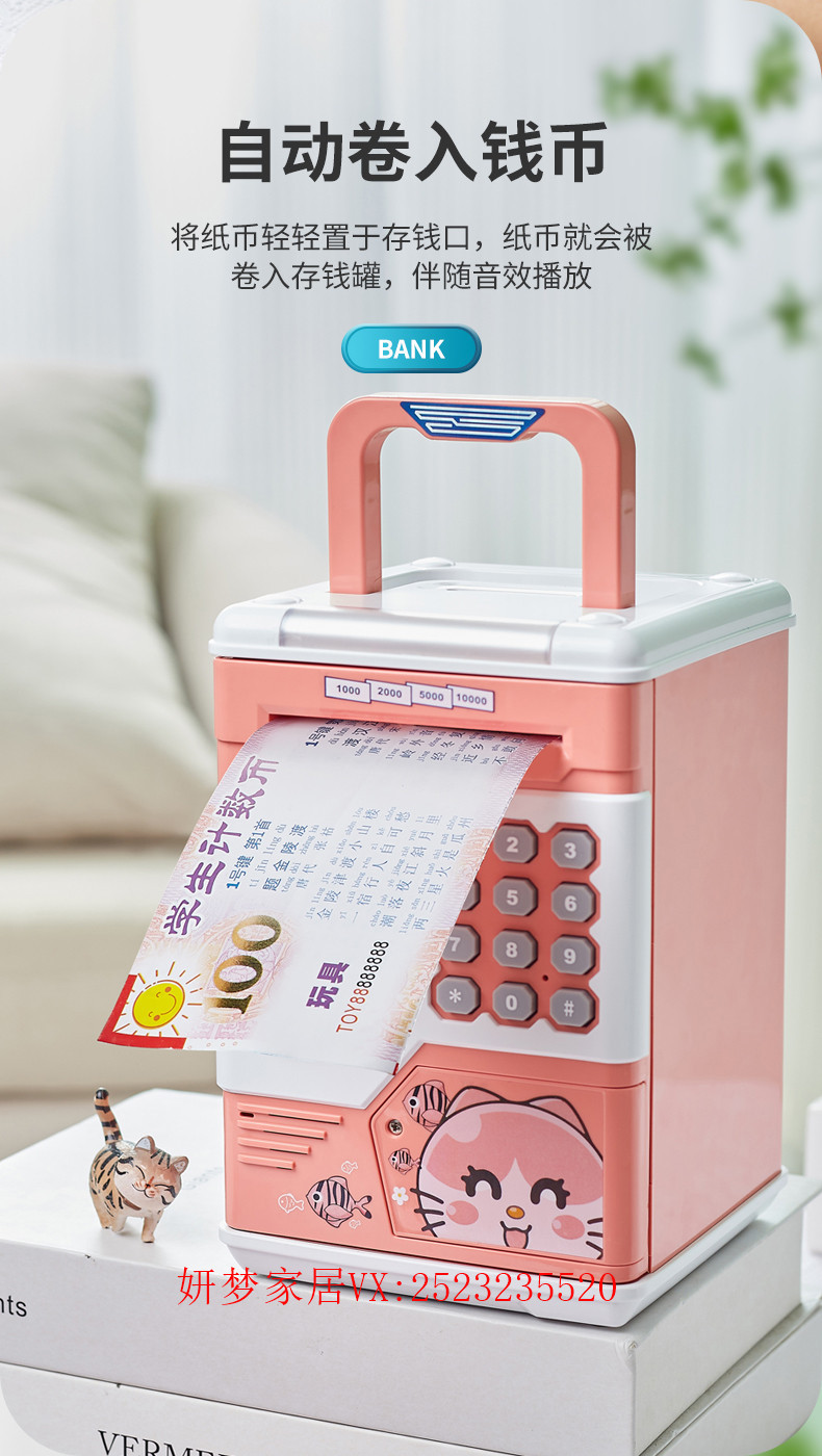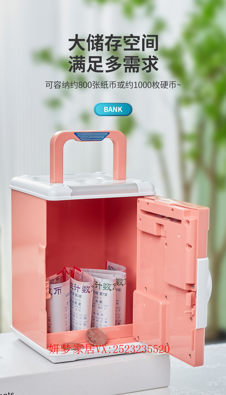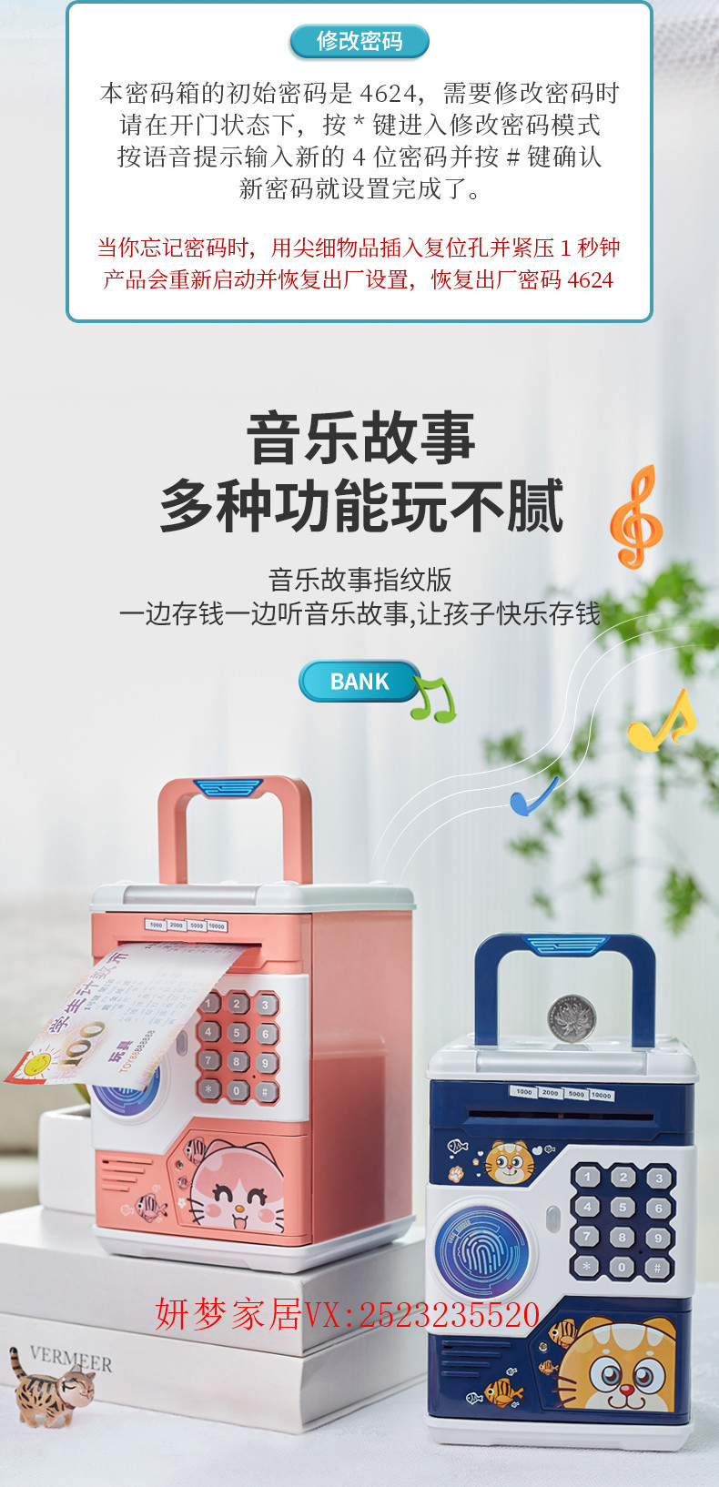 儿童拉杆行李箱密码网红电动储蓄罐仿真指纹大容量卷钱存钱罐防摔