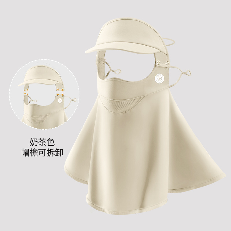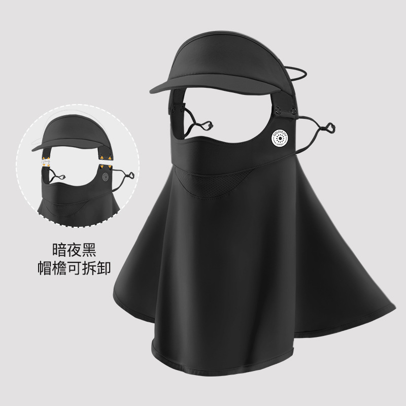 夏季防晒口罩护颈面罩全脸防护防紫外线女挂耳冰丝面纱帽檐遮阳