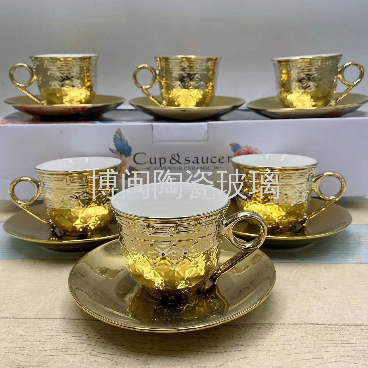 陶瓷咖啡杯碟电镀金边陶瓷欧式220ml套装杯碟强化瓷花茶杯