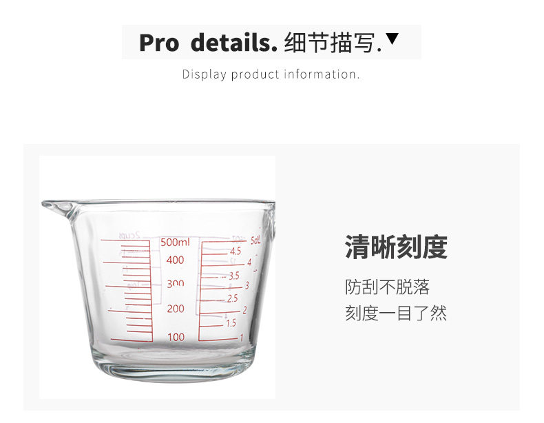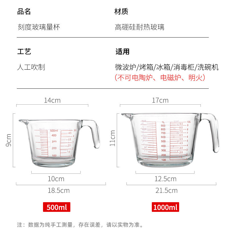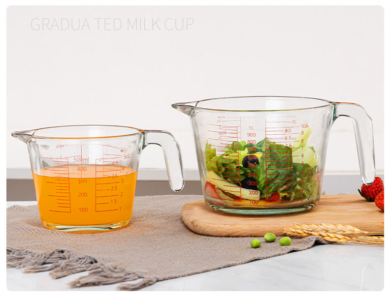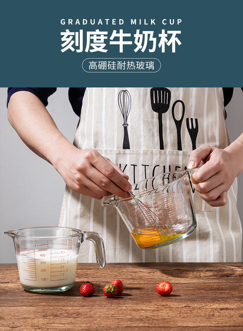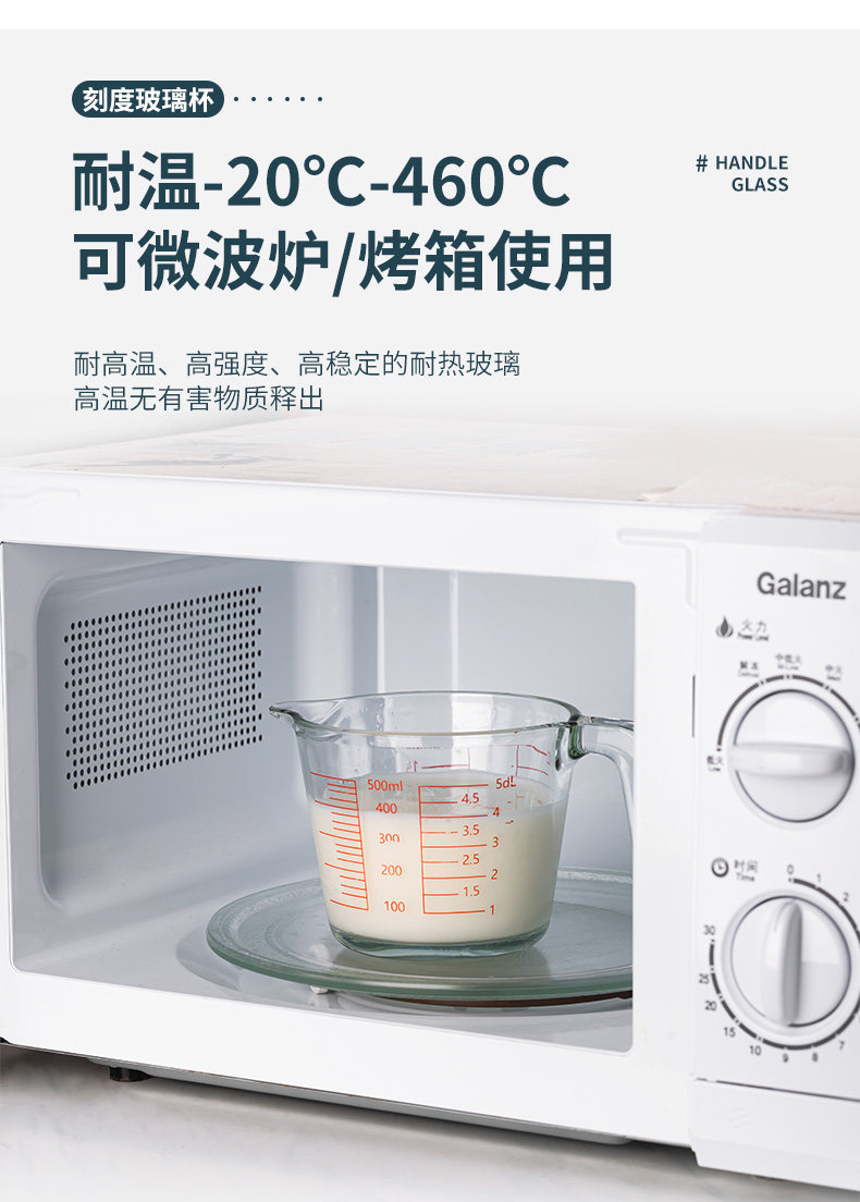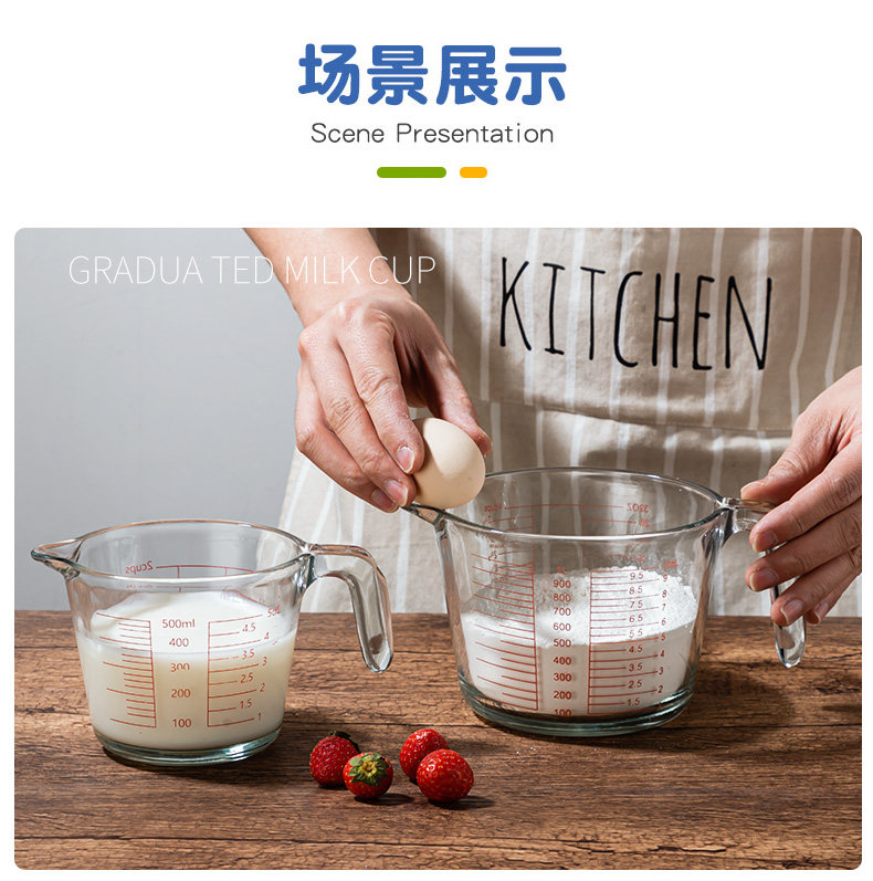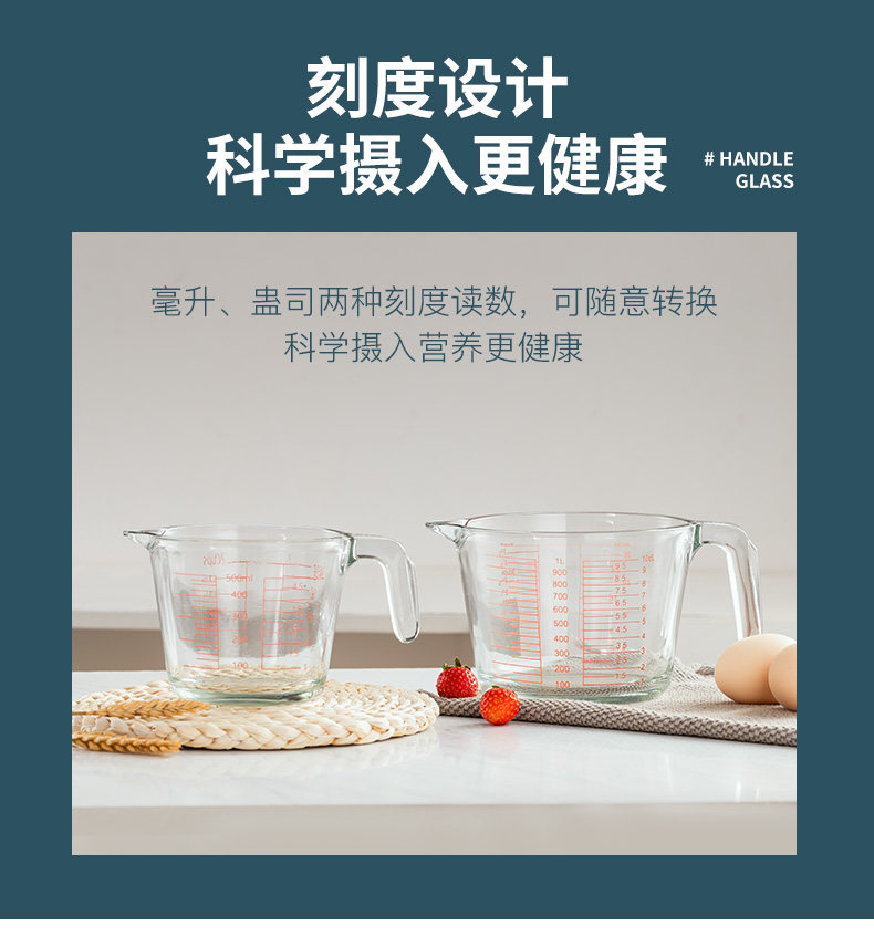 玻璃量杯带刻度大容量耐高温打蛋杯毫升计量水杯有手柄量筒