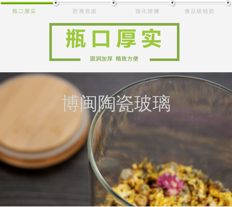 玻璃瓶密封罐储物罐厨房五谷杂粮茶花干果茶叶罐透明收纳带竹盖
