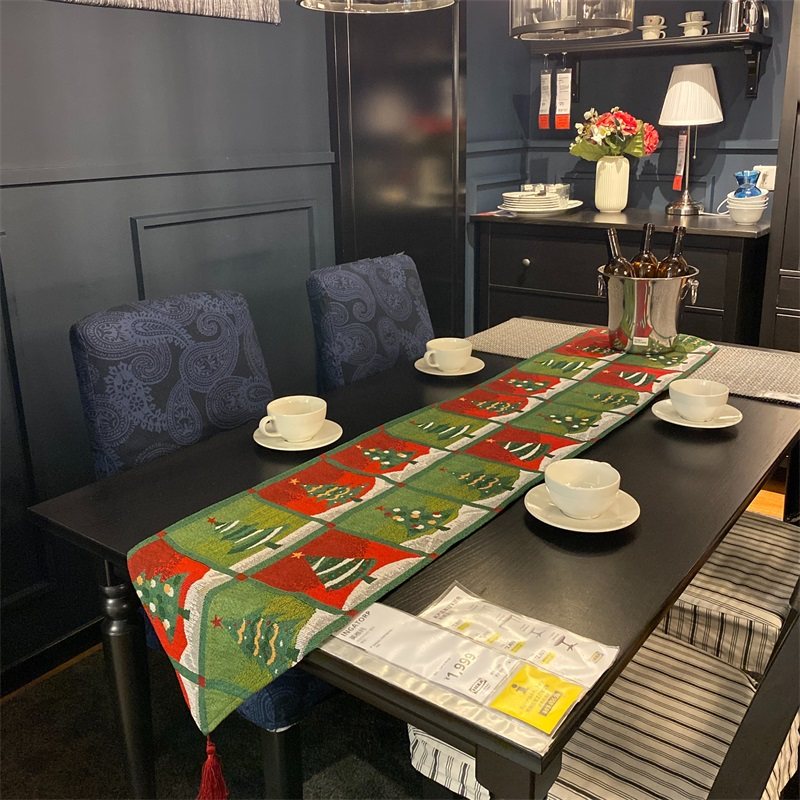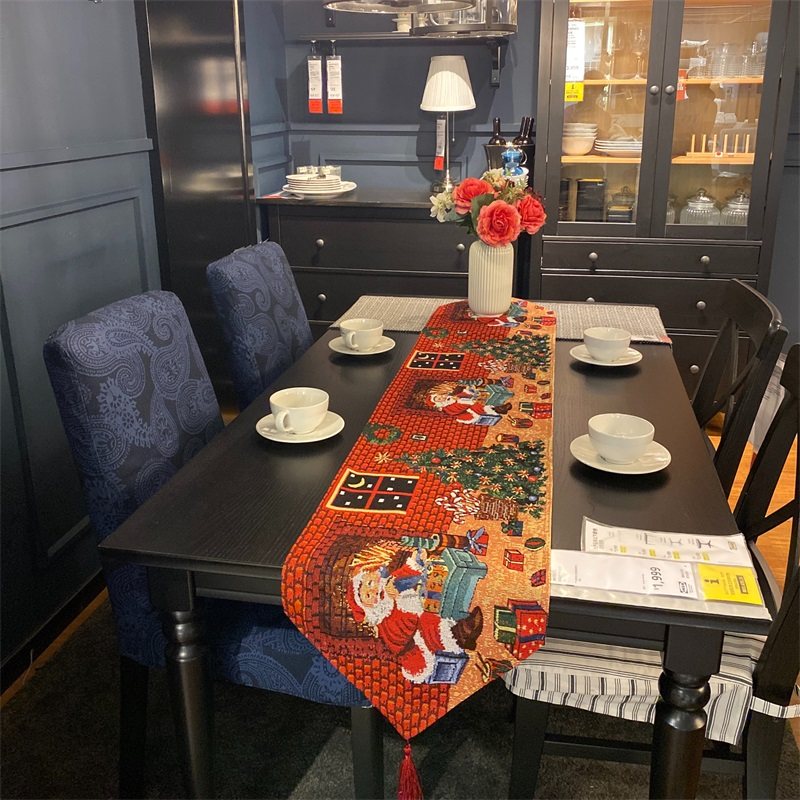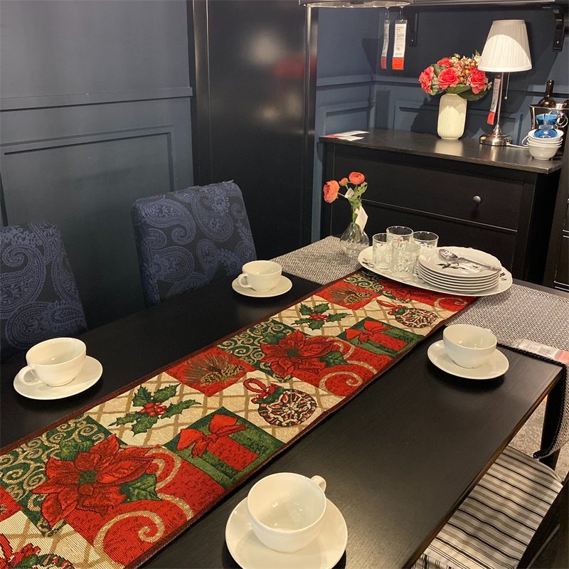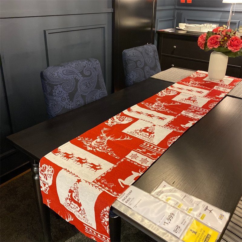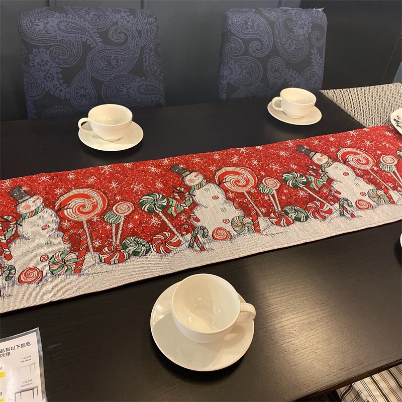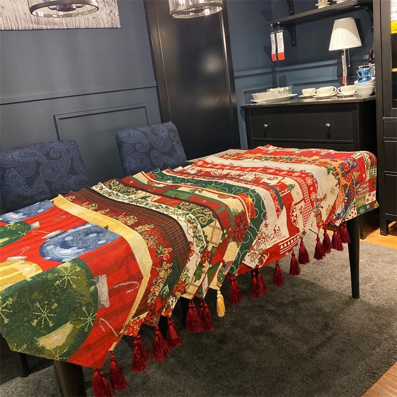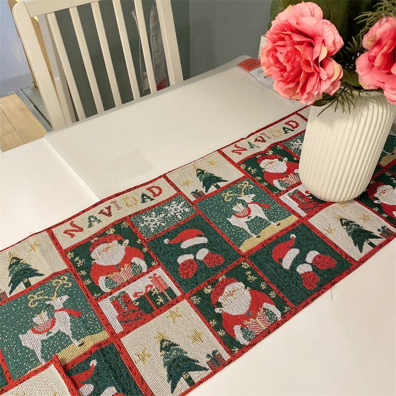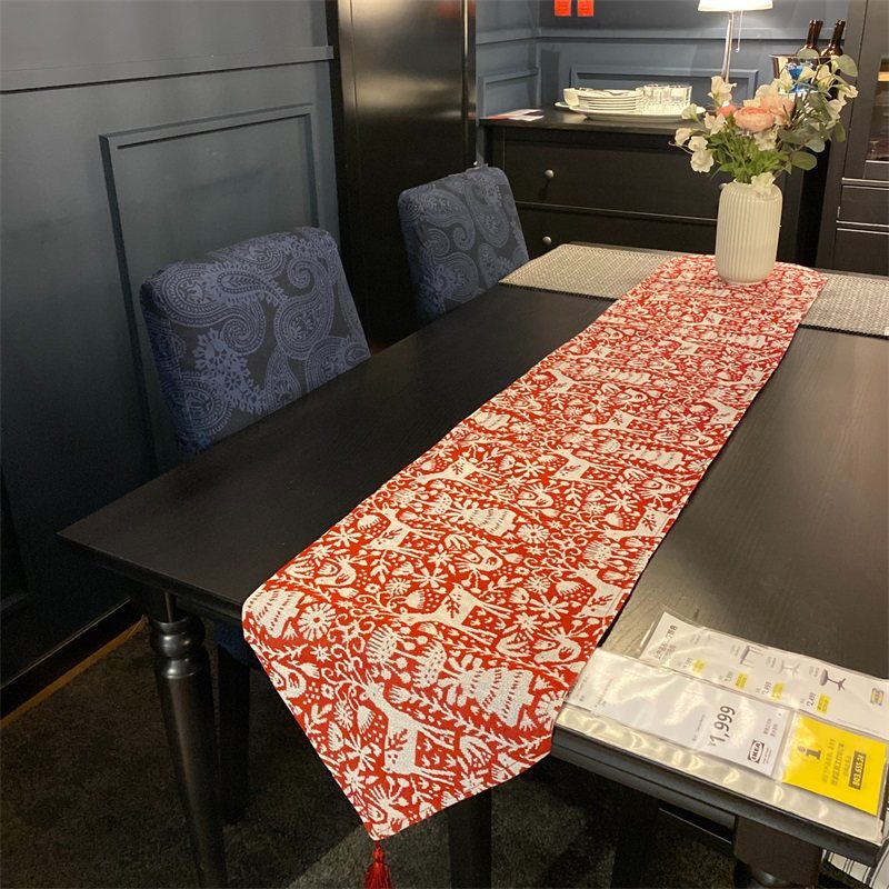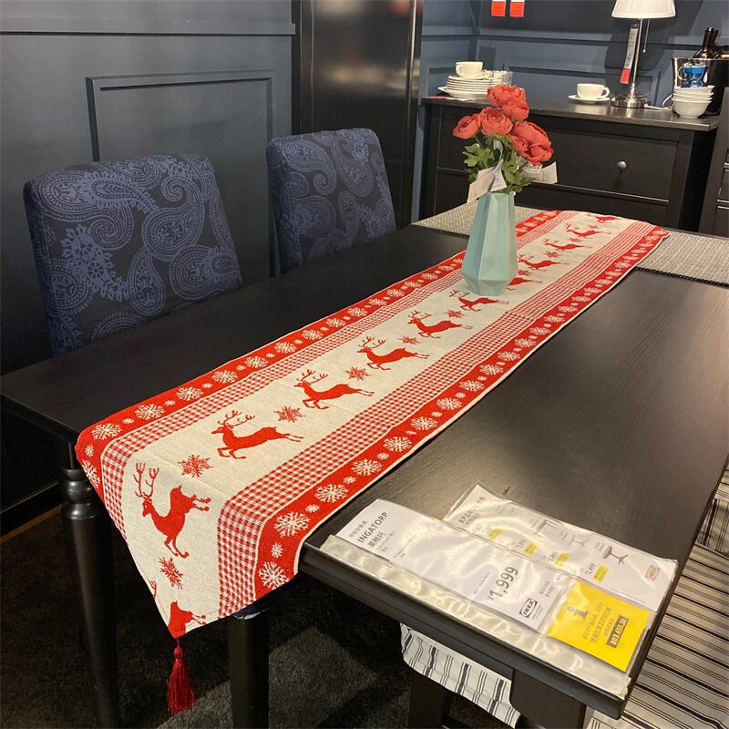 外贸出口圣诞节新年喜庆棉麻复古桌旗桌布长桌条巾餐垫茶几柜子垫