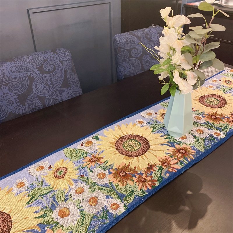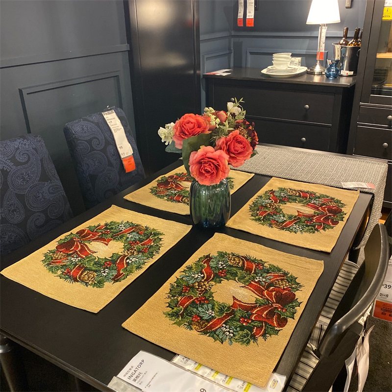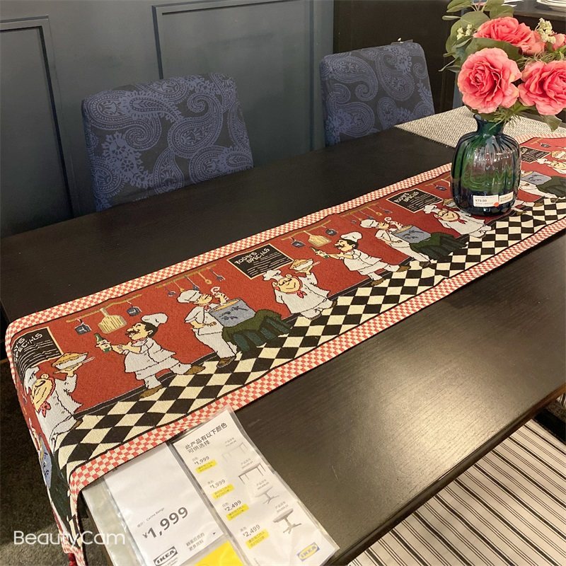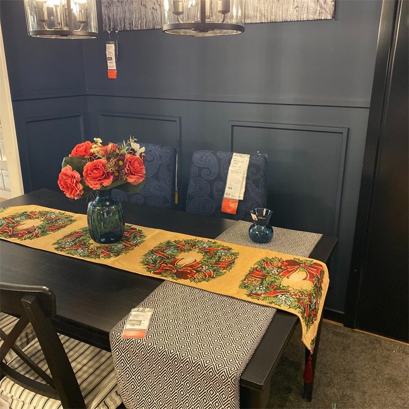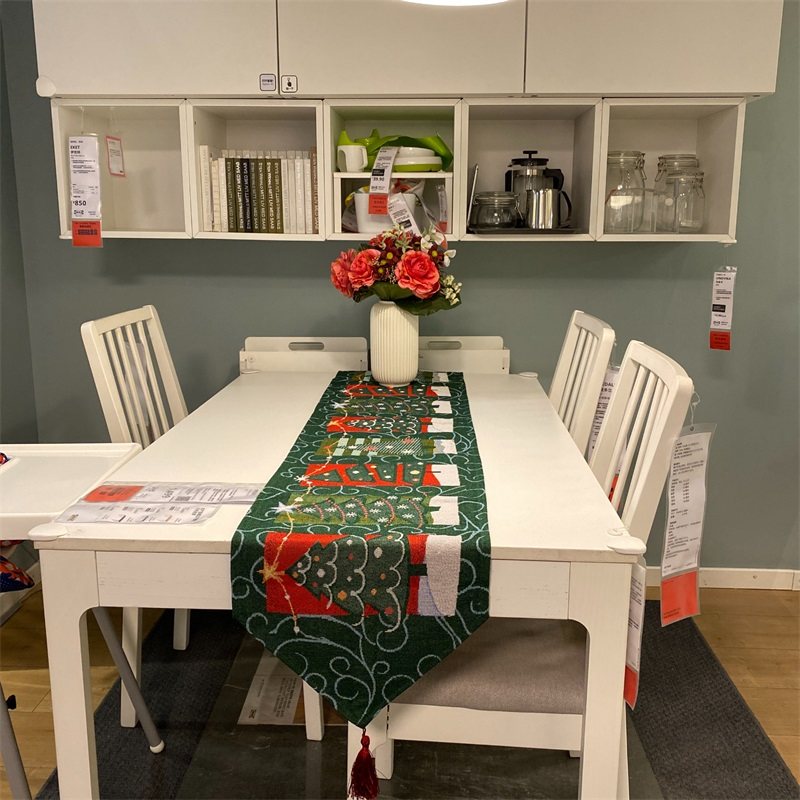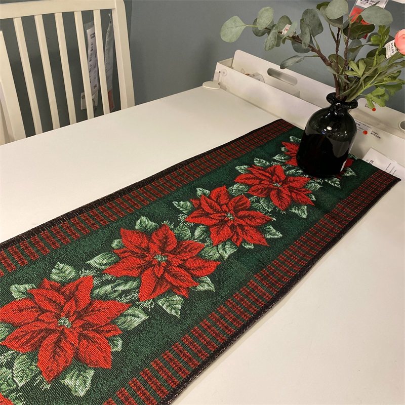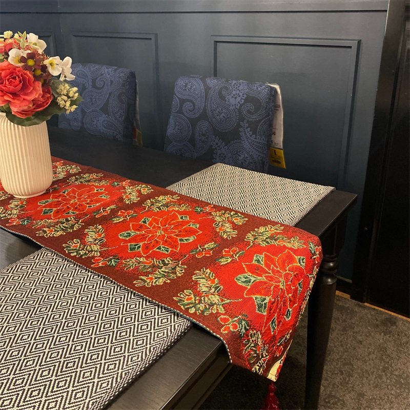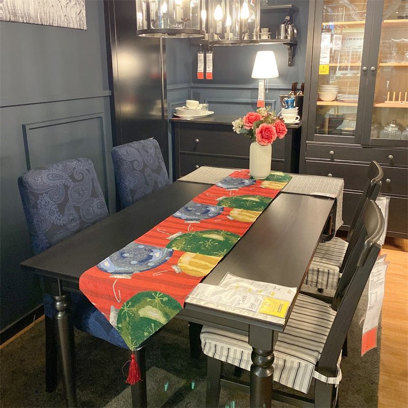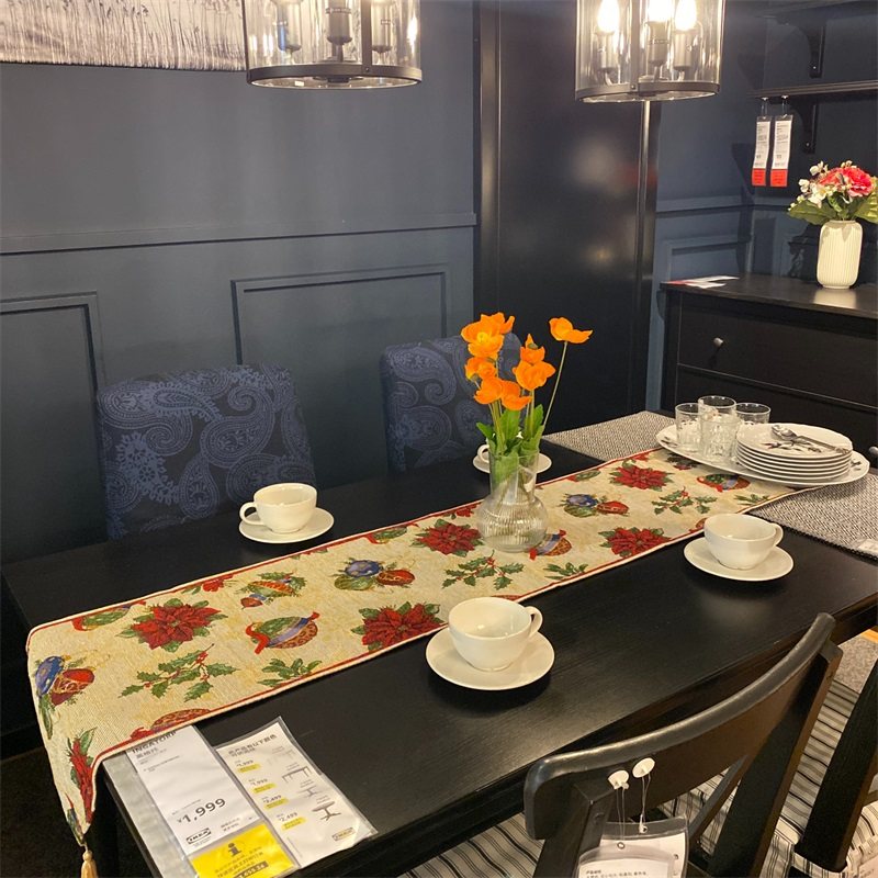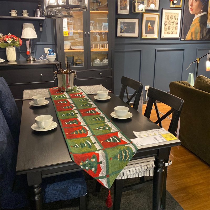 外贸出口圣诞节新年喜庆棉麻复古桌旗桌布长桌条巾餐垫茶几柜子垫