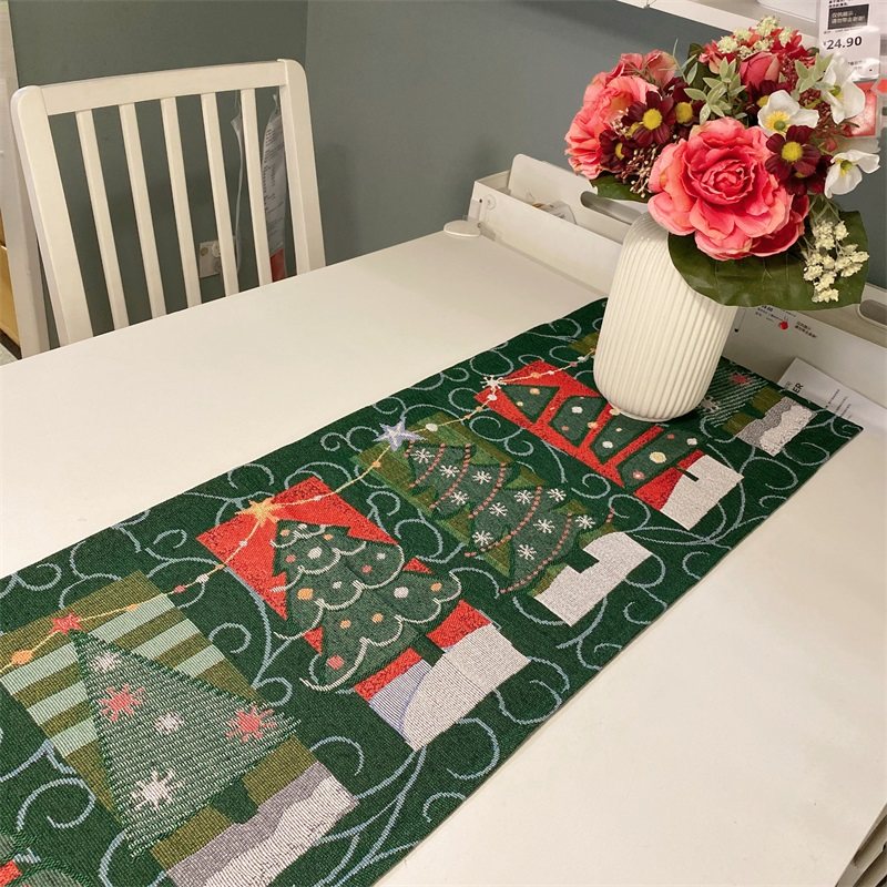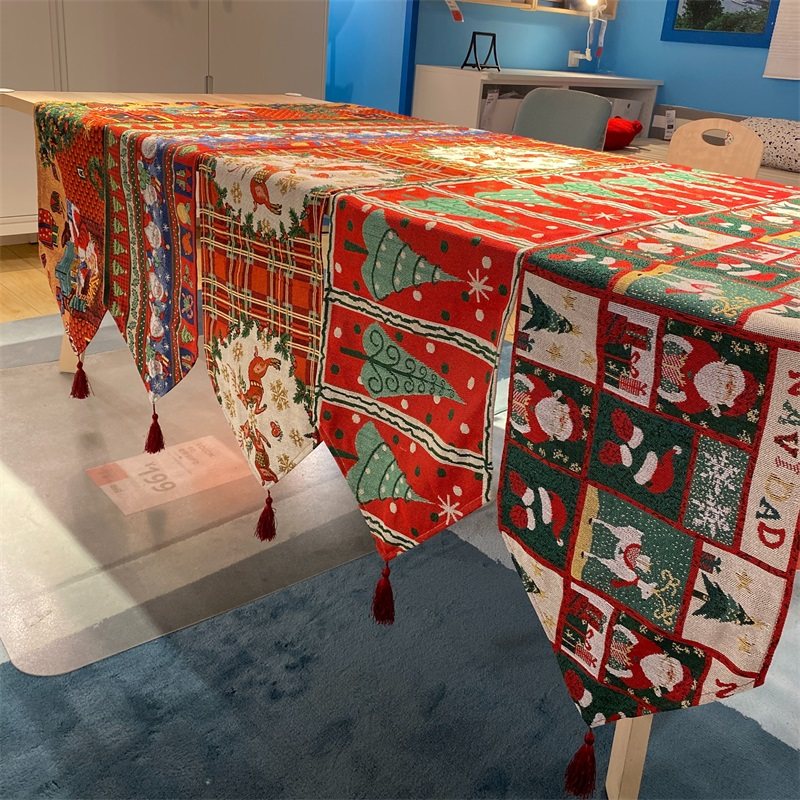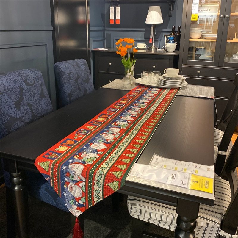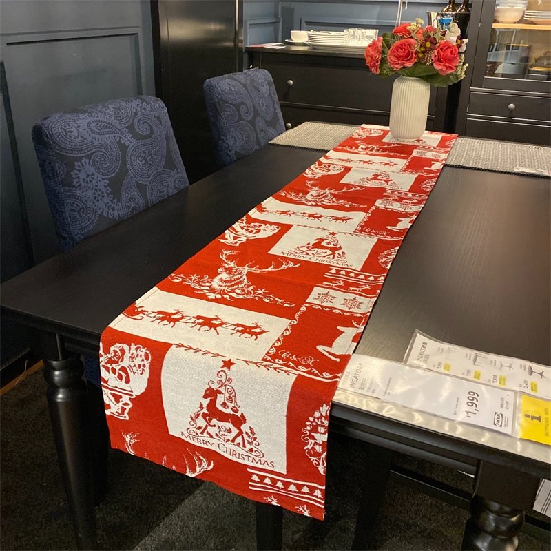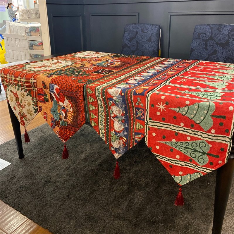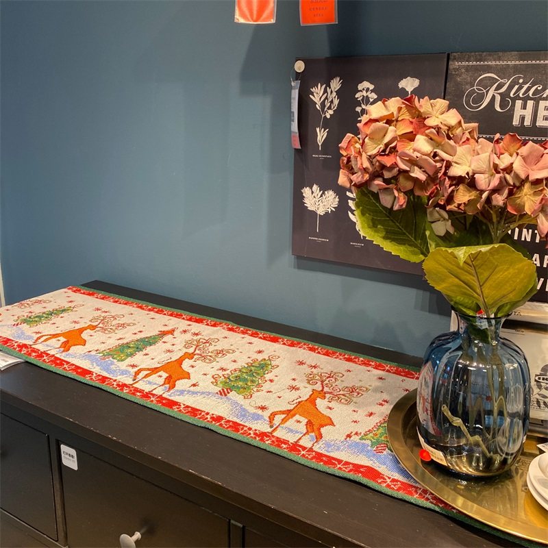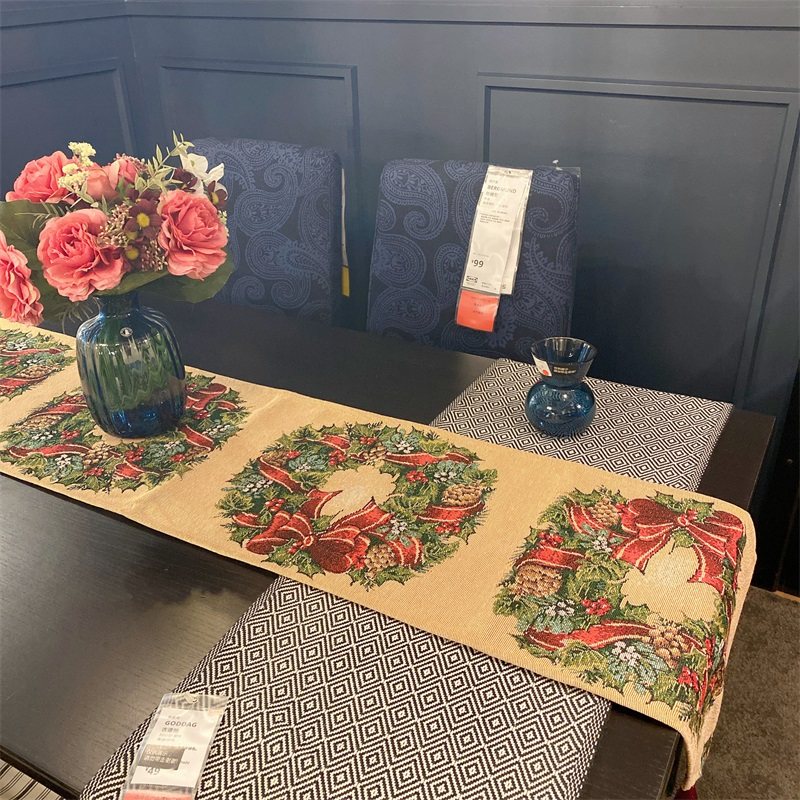 新款网红ins风圣诞节喜庆圣诞老人红花环圣诞树麋鹿桌旗餐垫
