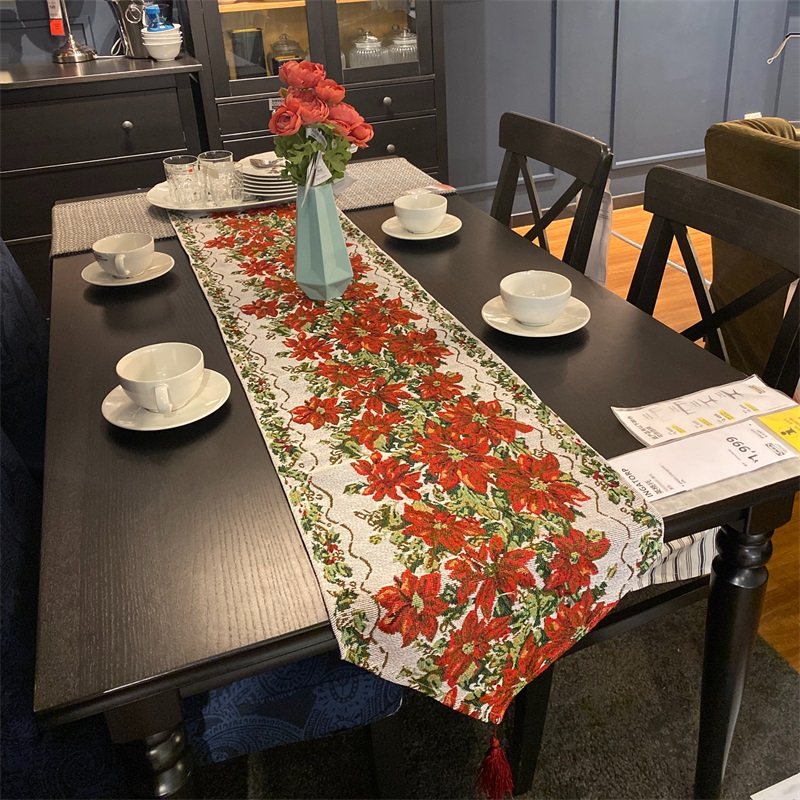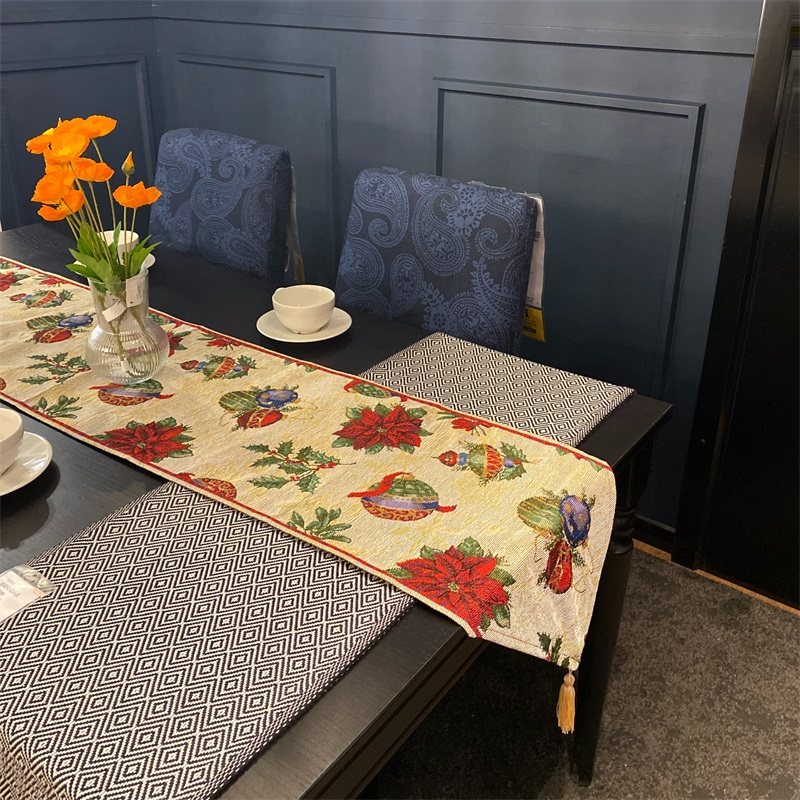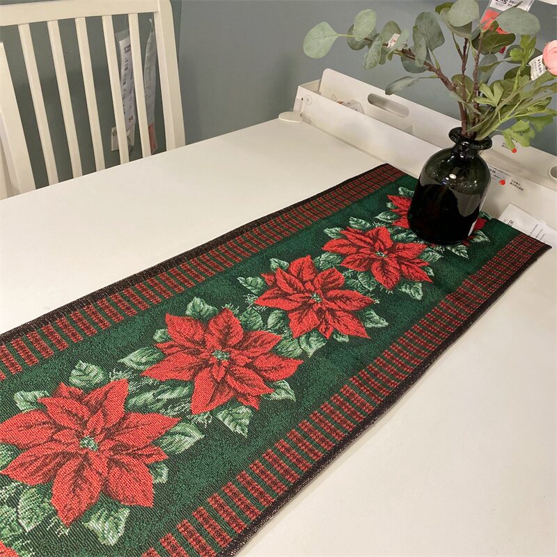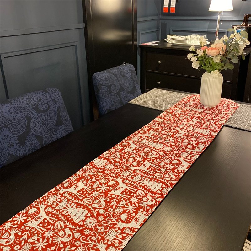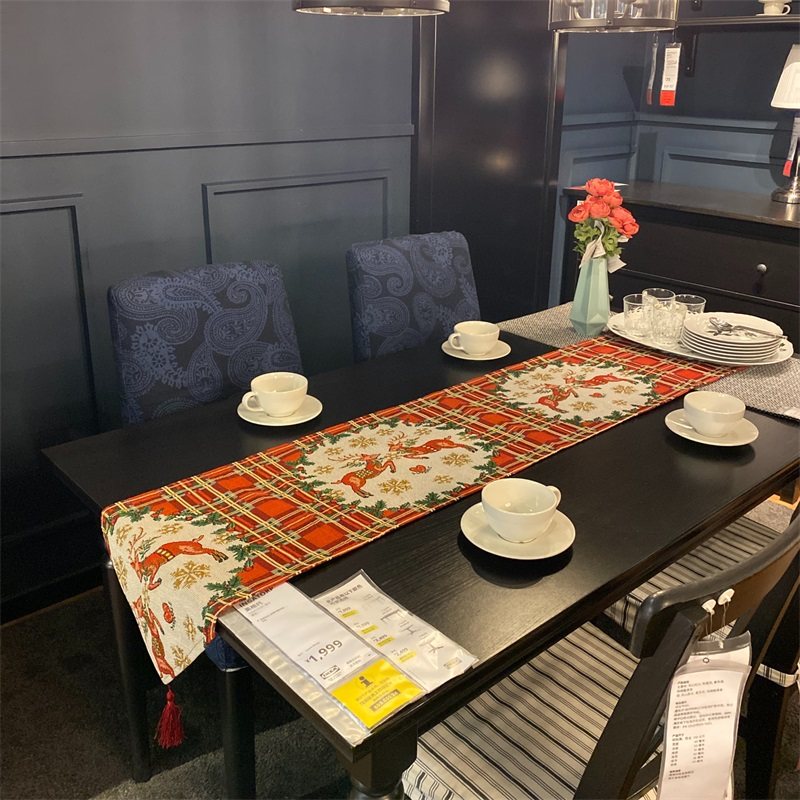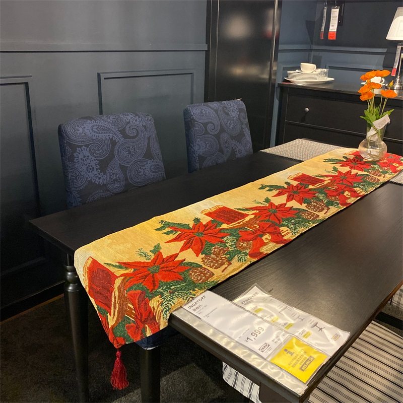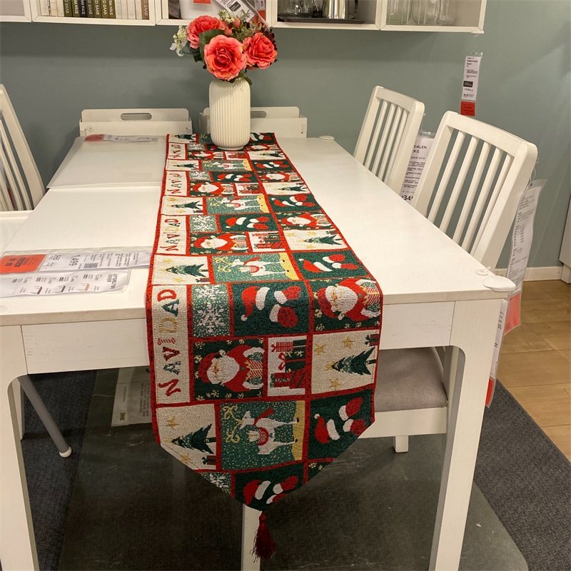 新款网红ins风圣诞节喜庆圣诞老人红花环圣诞树麋鹿桌旗餐垫