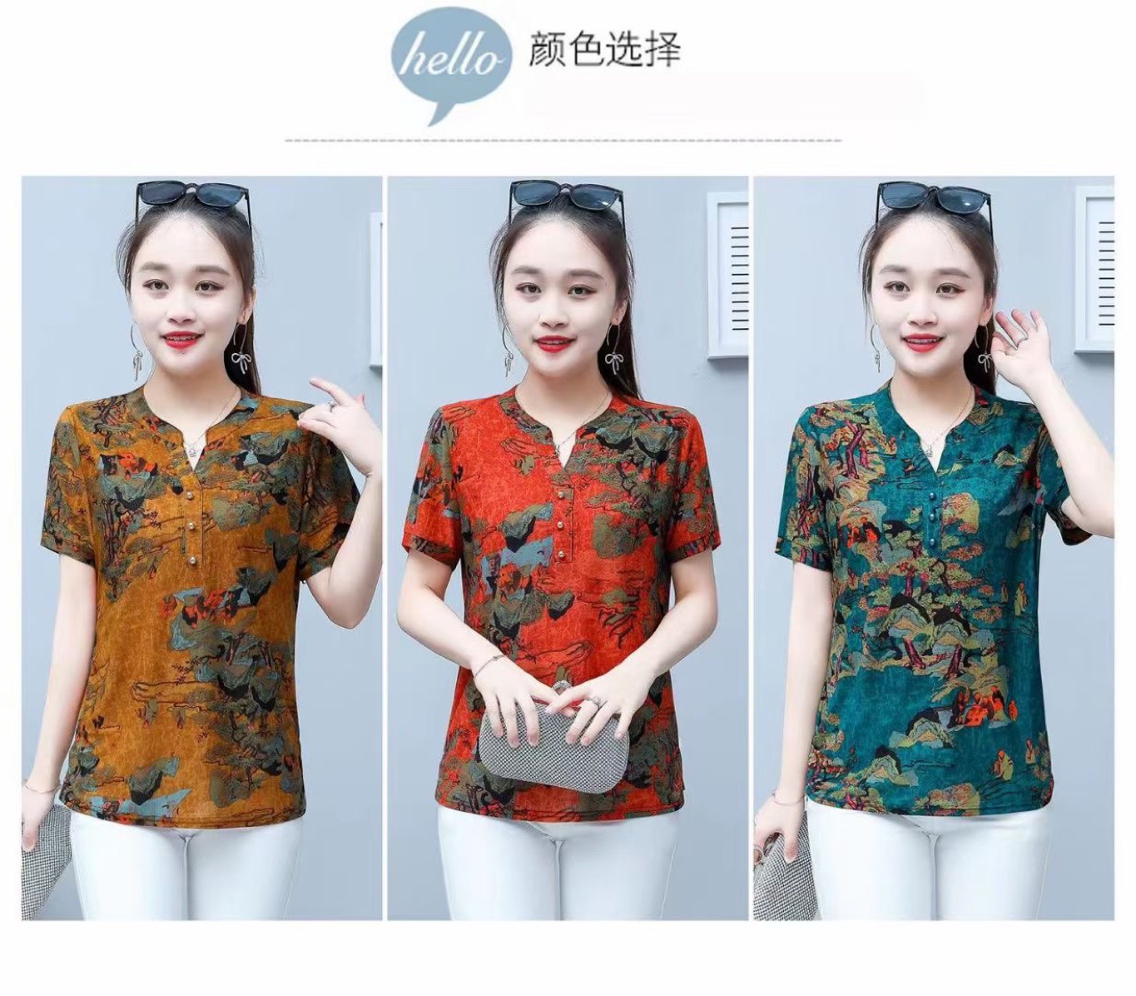 2022夏季款大码妈妈装显瘦A版短袖T恤女士弹力舒适中长款遮臀上衣