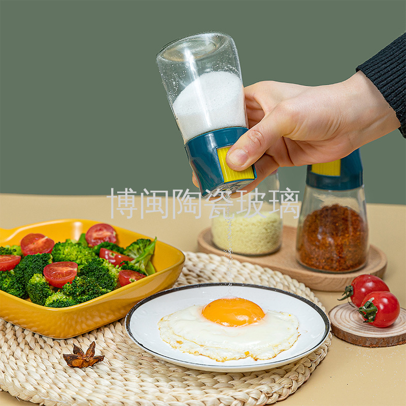 批发按压定量玻璃调味瓶玻璃盐罐调料瓶厨房家用调味盐控盐瓶