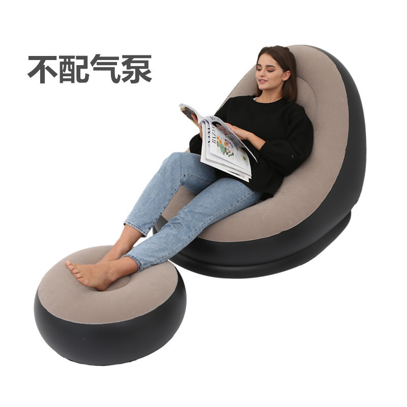 新款懒人沙发充气可折叠躺椅户外沙发床带脚蹬舒适组合植绒沙发椅