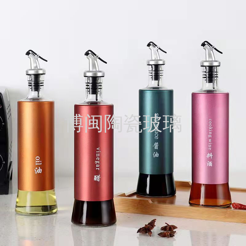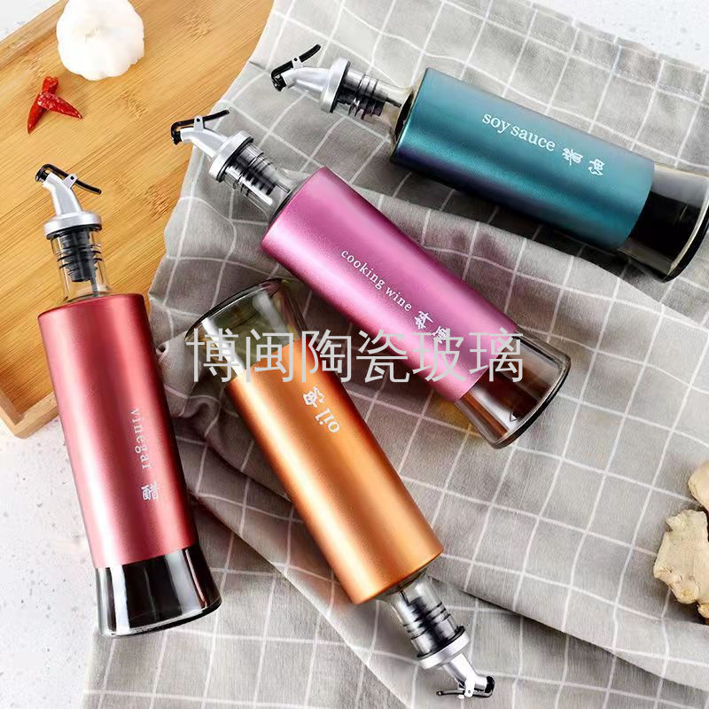 彩色玻璃油瓶 套装厨房酱油壶 密封防漏调味醋瓶 便携油瓶