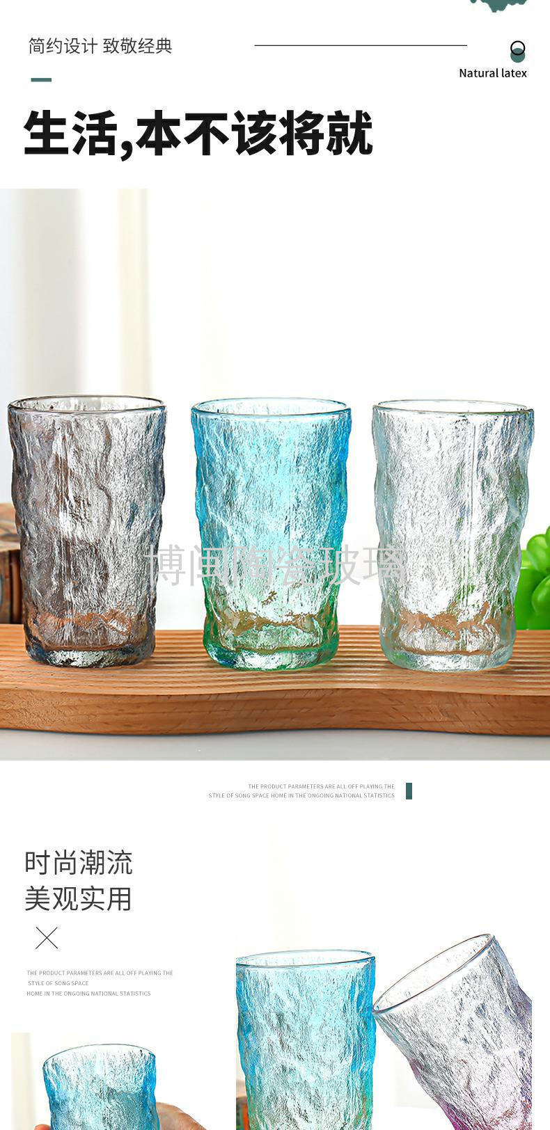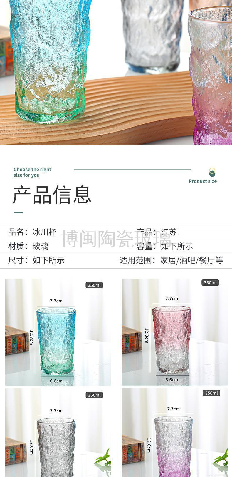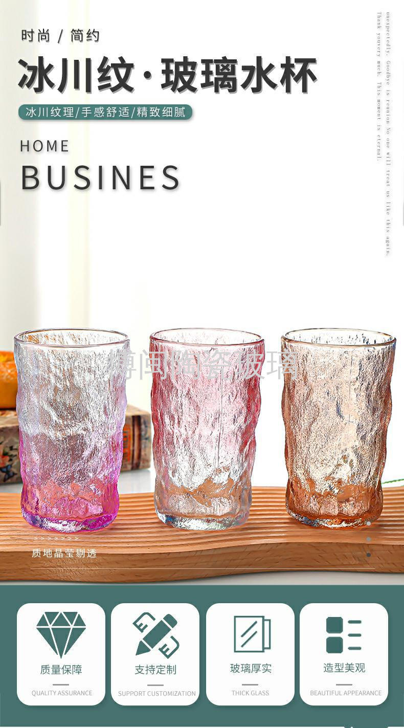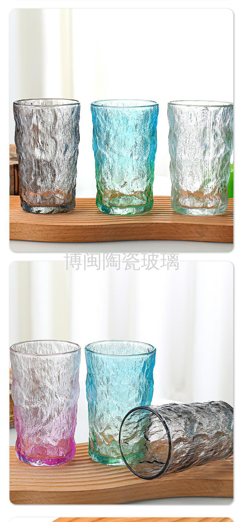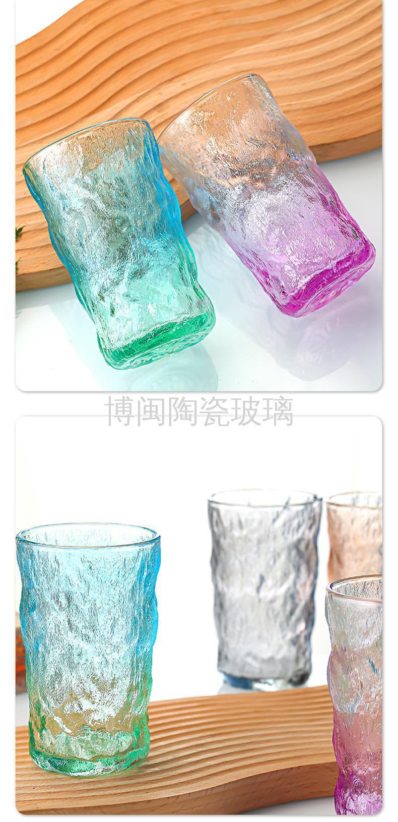 北欧渐变色冰川纹玻璃杯女夏ins风高颜值水杯酒杯网红高级感杯子