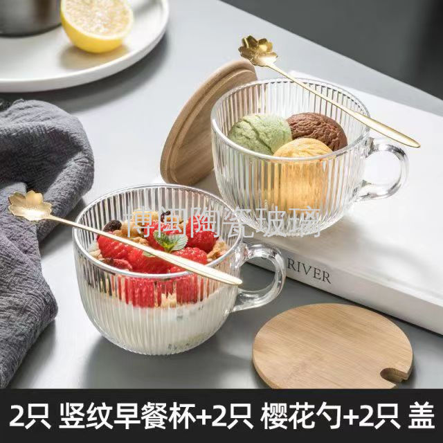 玻璃早餐杯大容量透明牛奶杯简约家用带把手水杯