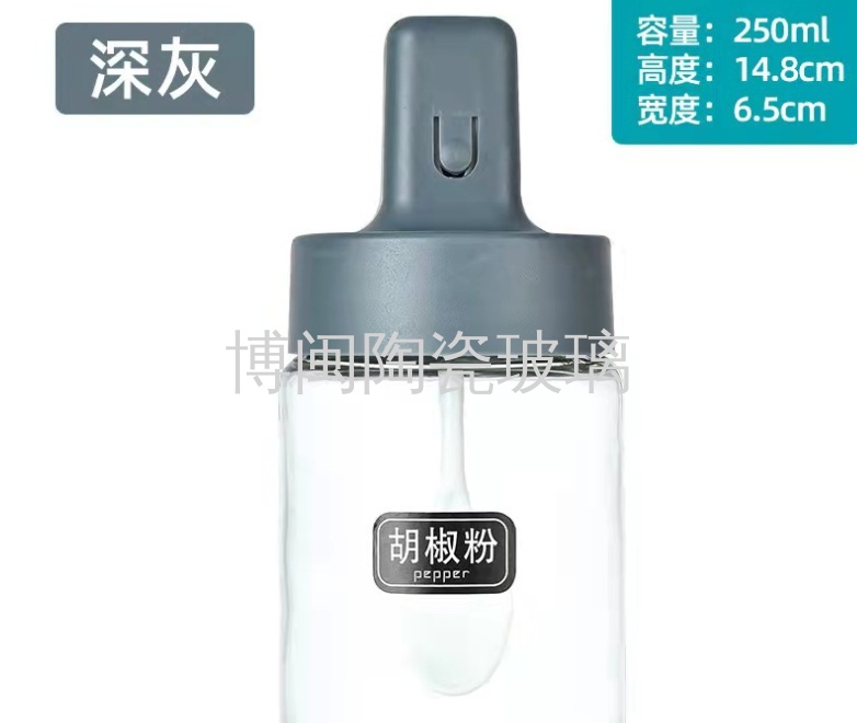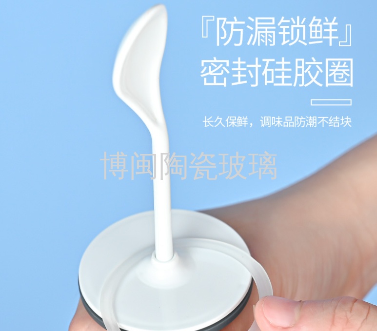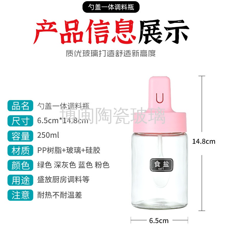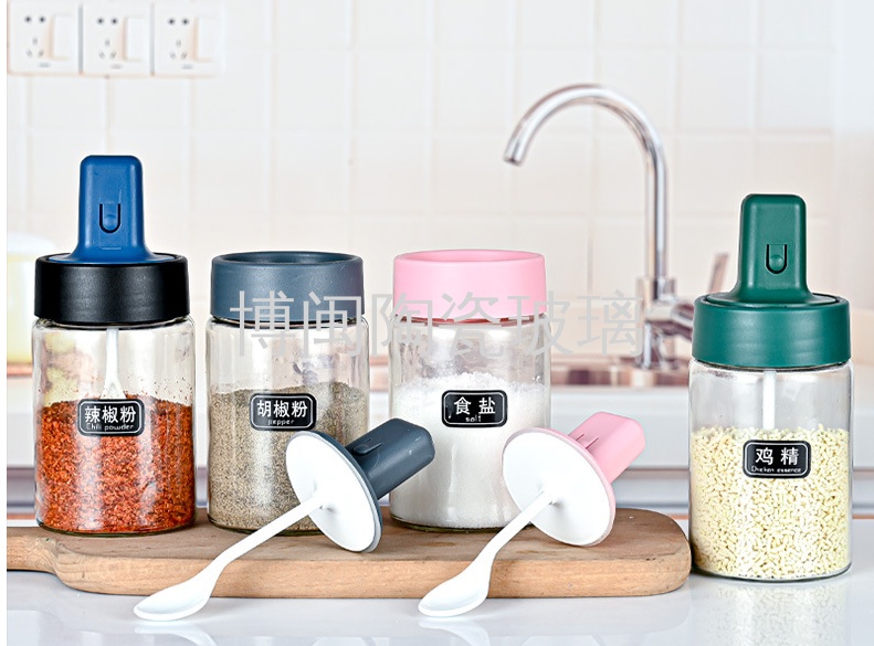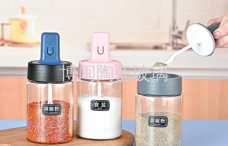厨房用品防潮防漏家用食盐收纳带勺盖一体可伸缩玻璃调味瓶控盐瓶