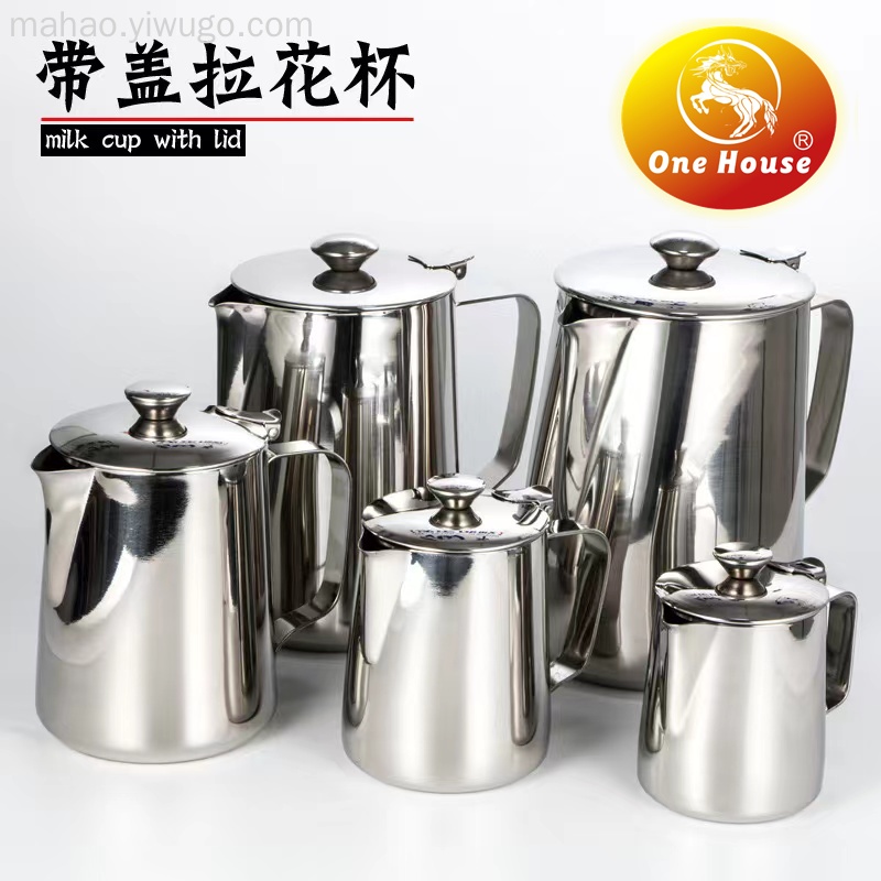 不锈钢带盖拉花咖啡杯