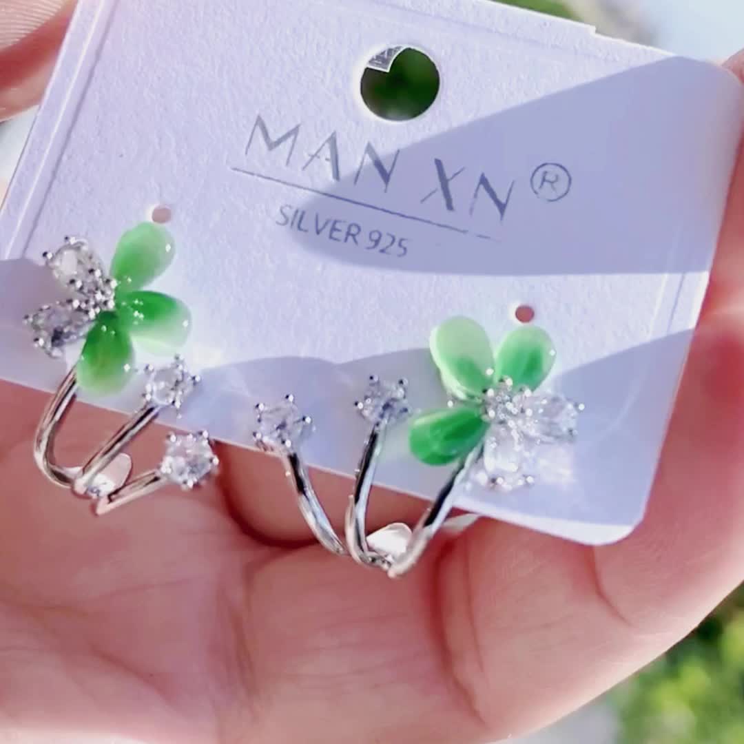 猫眼石小花花耳钉曼休妮925银针厂家直销锆石花瓣耳环耳饰品耳坠