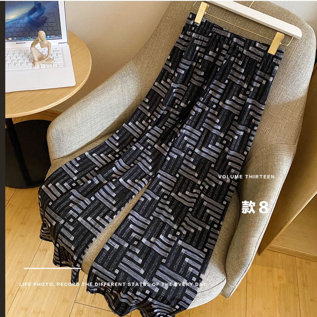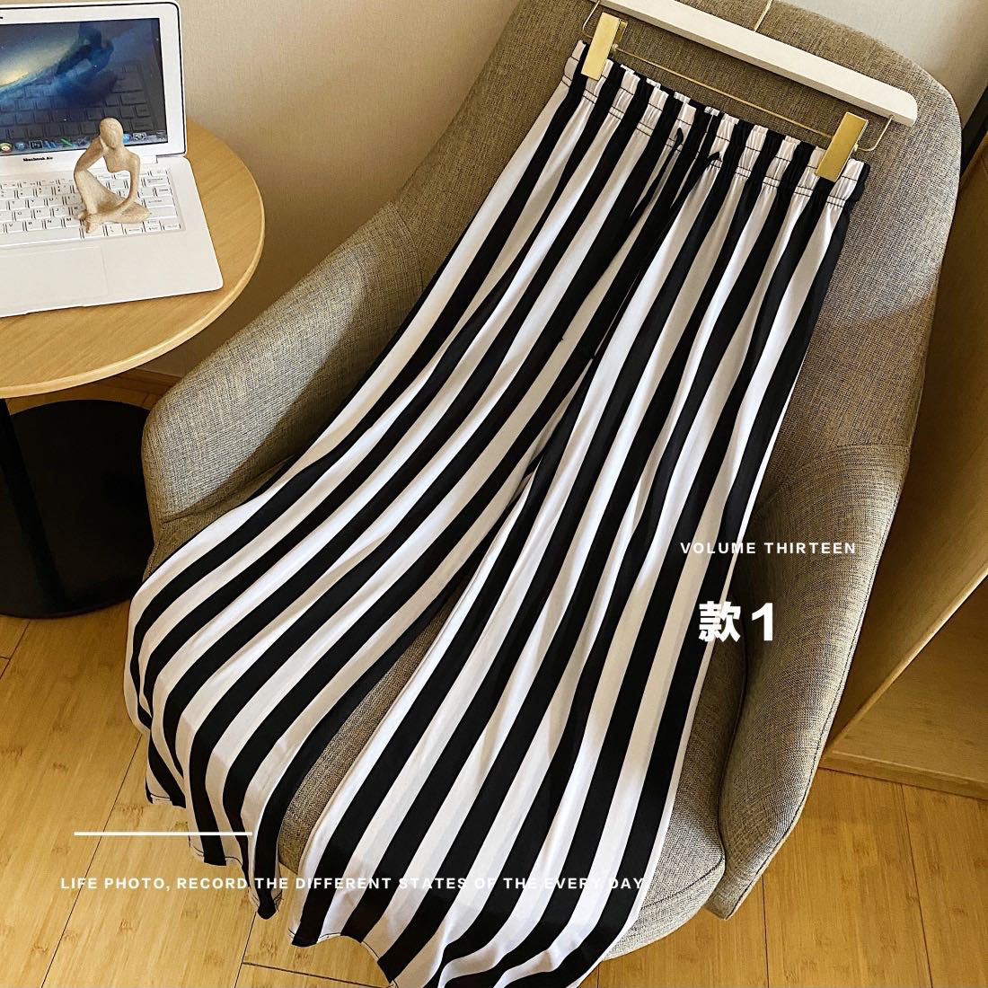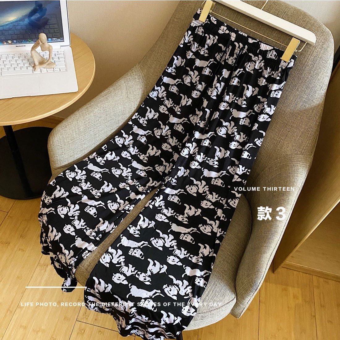高腰拖地裤女韩版感趣味小奶狗阔腿女垂感长裤条纹休闲卡卡拉风裤