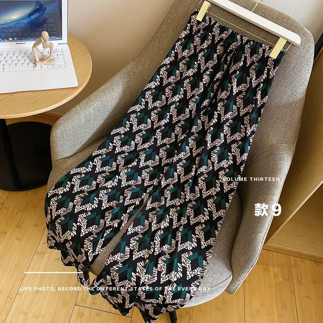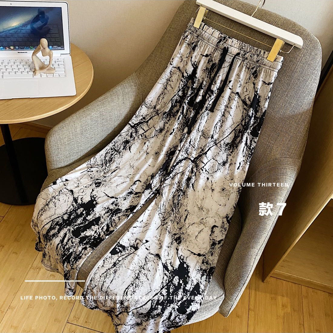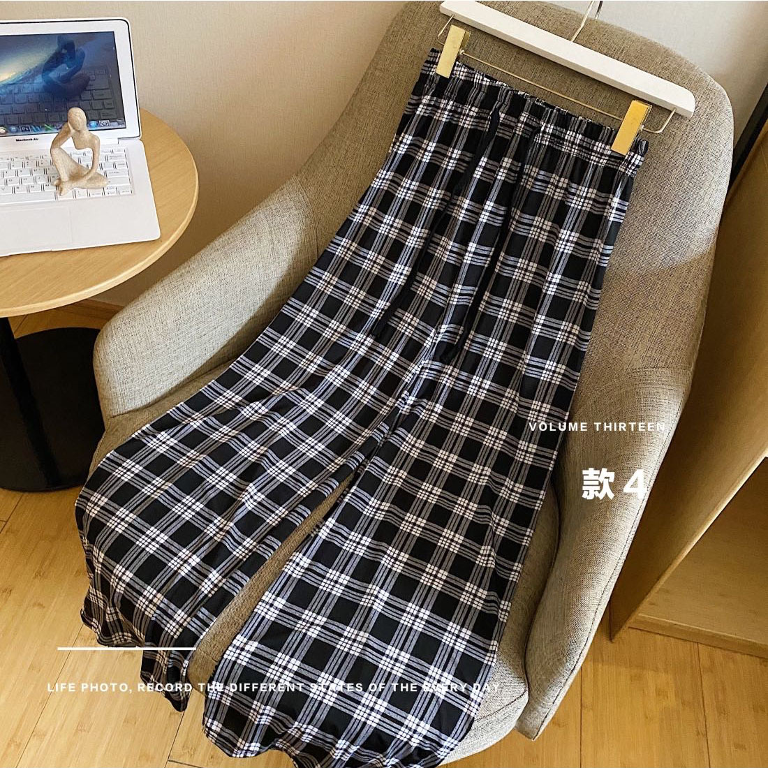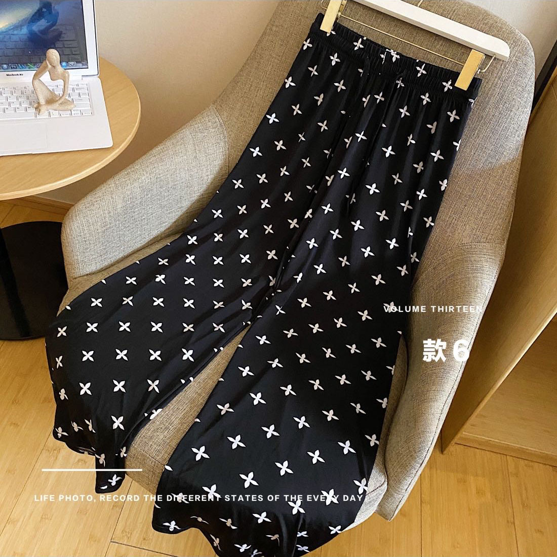 高腰拖地裤女韩版感趣味小奶狗阔腿女垂感长裤条纹休闲卡卡拉风裤