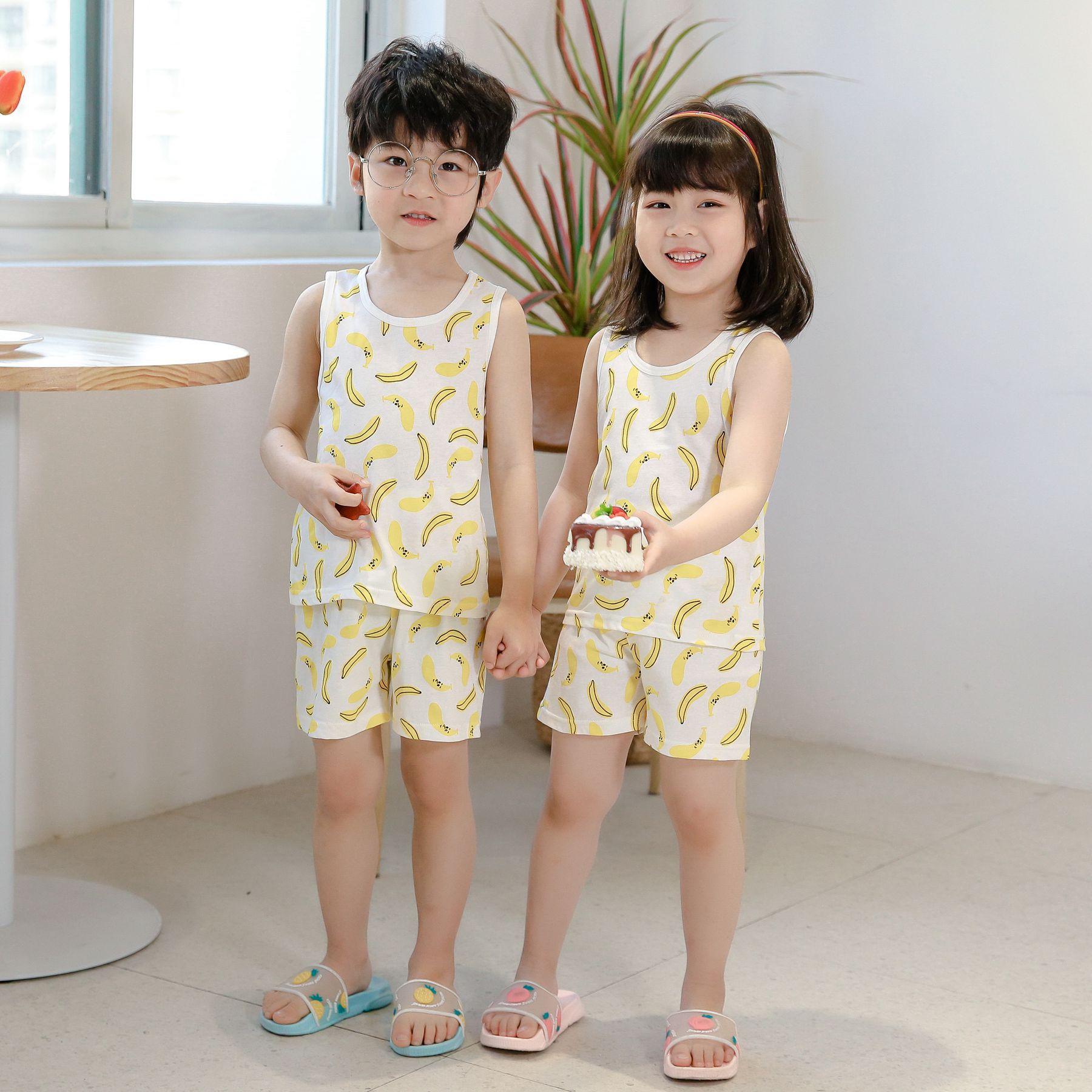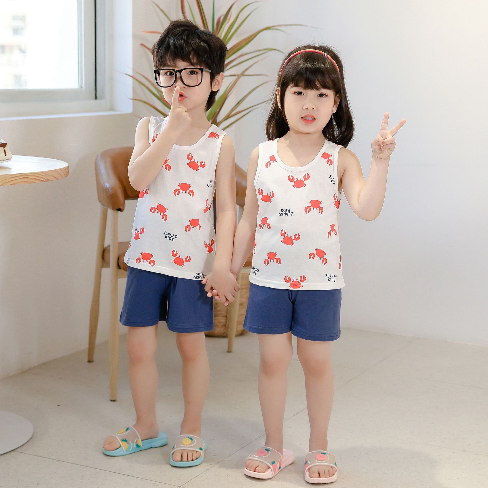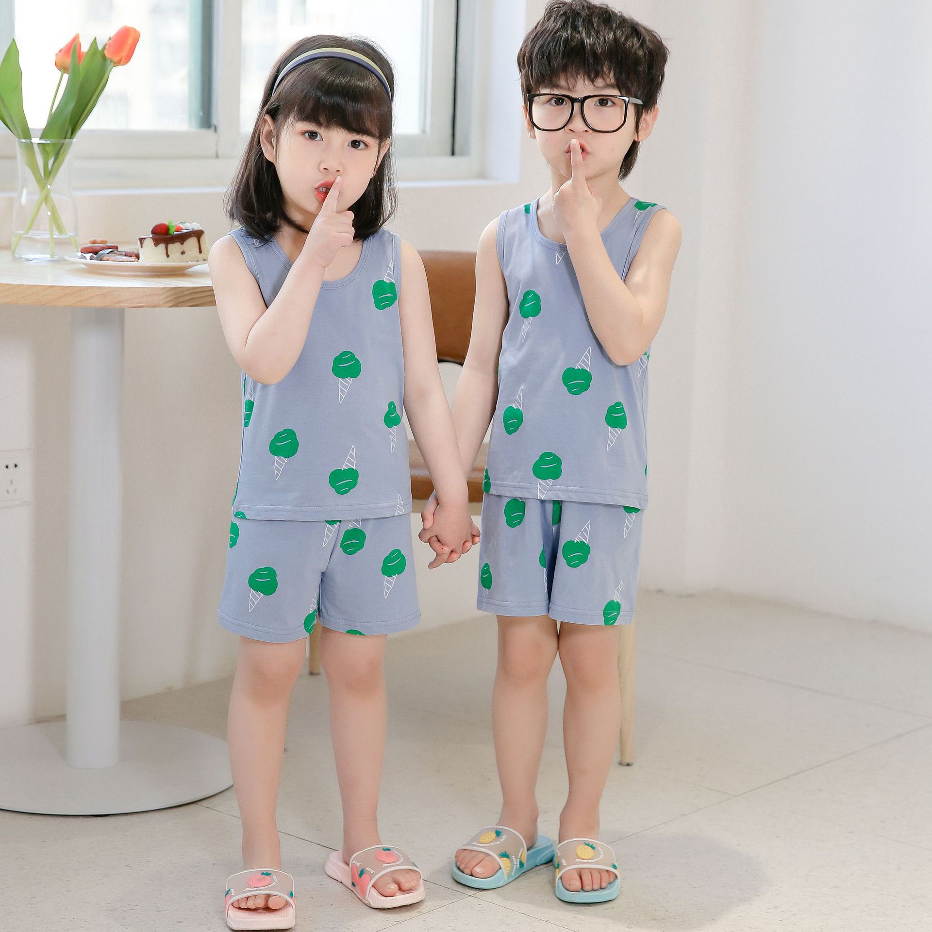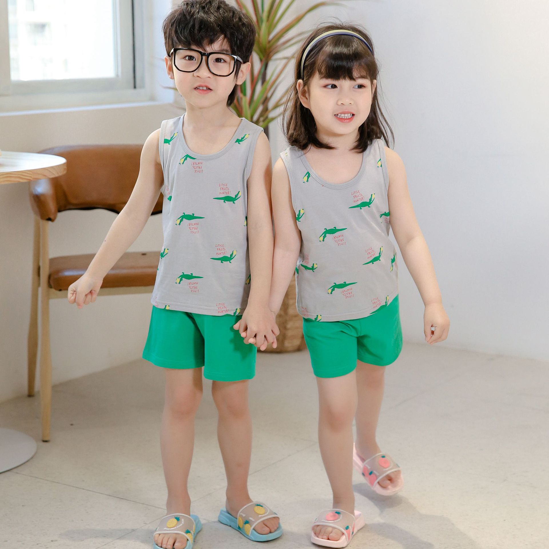 个性薄款棉背心套装男童女童运动两件套夏天宝宝睡衣一件代发