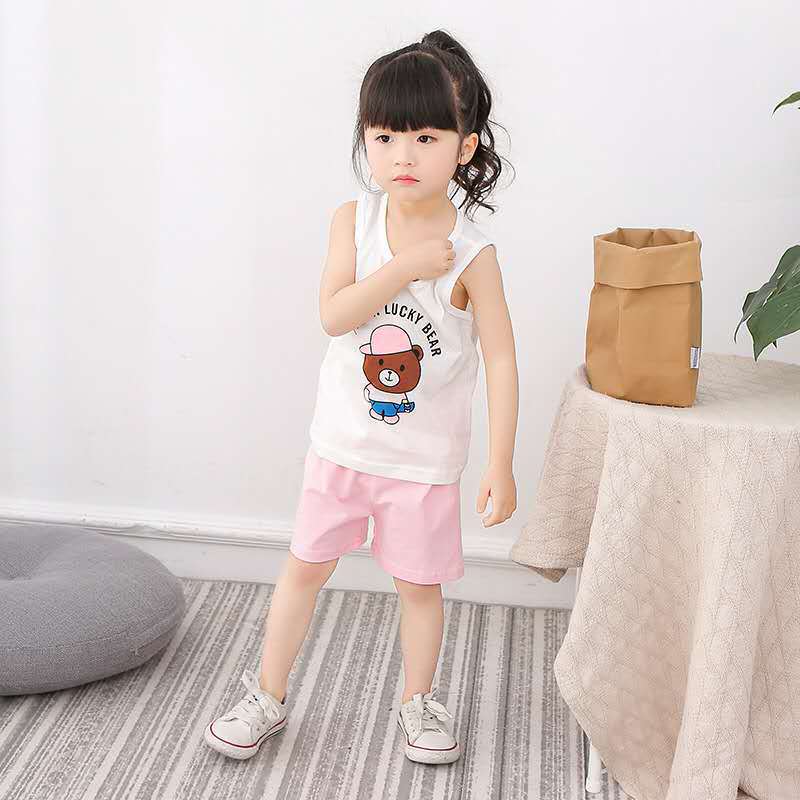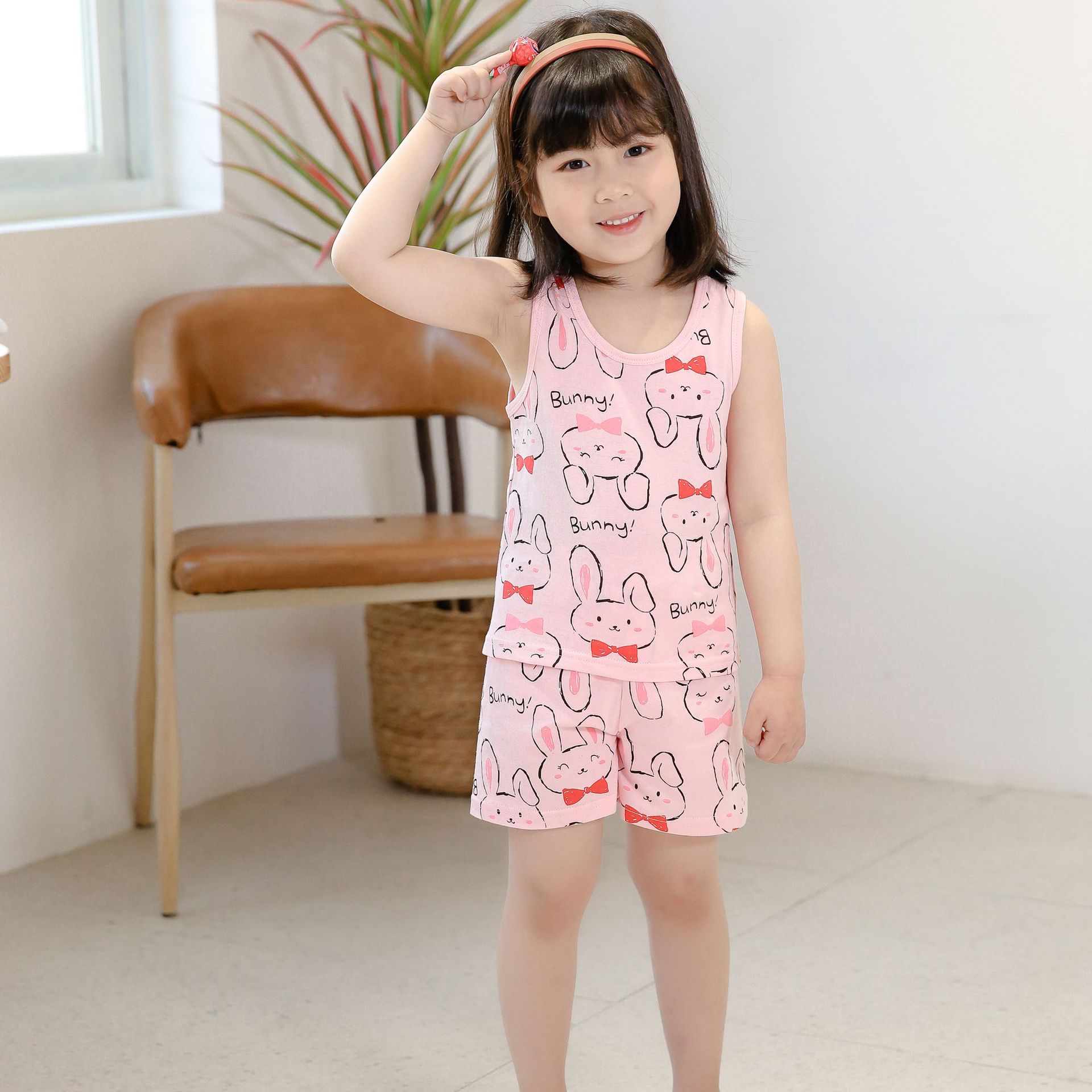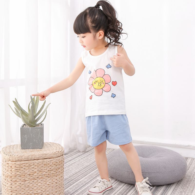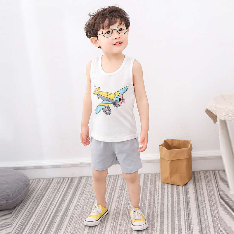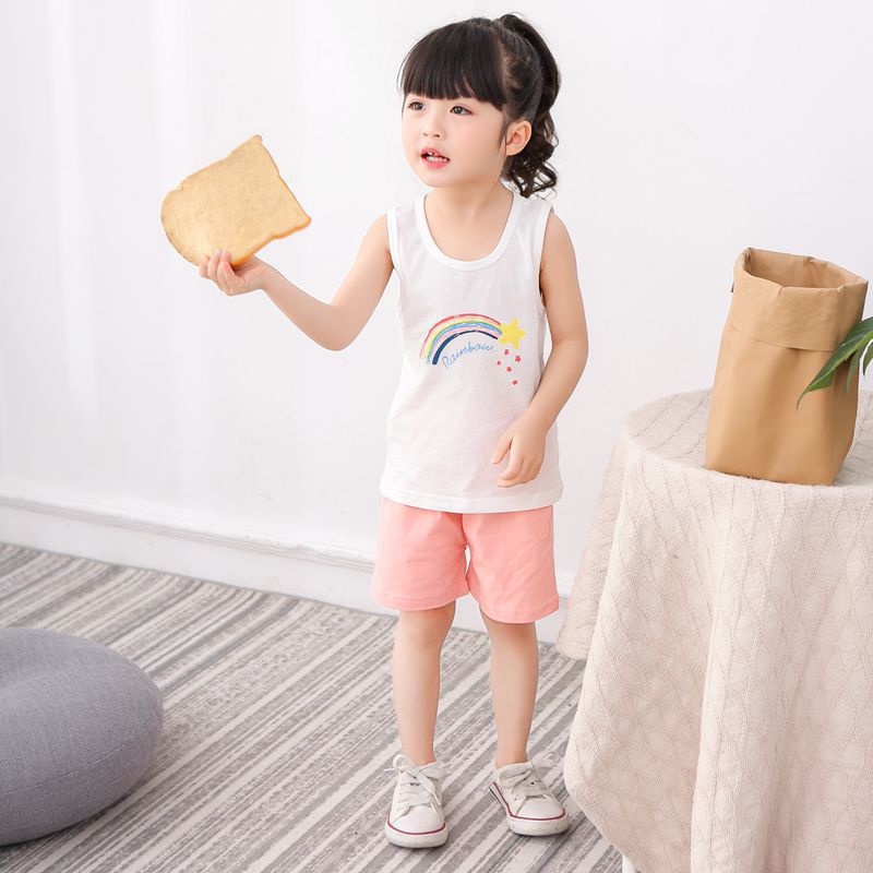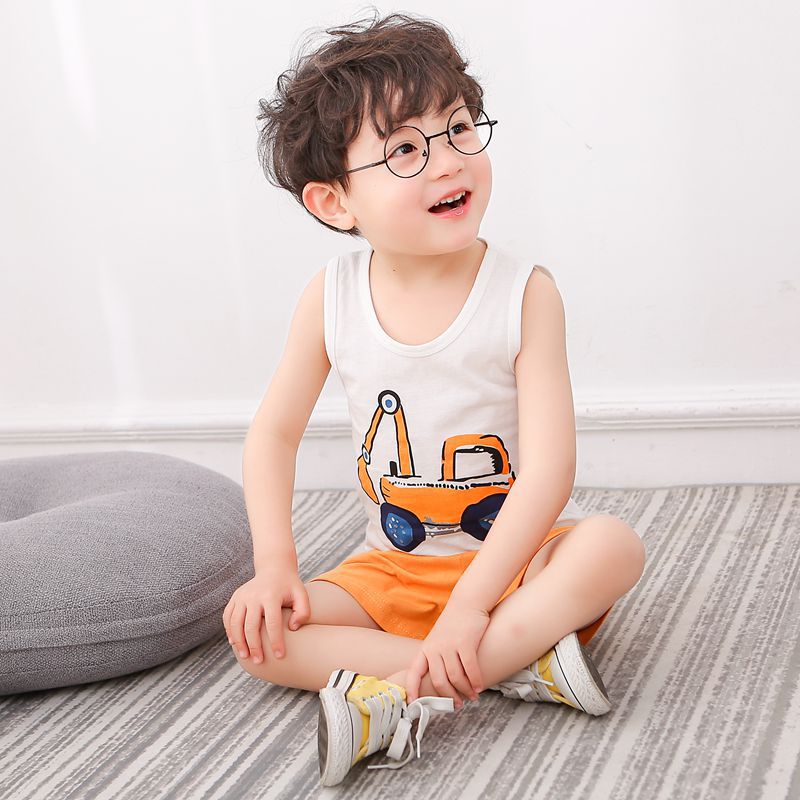 个性薄款棉背心套装男童女童运动两件套夏天宝宝睡衣一件代发